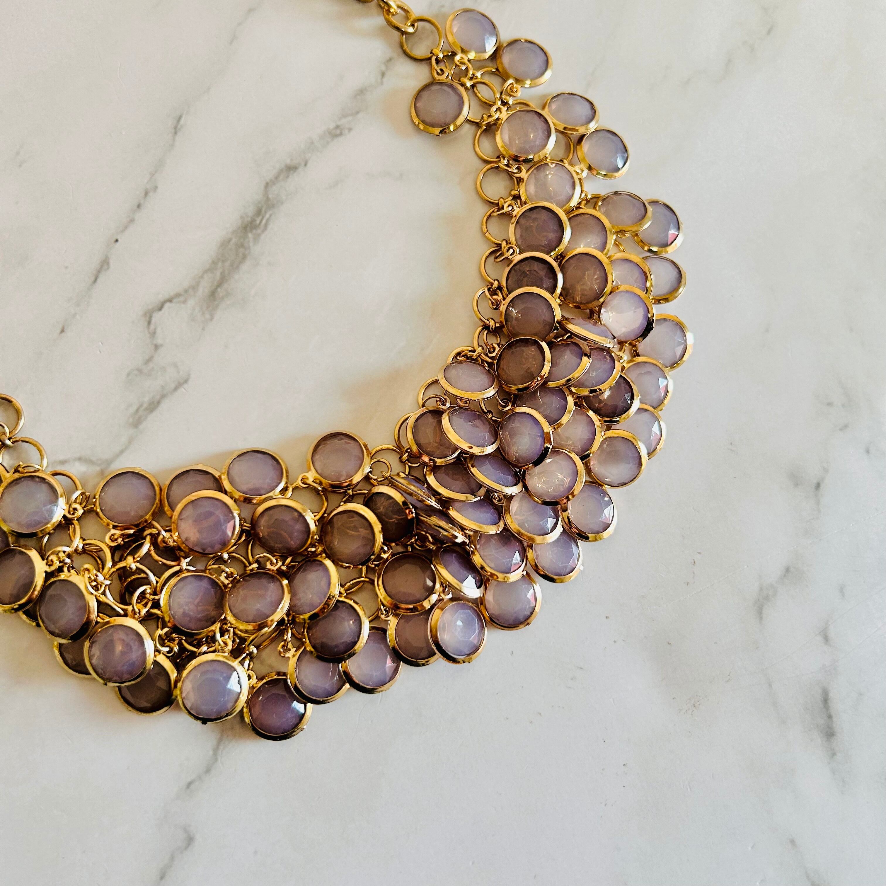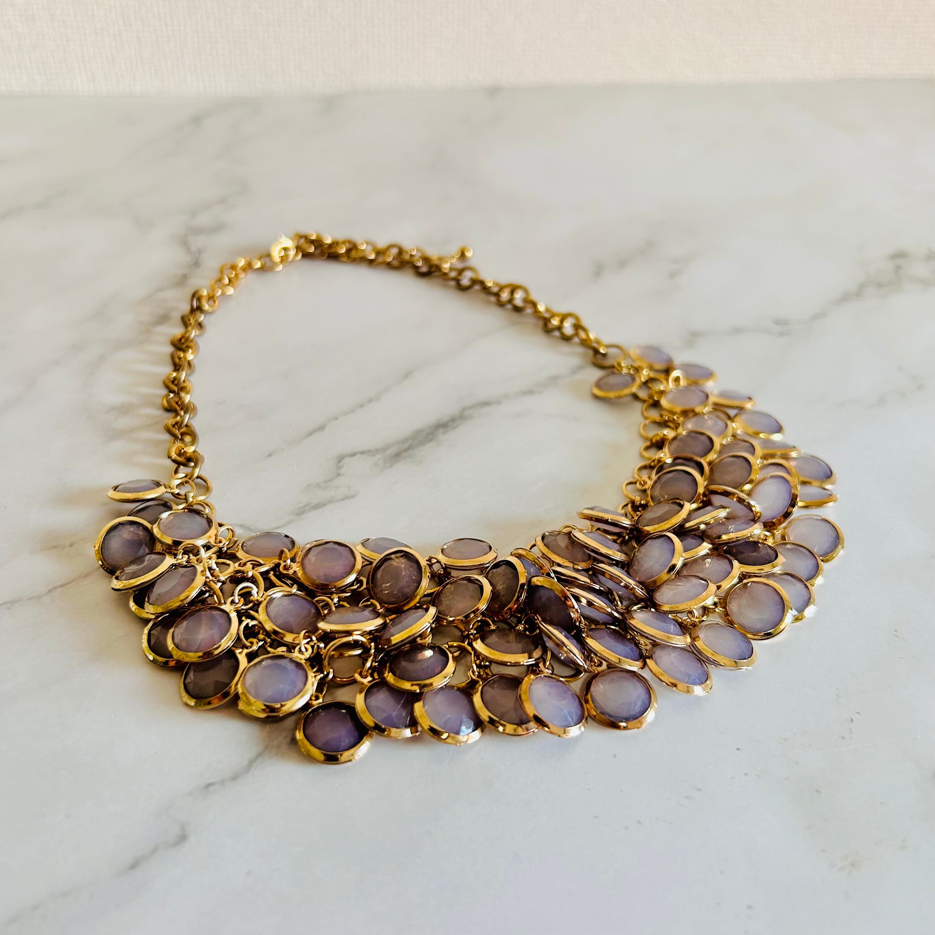 光沢感のあるモーブ系のラウンドパーツを、アンティークゴールドのフレームで縁取ったデザイン。
