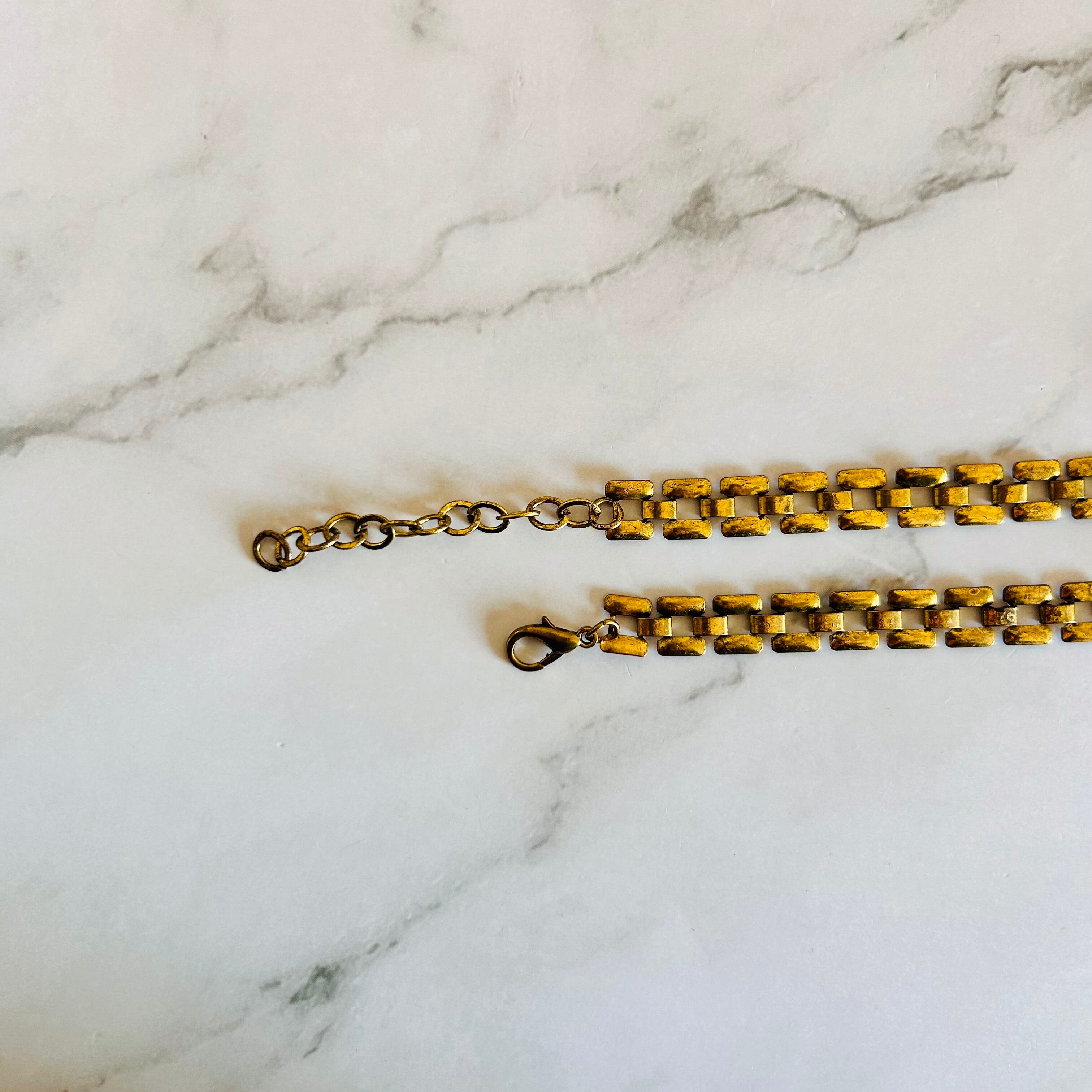 ヴィンテージ感漂うゴールドとシックなブラックが絶妙なバランスで調和し、どこか異国的なムードと力強い個性を感じさせてくれます。