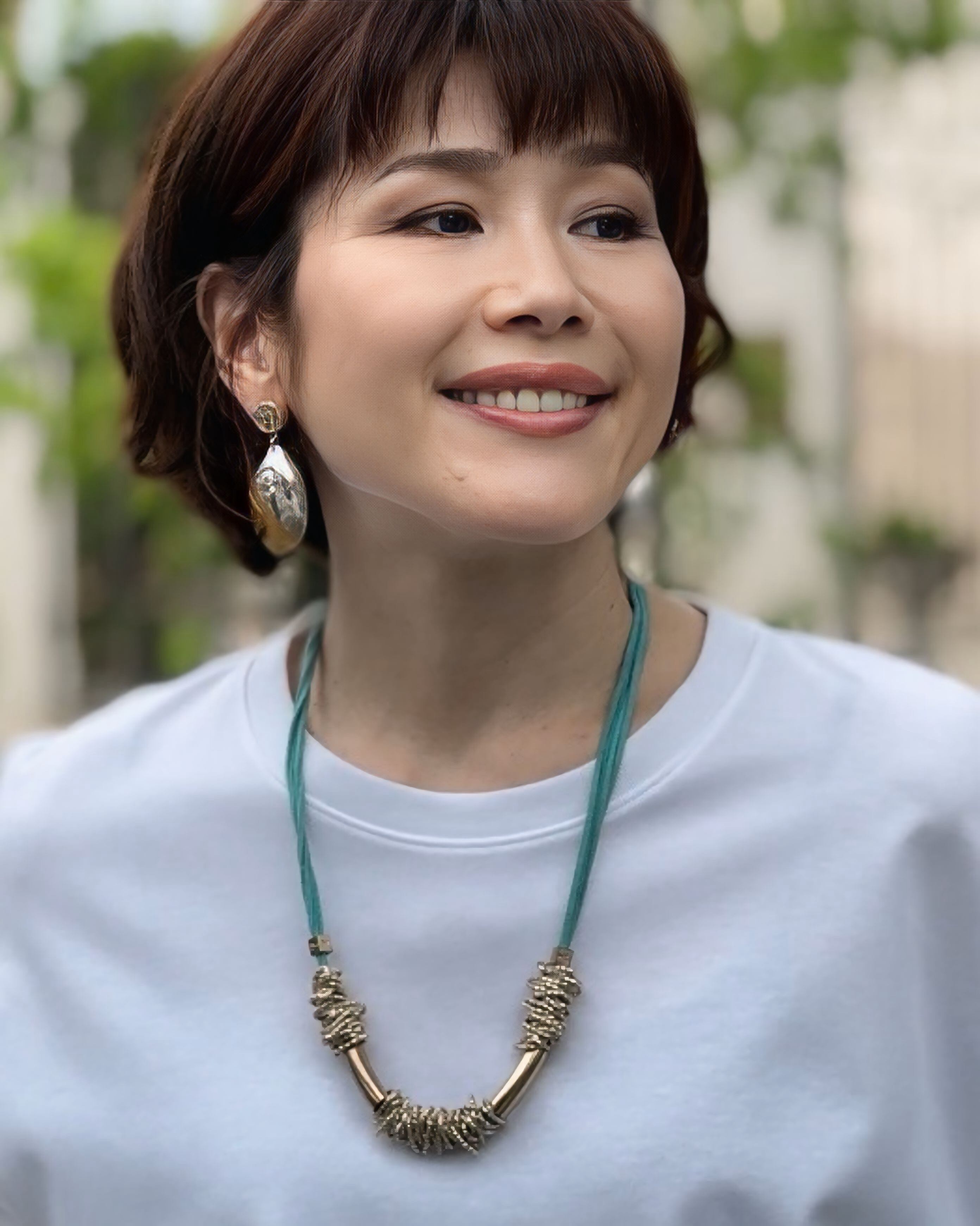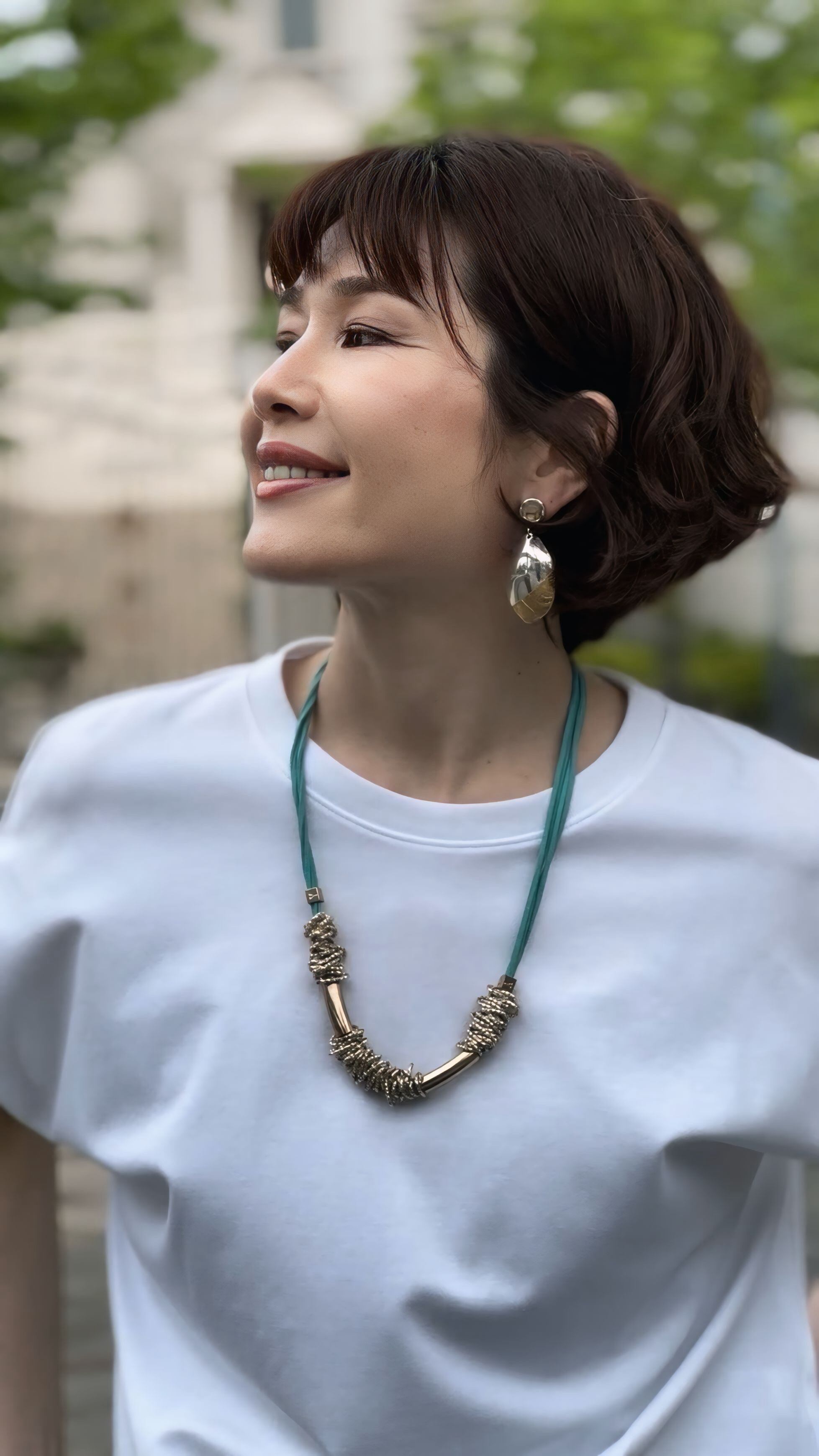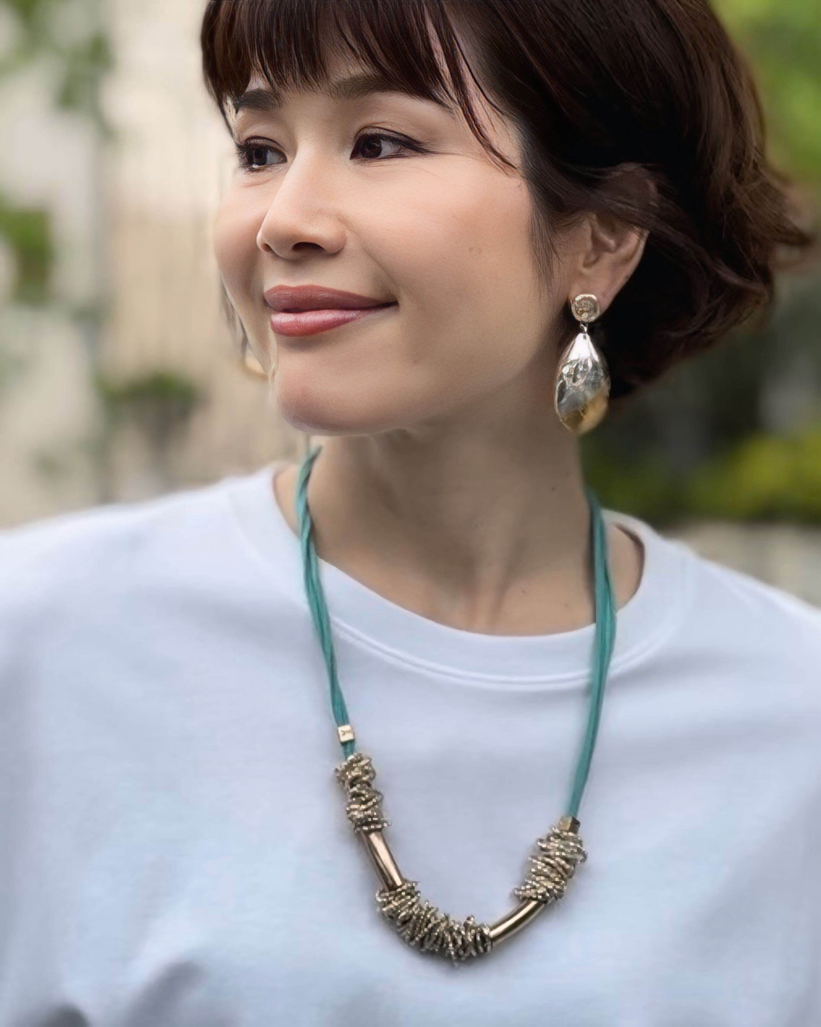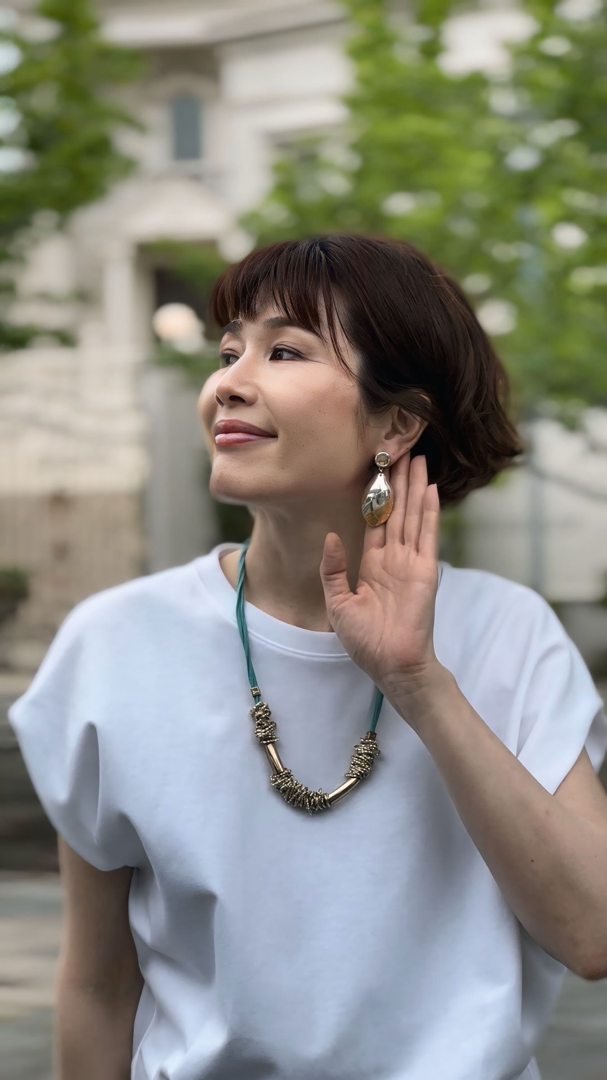 動きに合わせて揺れるメタルリングが、表情に軽やかなニュアンスを添えてくれます。