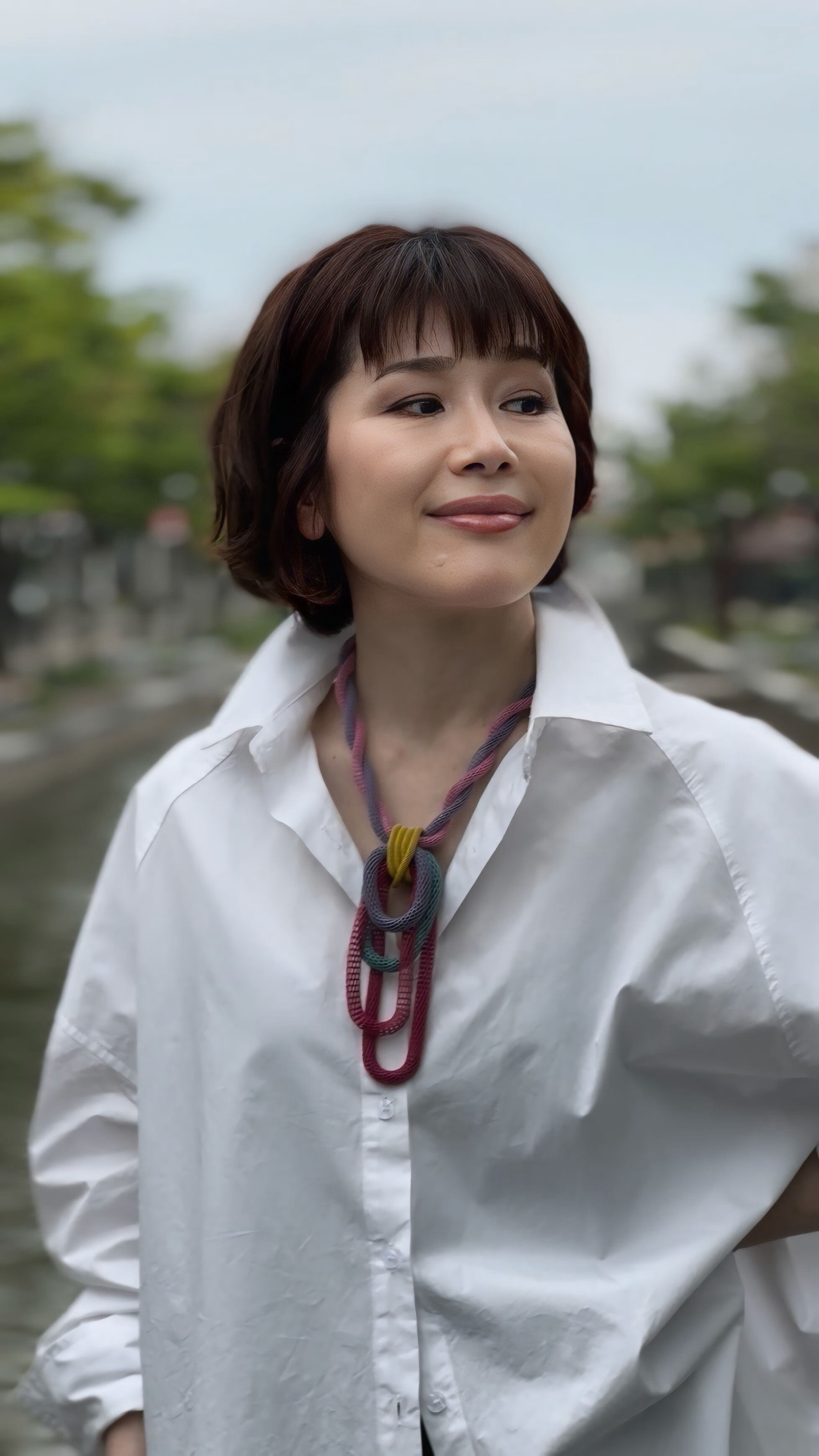 まるでアートピースのような存在感を持ちながらも、軽やかで着け心地のよい仕上がりです。