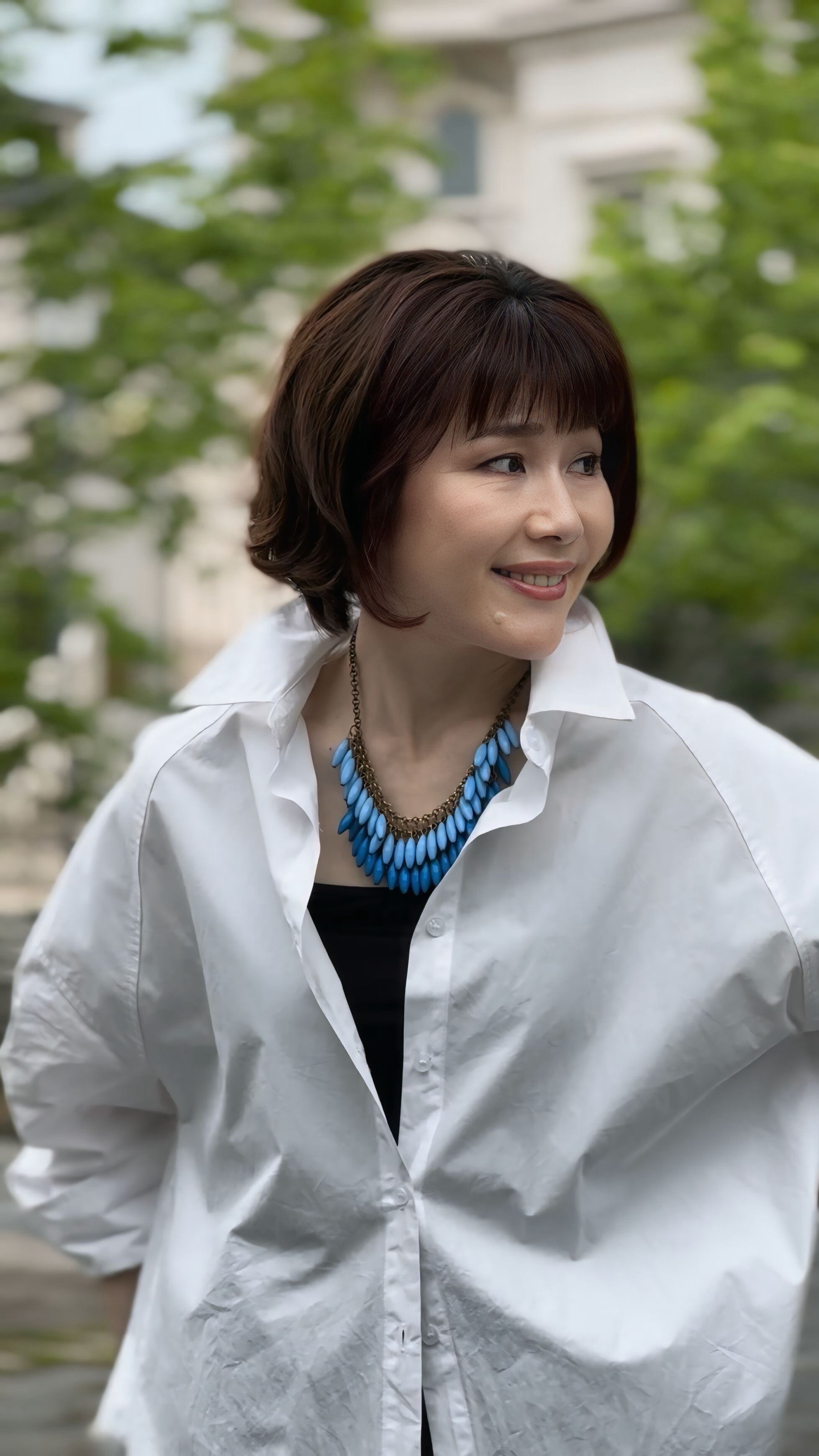 シンプルなシャツやワンピースに合わせるだけで、パッと明るく洗練された印象に!