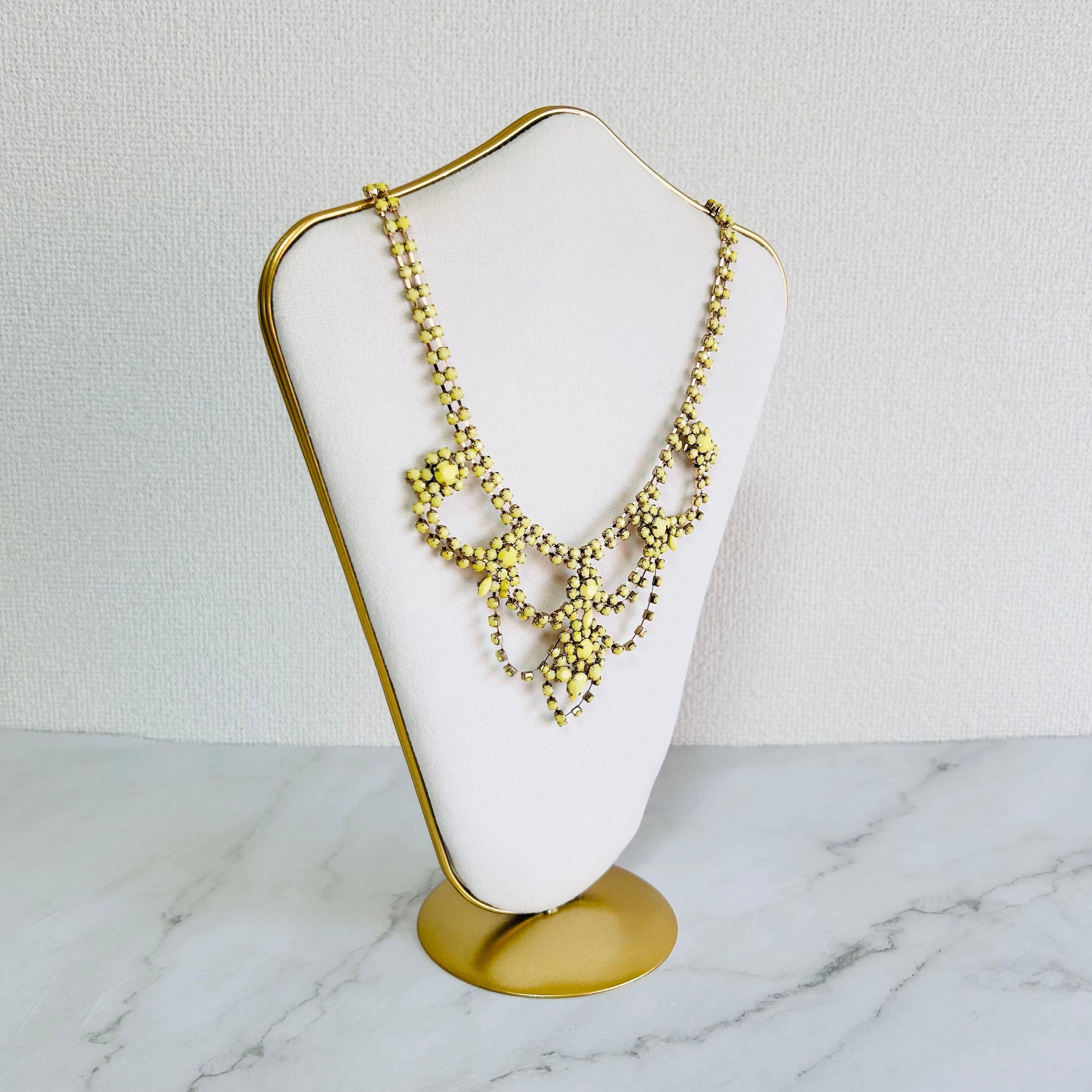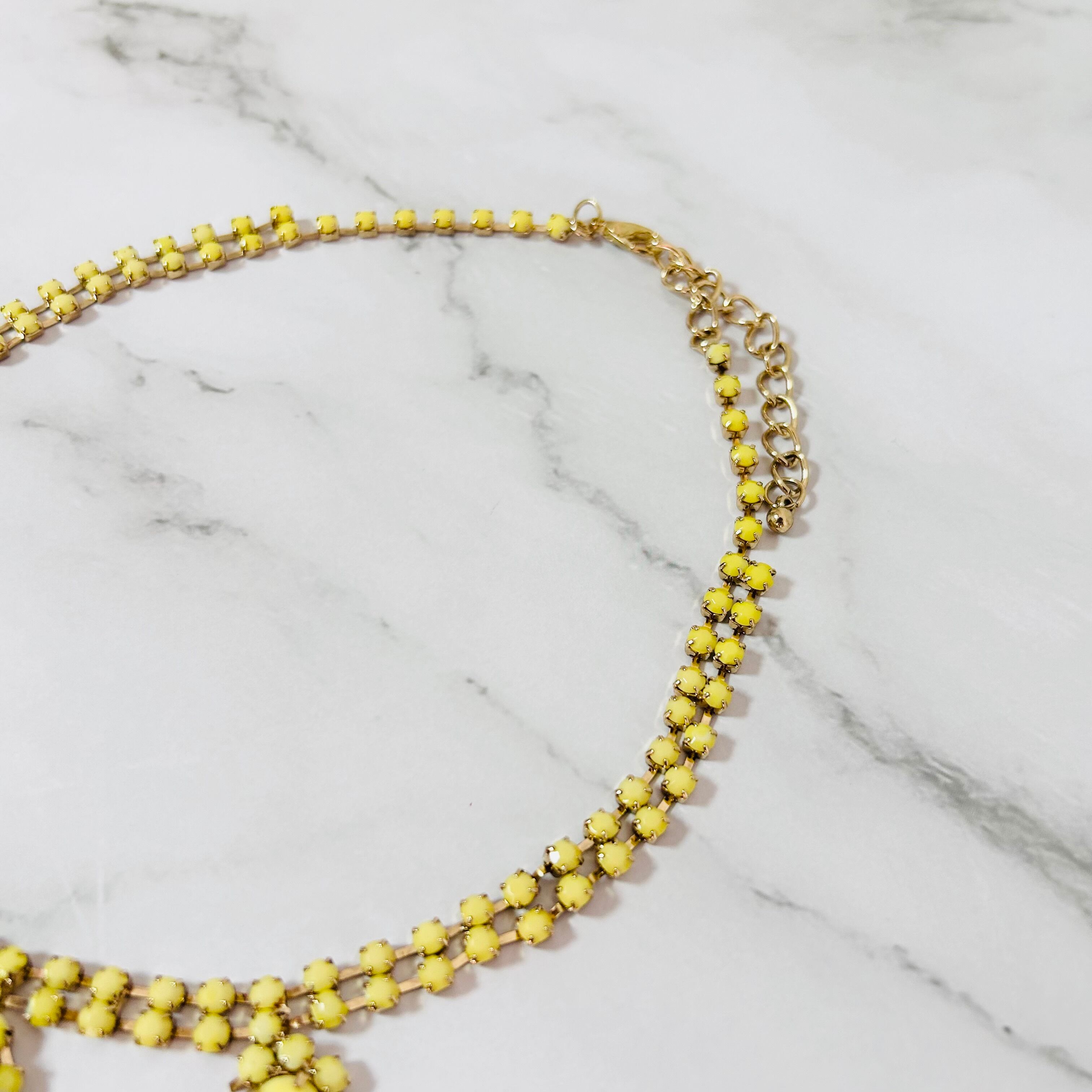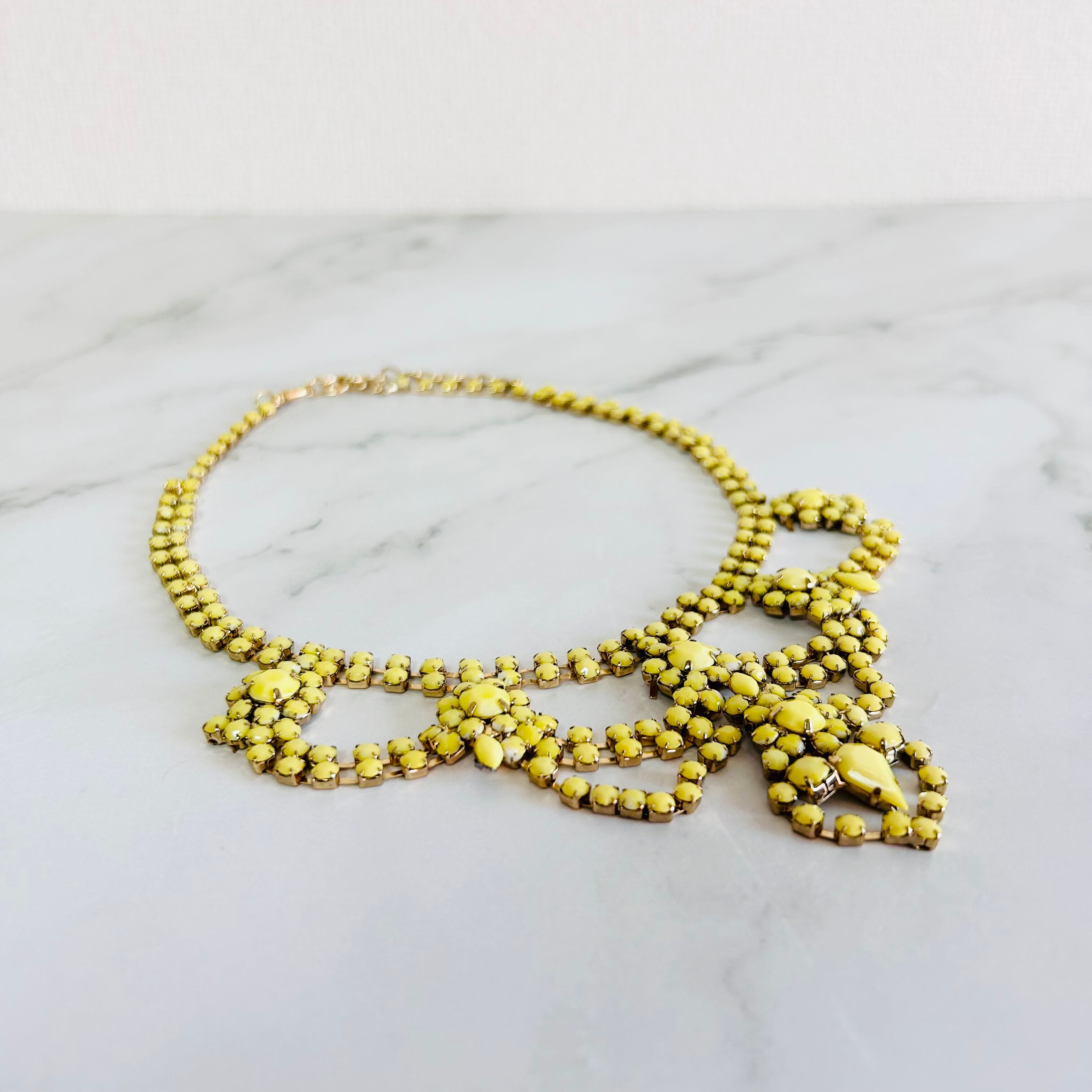 ややまろやかなイエローカラーのビジューが連なる、華やかなデザインネックレスです。