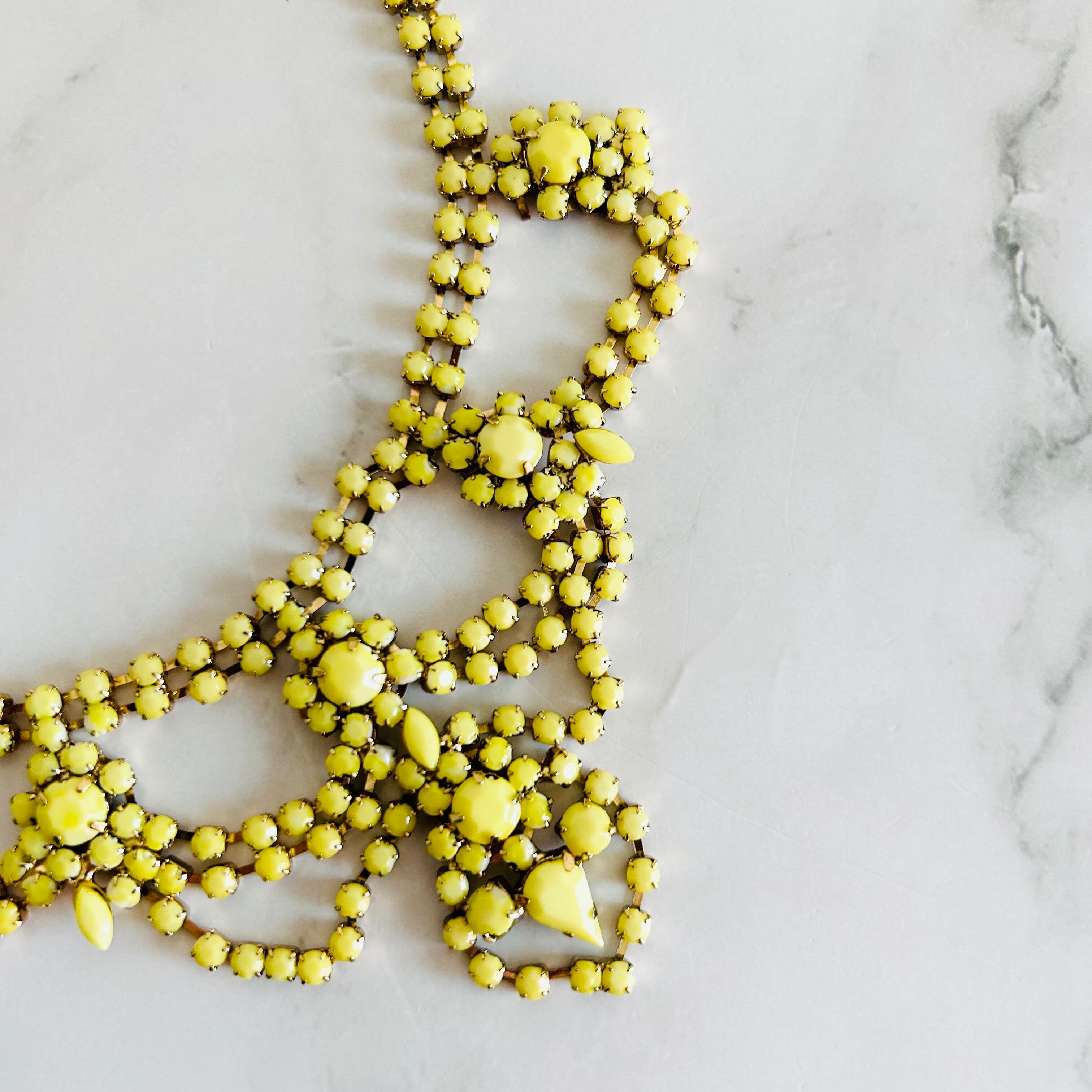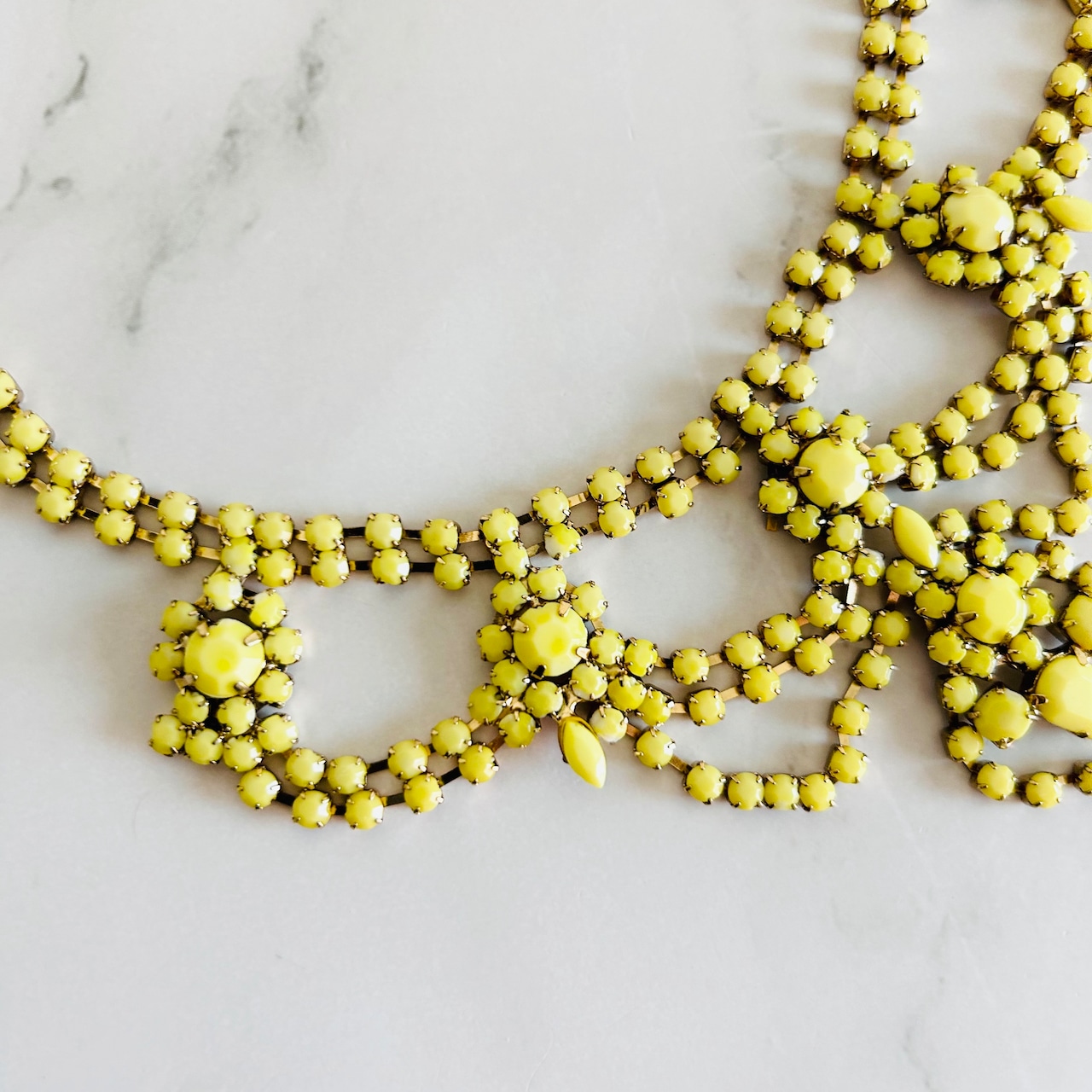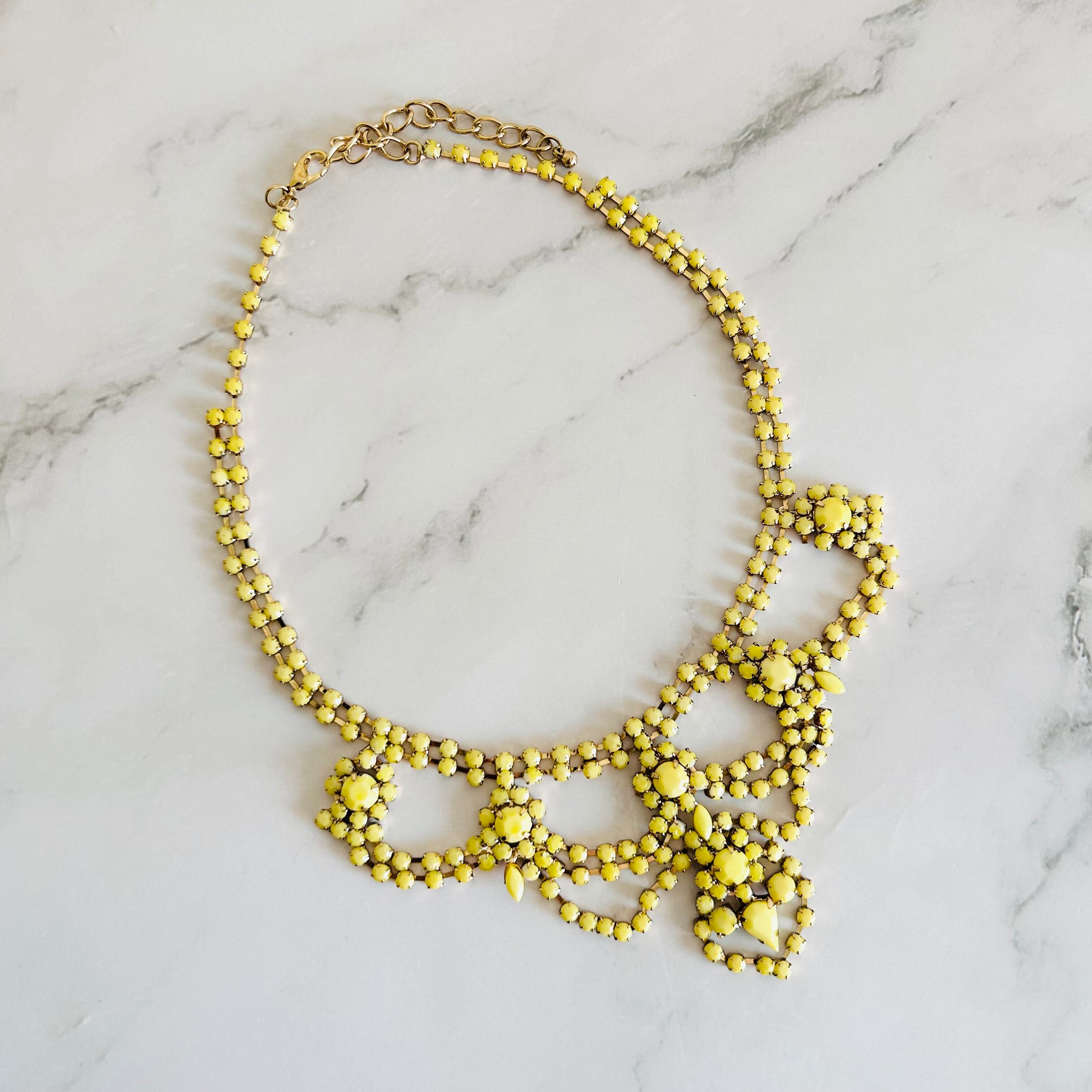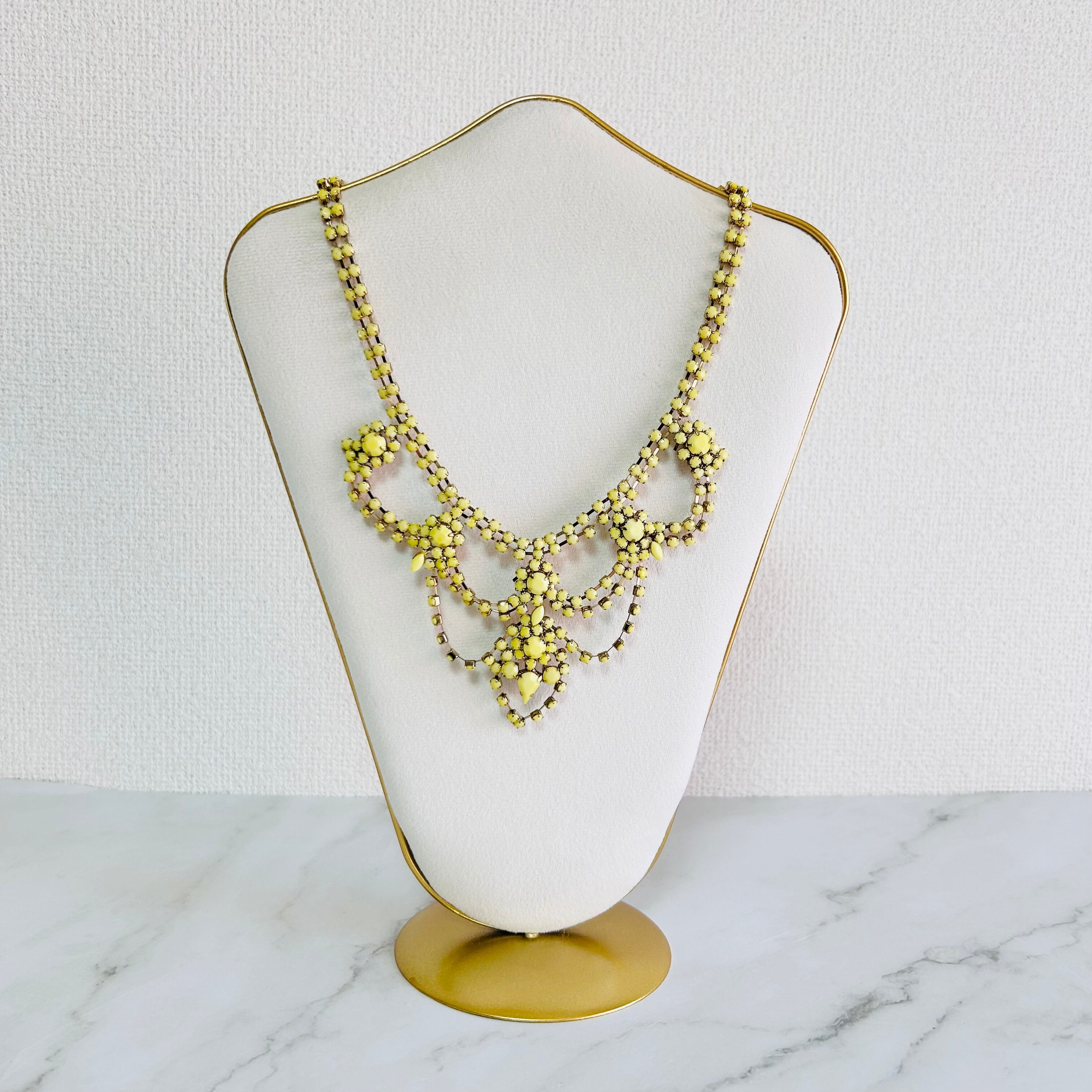 ややまろやかなイエローカラーのビジューが連なる、華やかなデザインネックレスです。