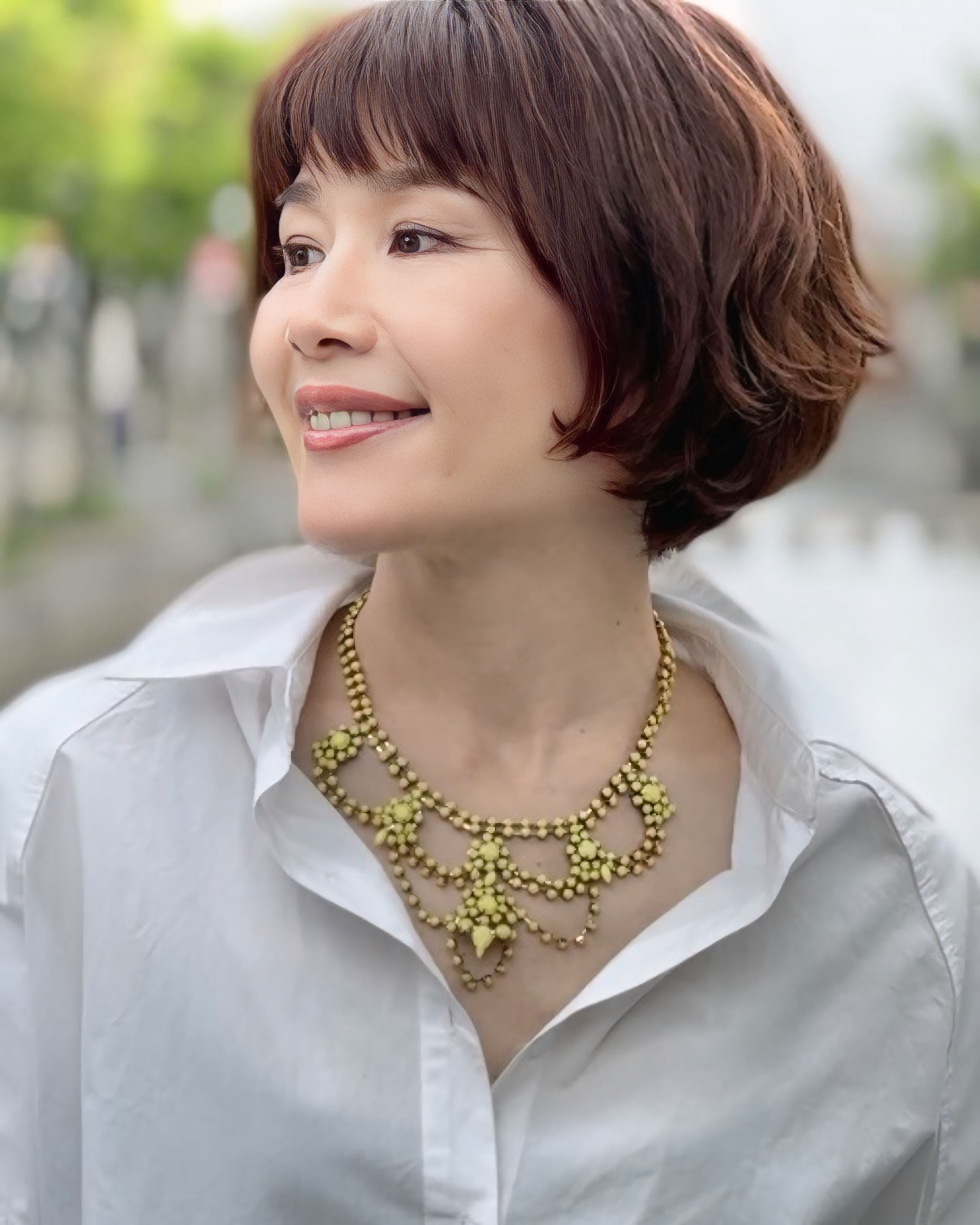 シンプルな襟元のシャツやワンピースに合わせて、主役級のアクセントに!