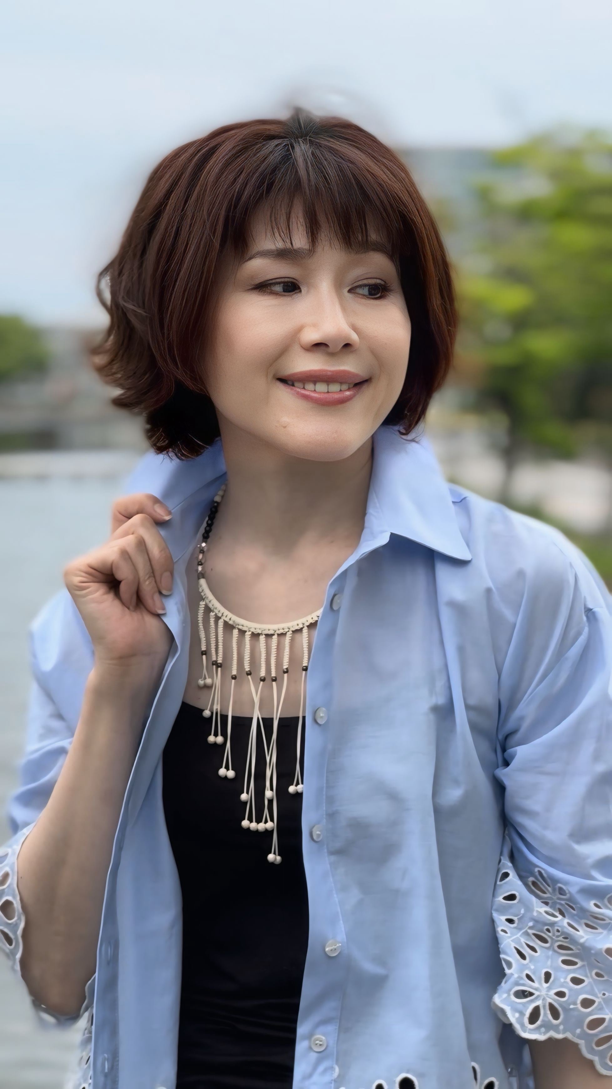 首元をやさしく飾るホワイトトーンが、お顔まわりをパッと明るく見せてくれます。