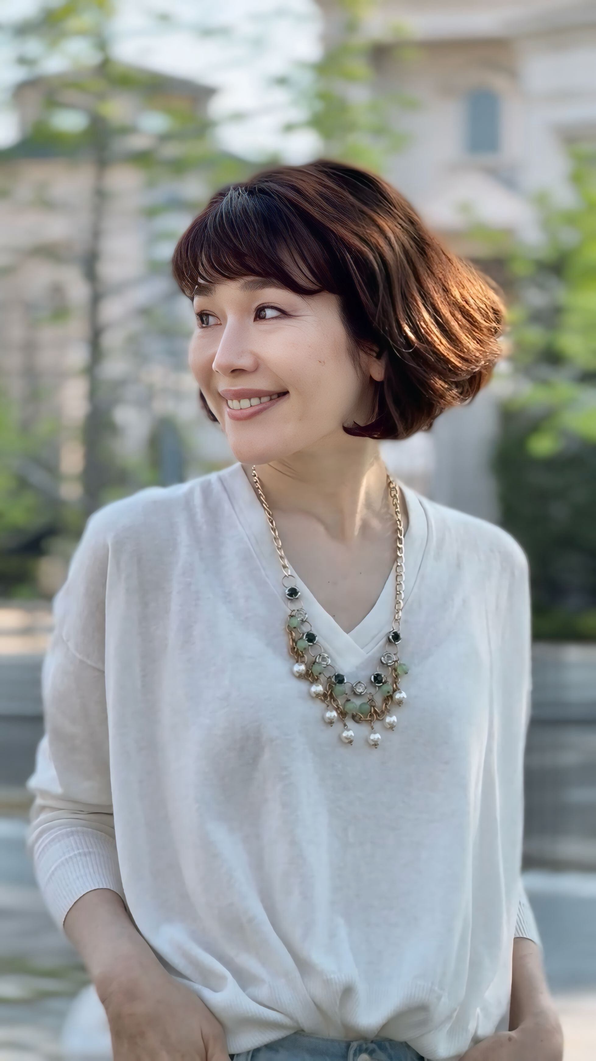シンプルなシャツやニットに合わせるだけで、上品なアクセントに!