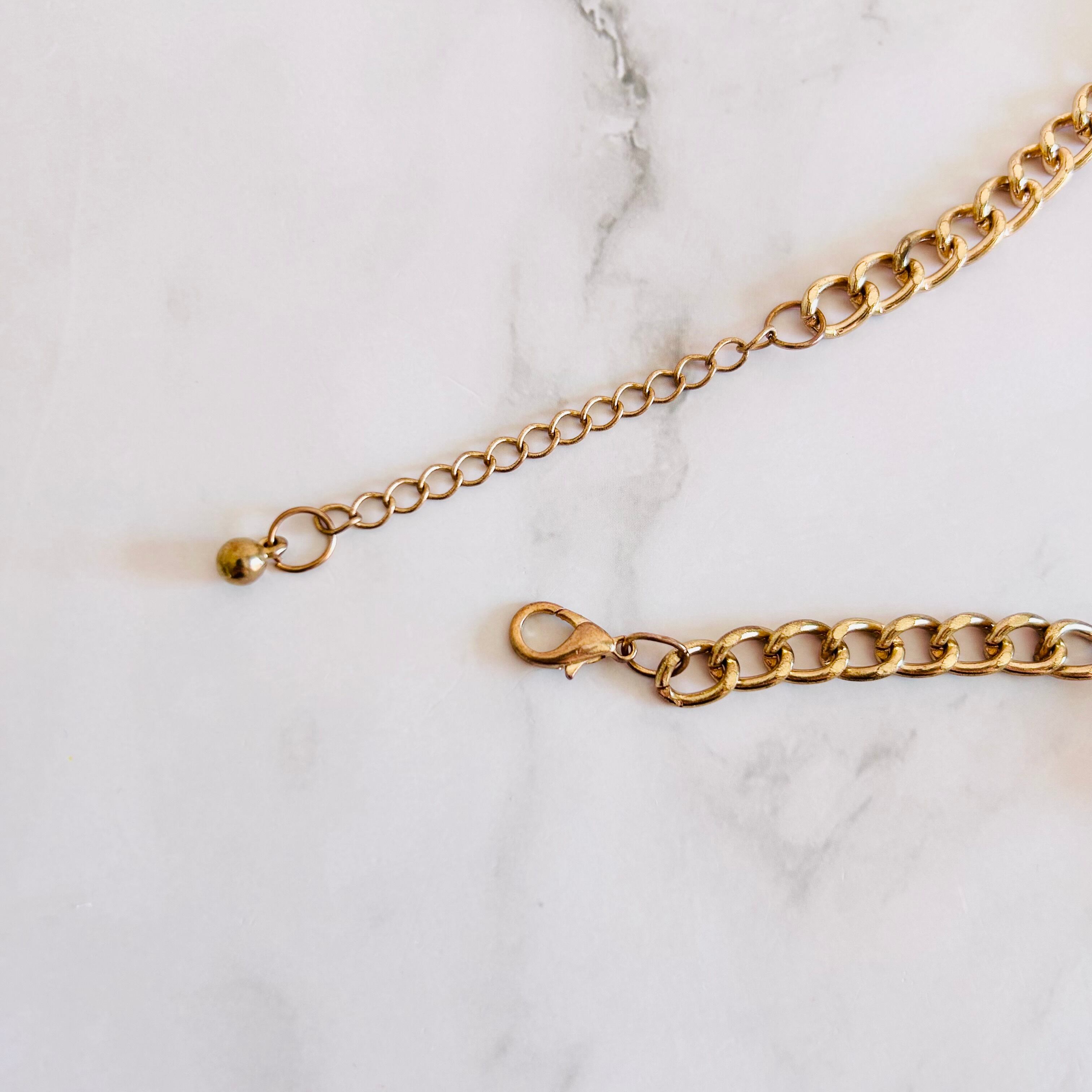 チェーン部分はゴールドカラーで、お肌なじみもよく華やかさを引き立ててくれます。
