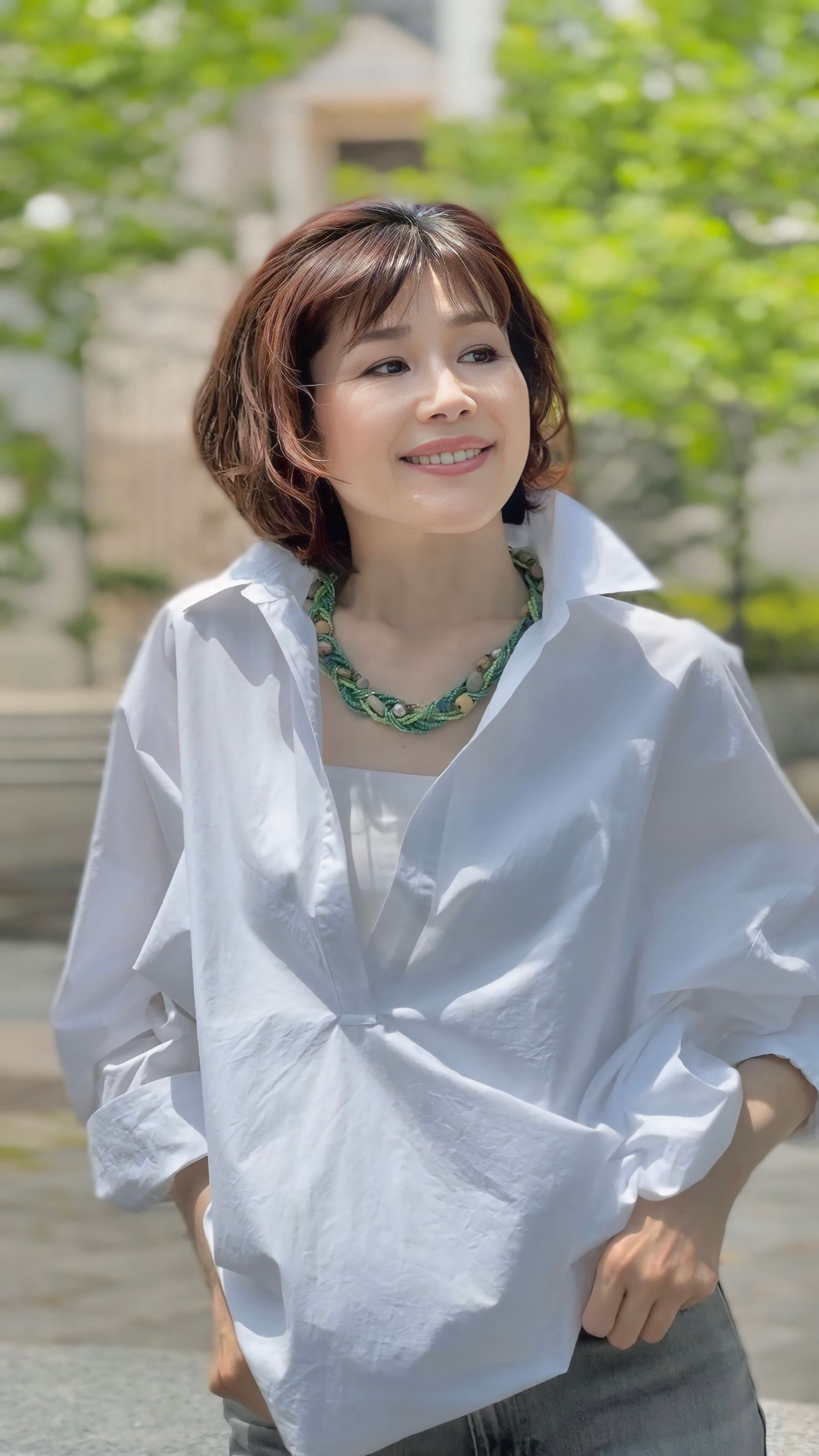 カジュアルなTシャツやワンピースにさらっと合わせるだけで、華やぎと抜け感のあるアクセントに!