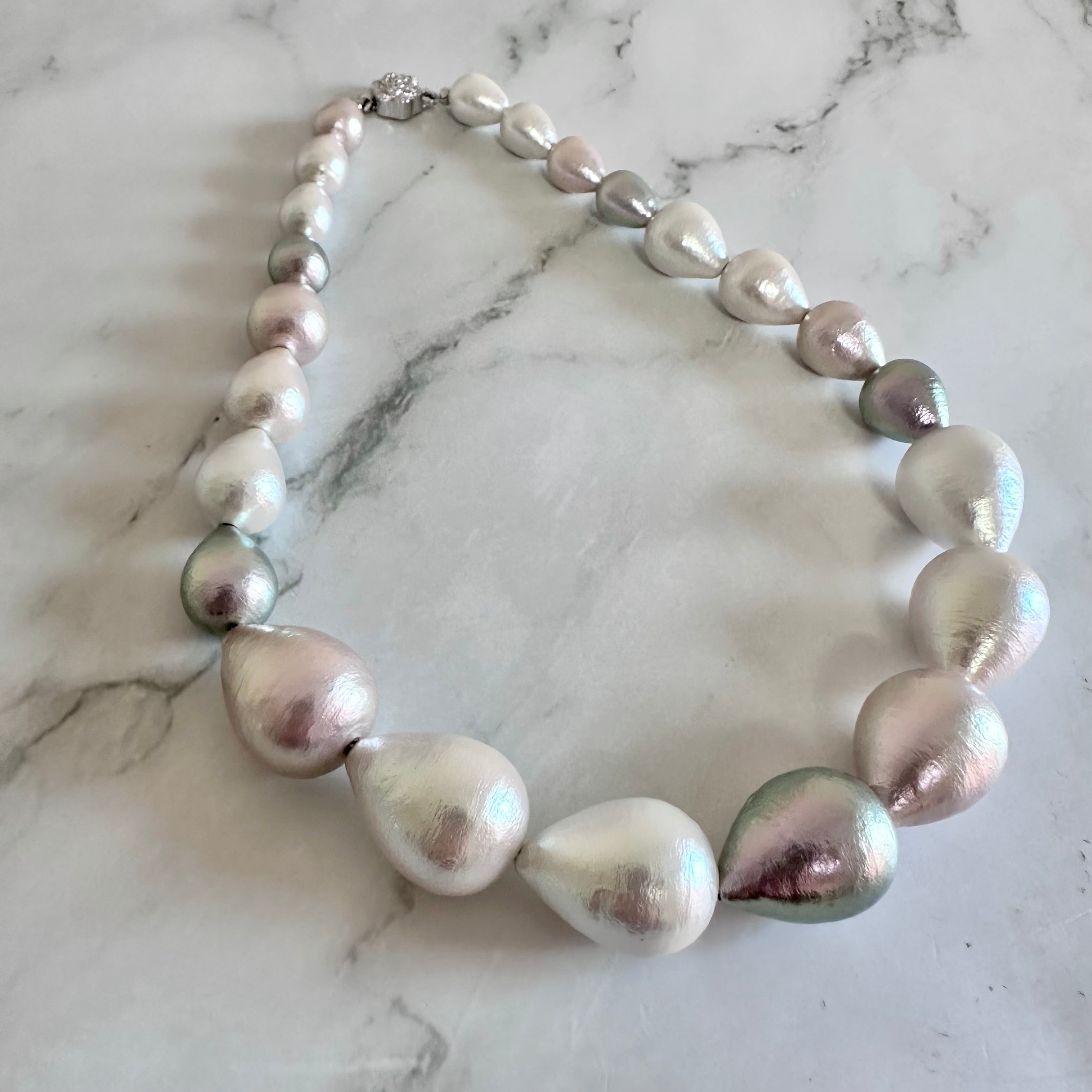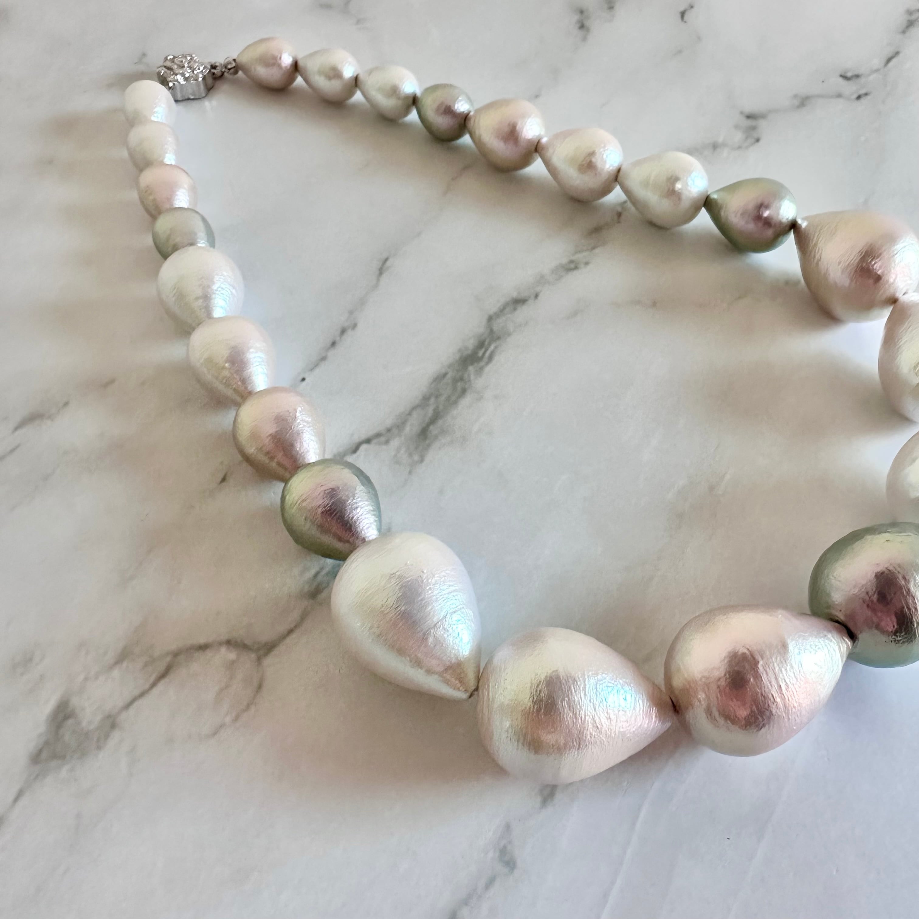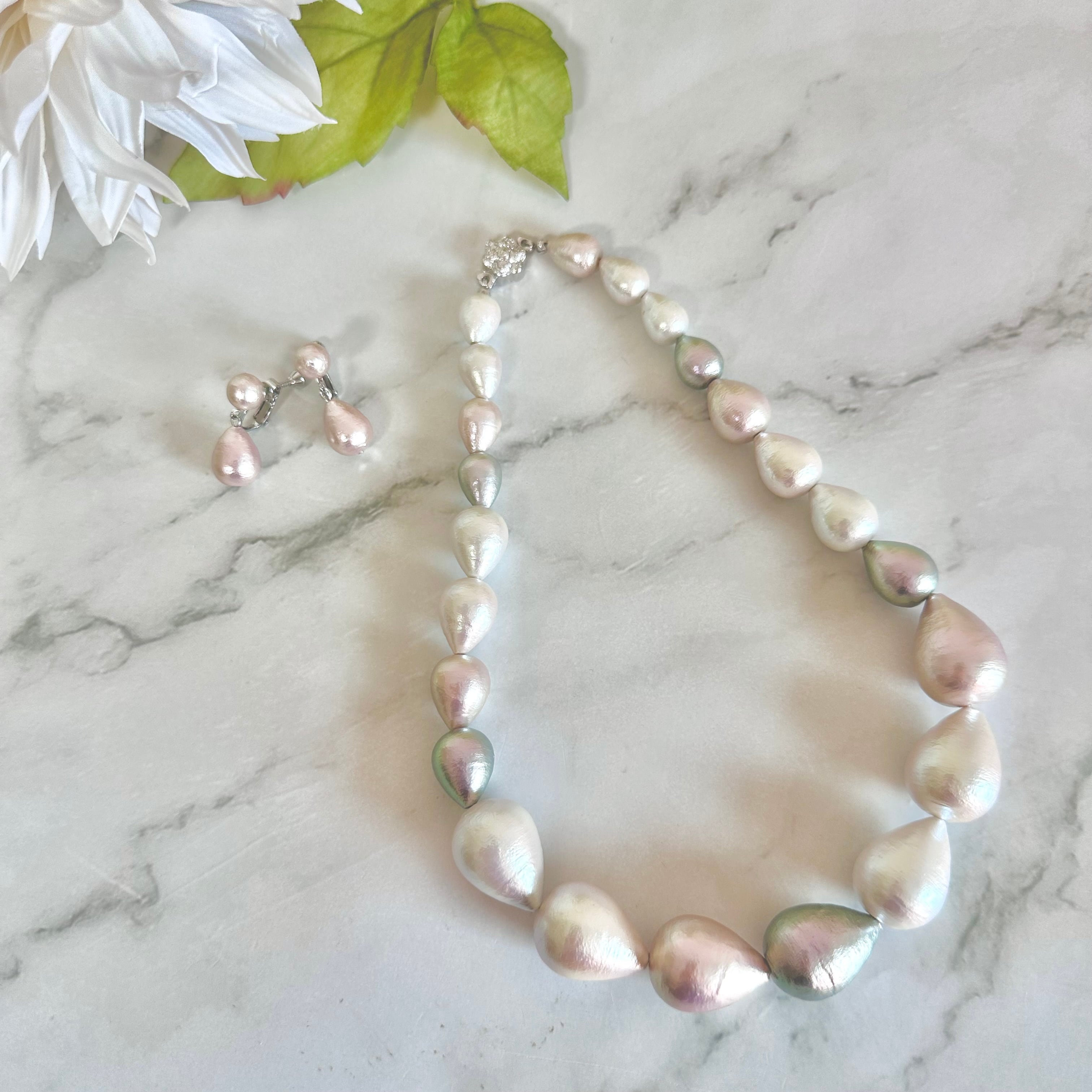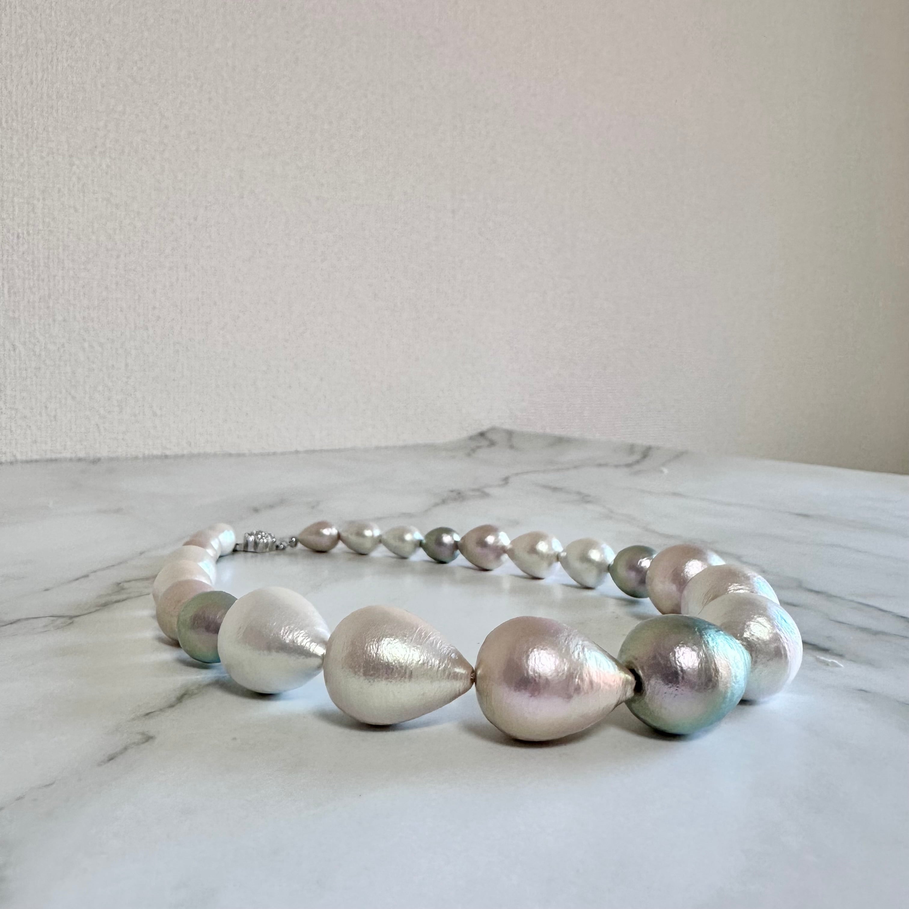 大粒のドロップ型コットンパールを贅沢に連ねたネックレスです。