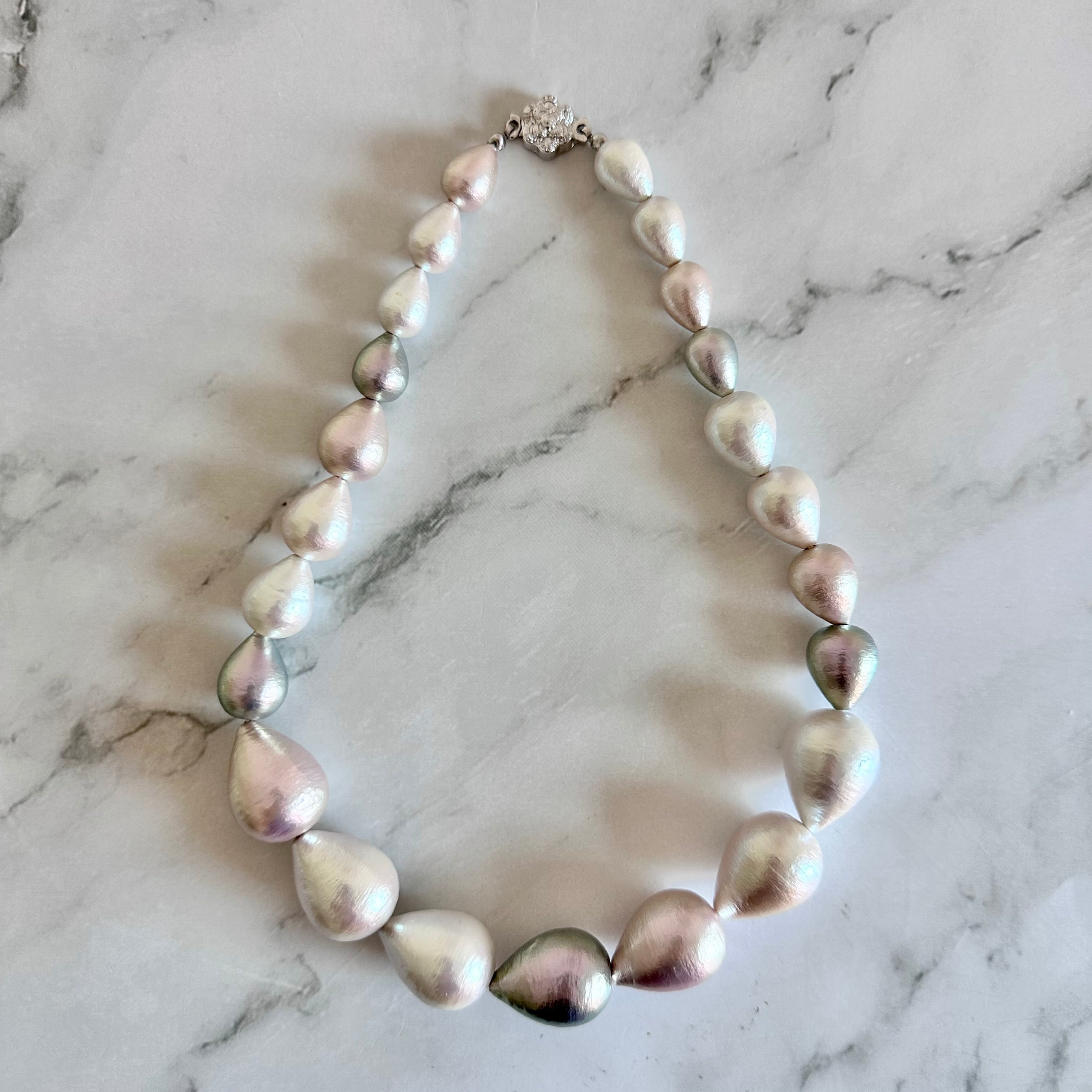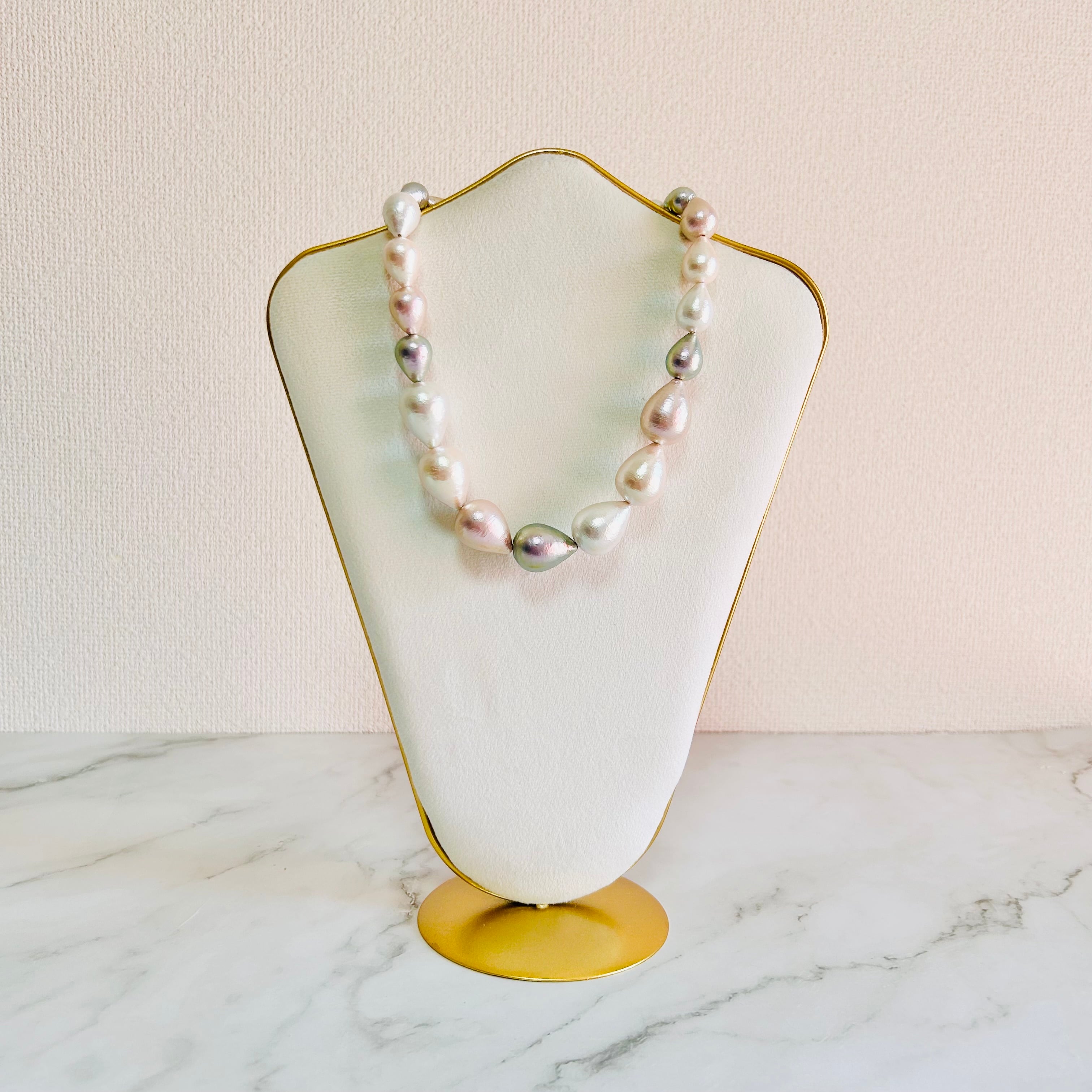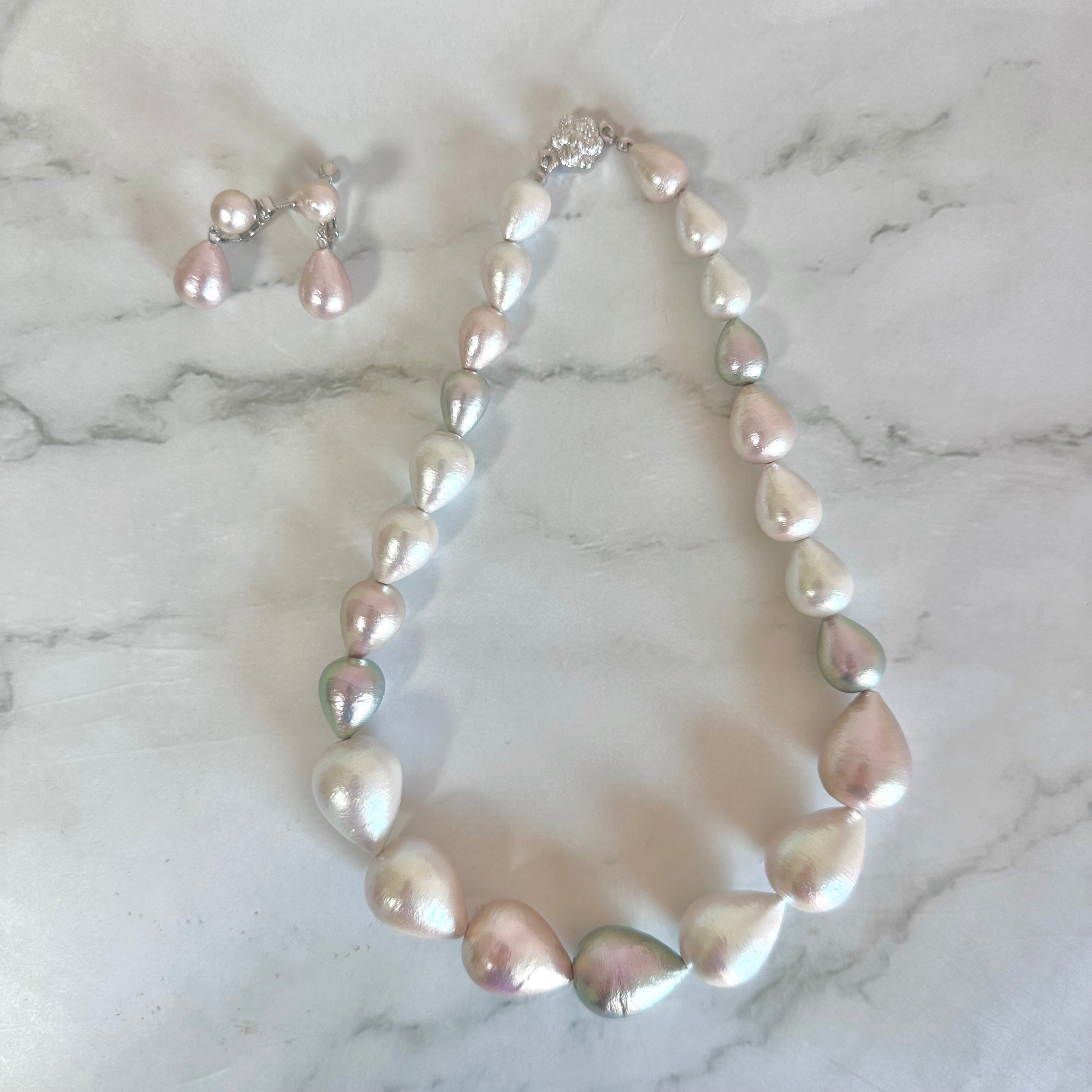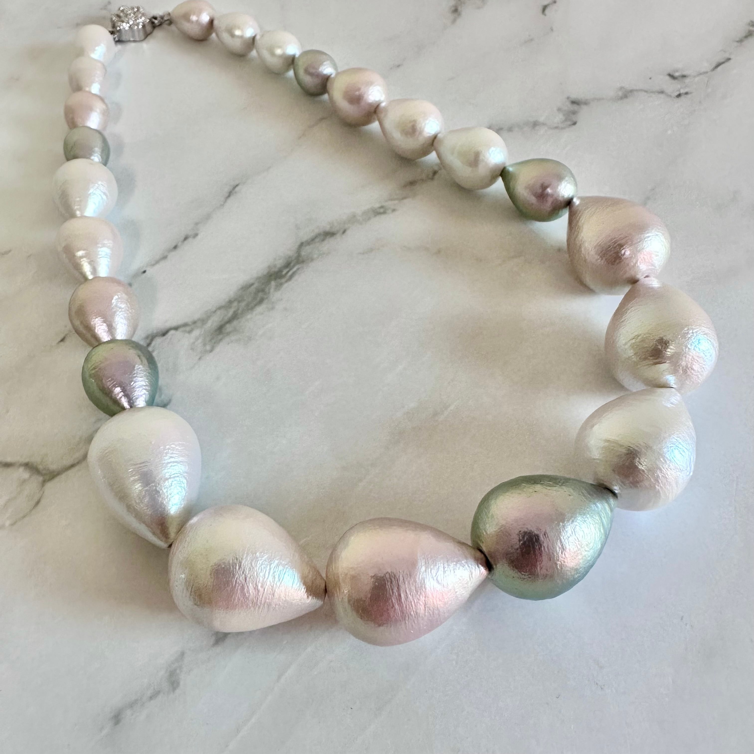 大粒のドロップ型コットンパールを贅沢に連ねたネックレスです。
