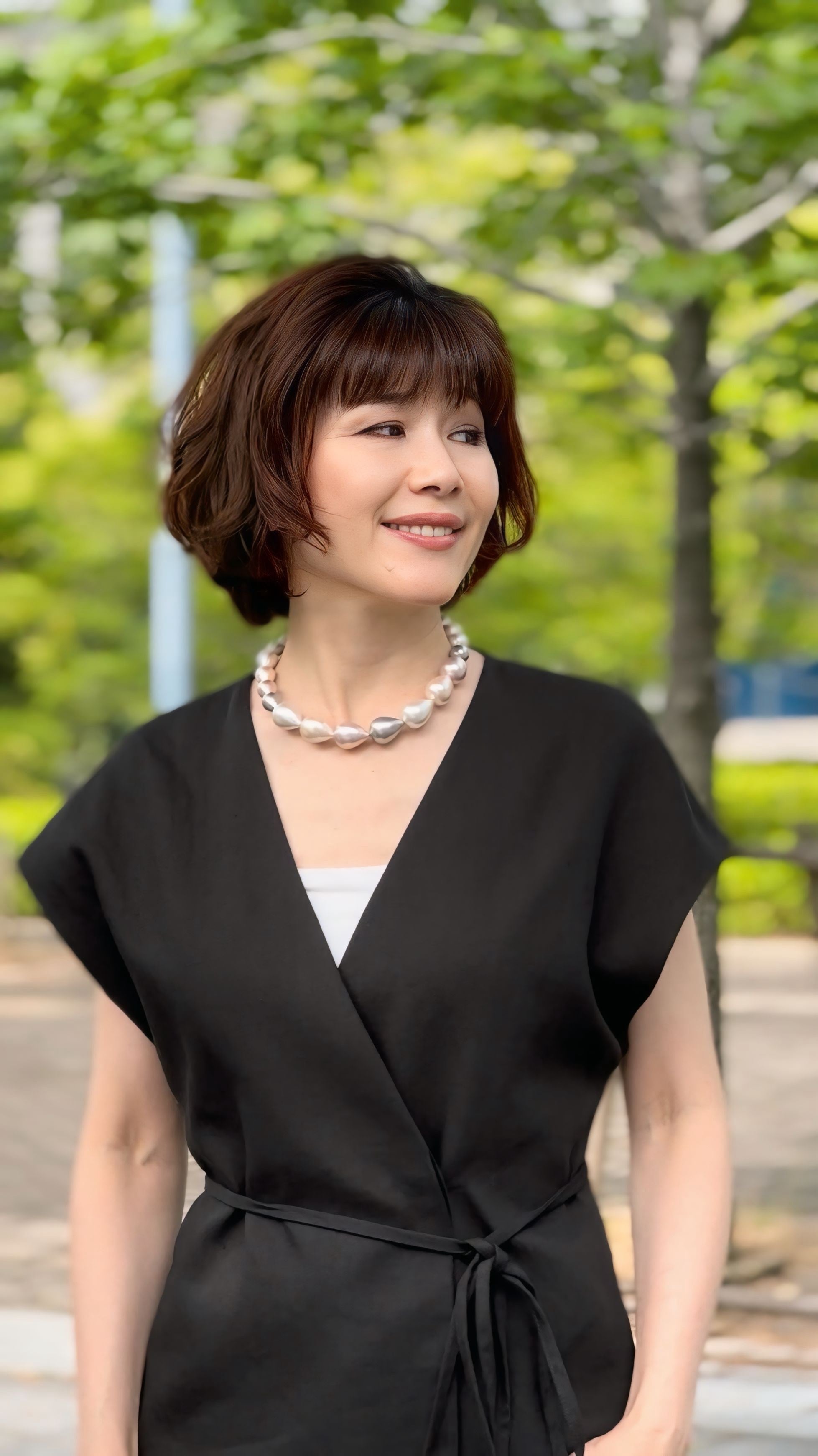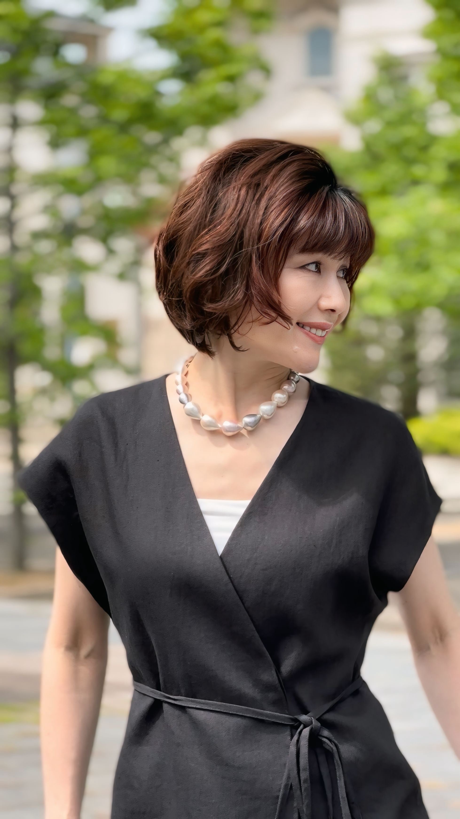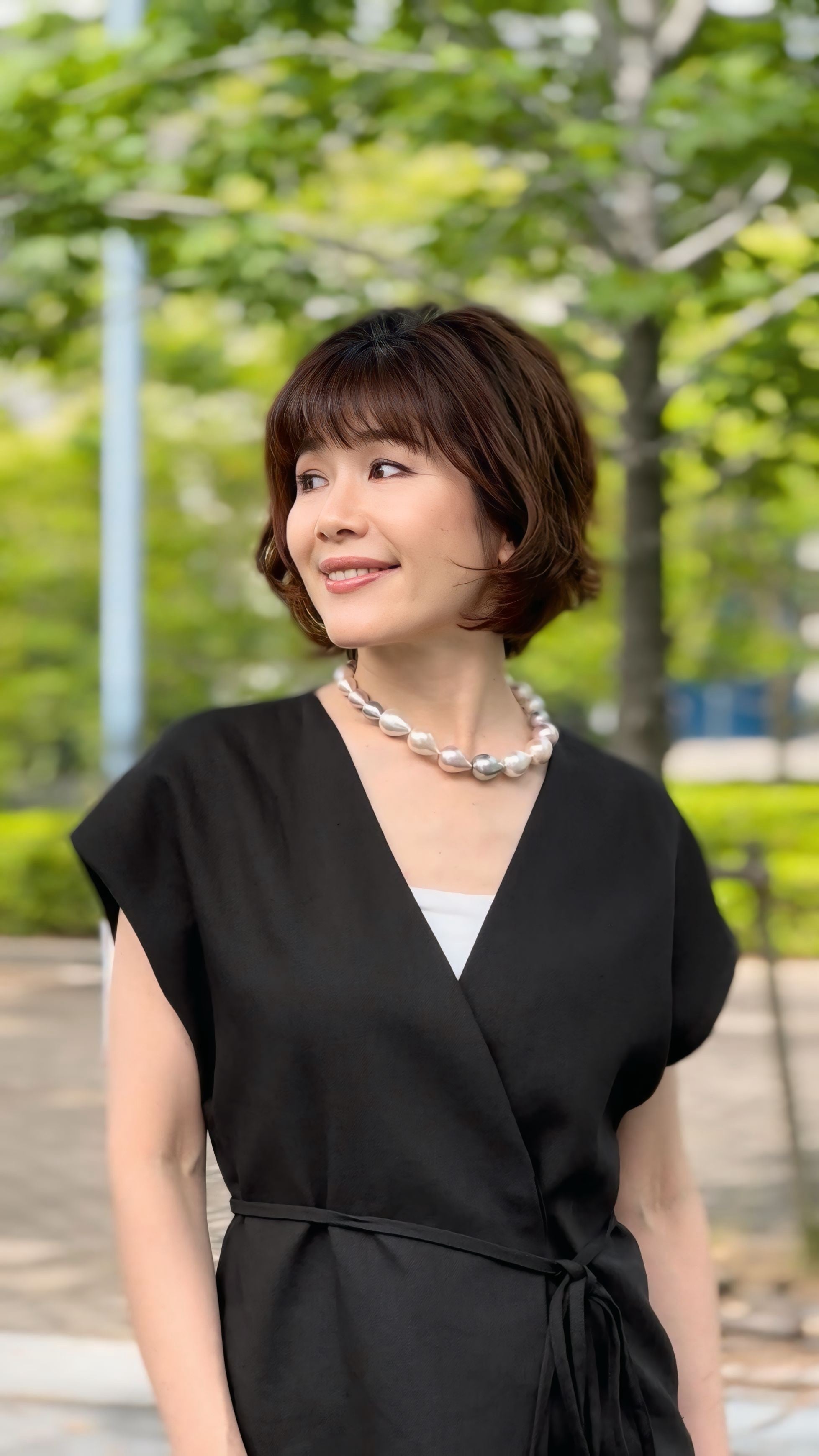 やさしい光沢が胸元にそっと華を添える、大人のためのコットンパールネックレスです。