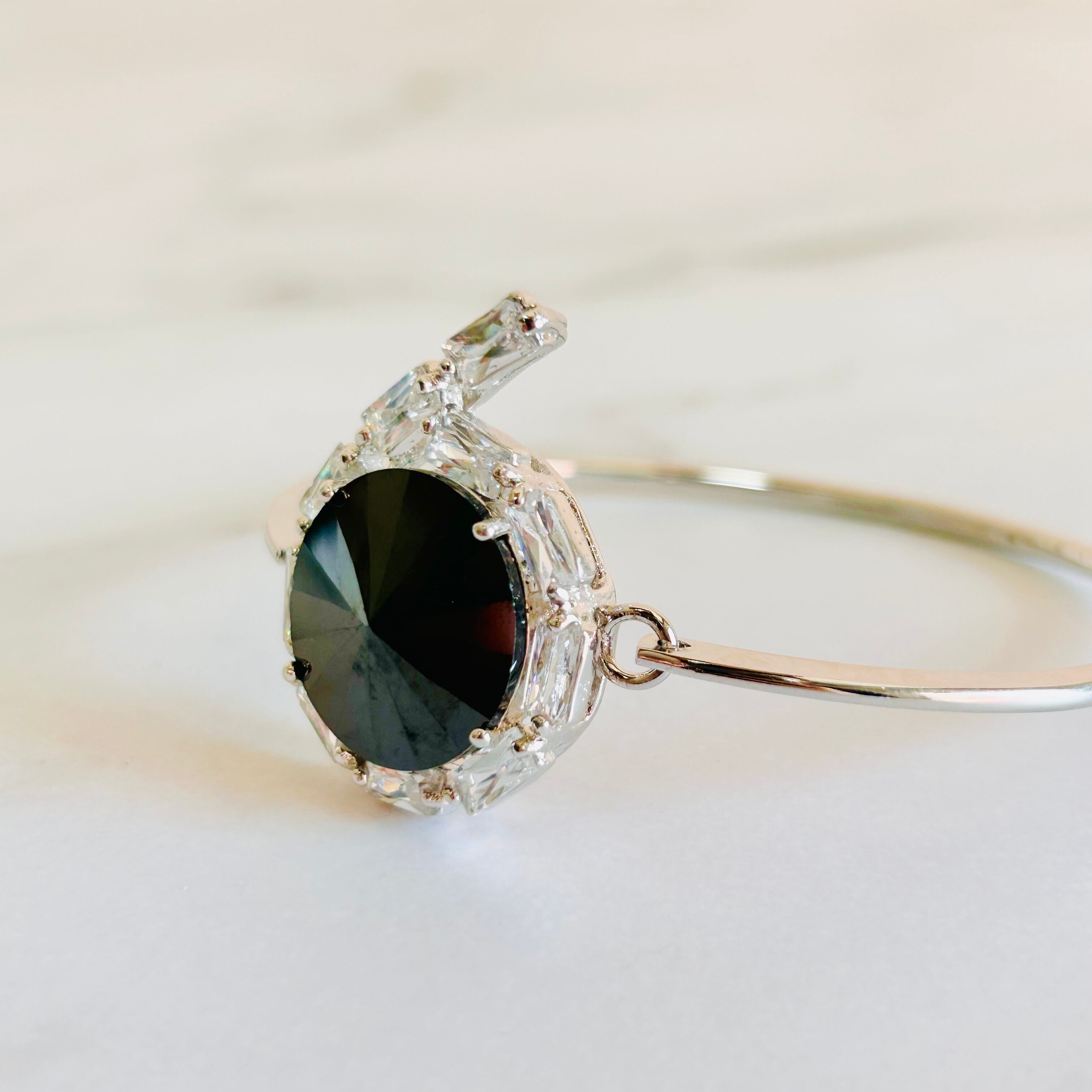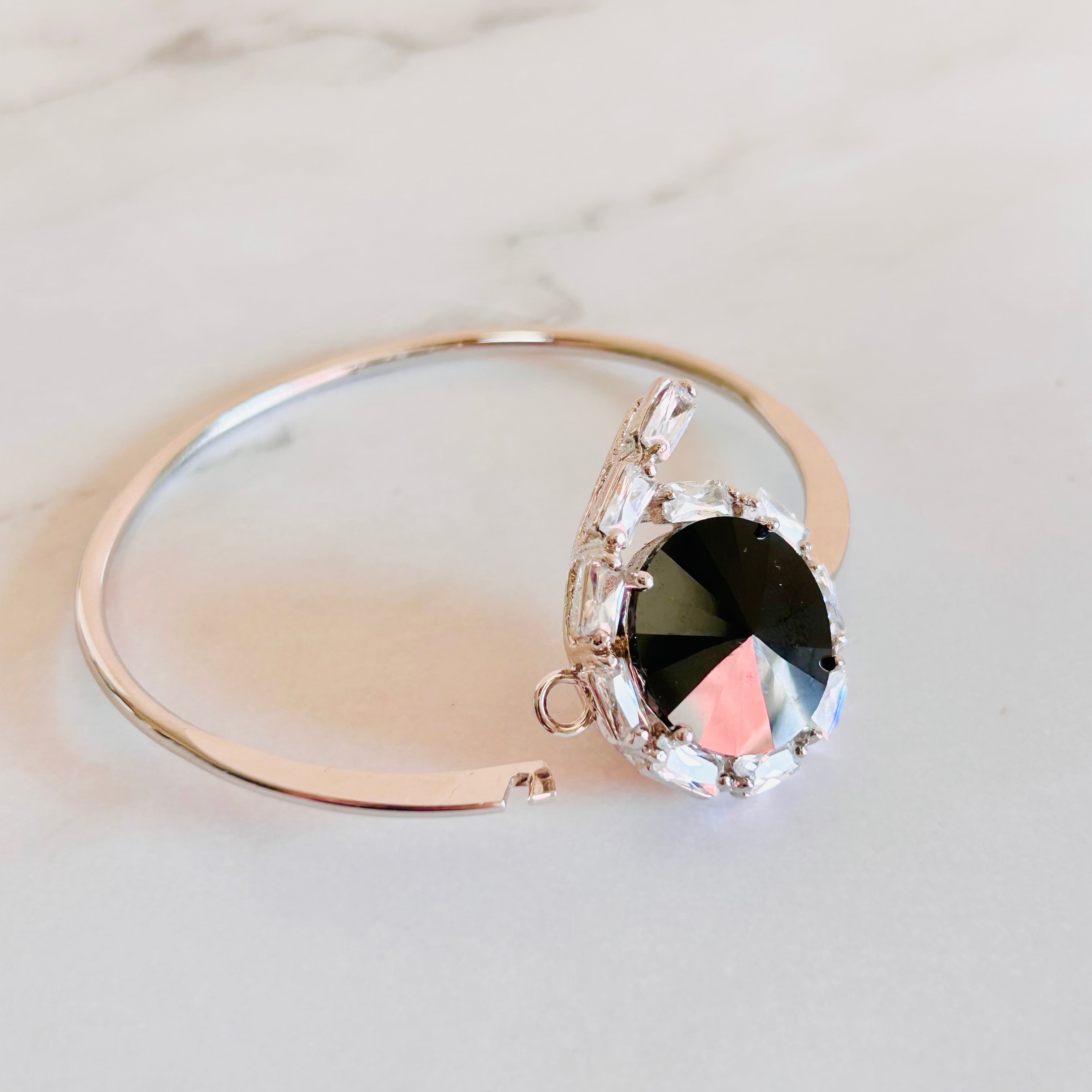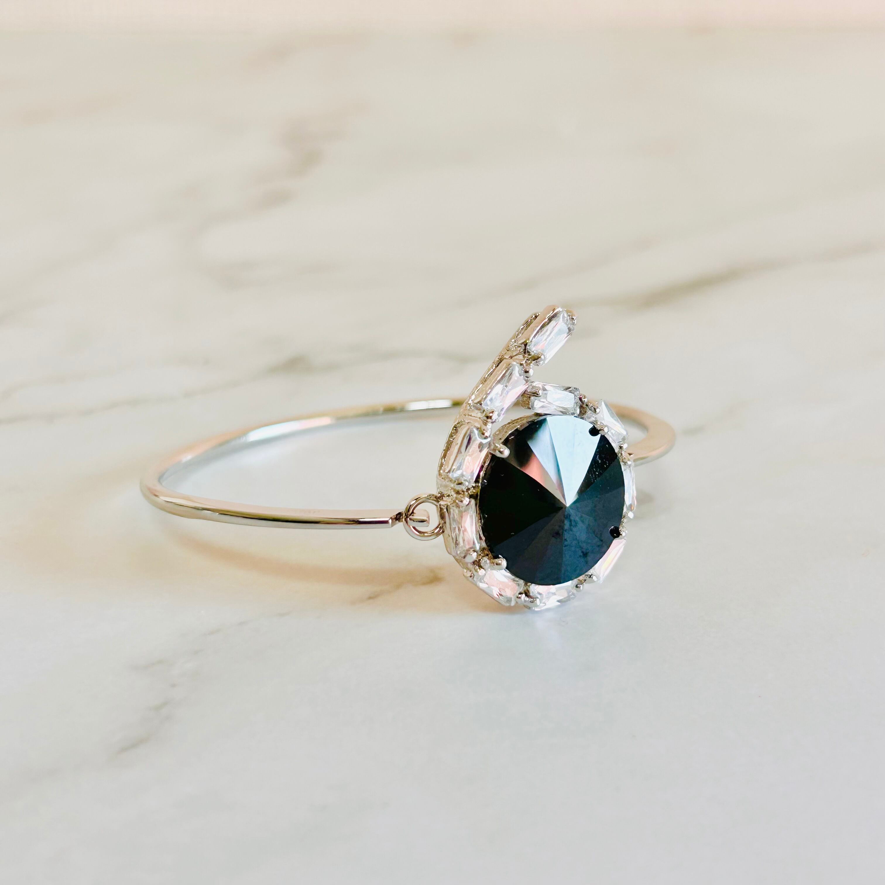スッキリとしたシルバーカラーのフレームに、大粒のラウンドカットクリスタルをセッティングしたブレスレットです。