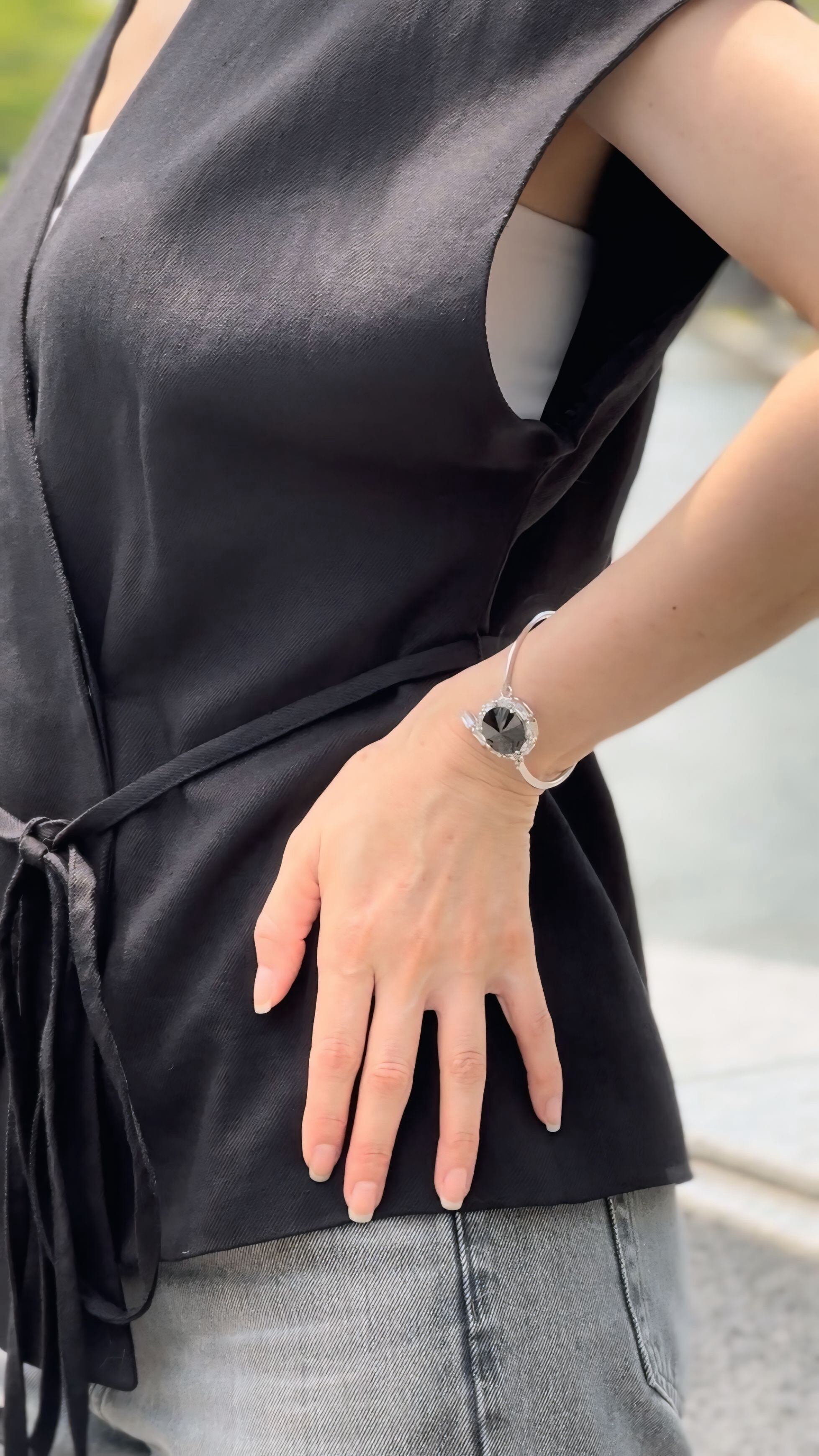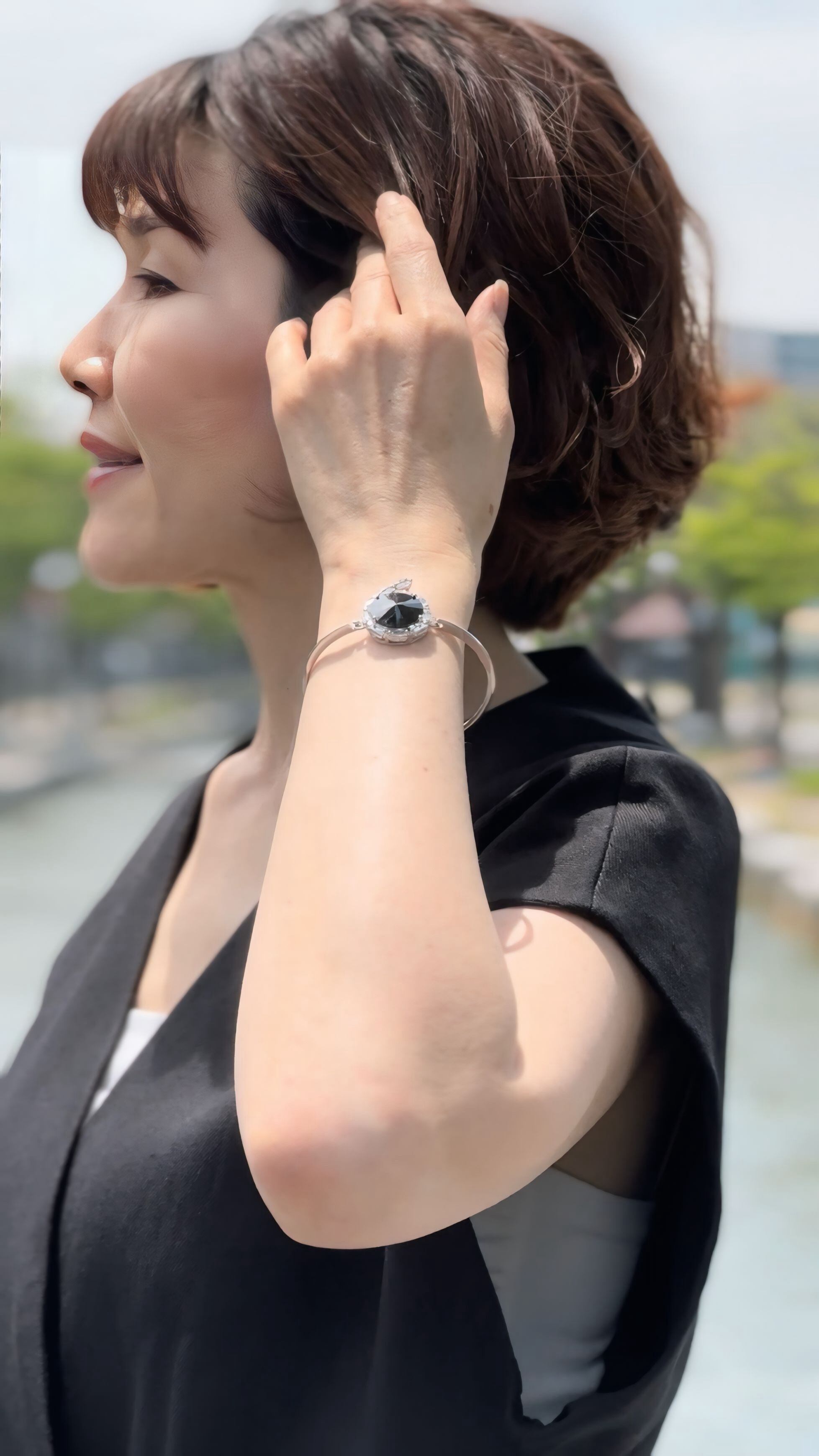 大人の装いに洗練された輝きを添える、シックで美しいブレスレットです。