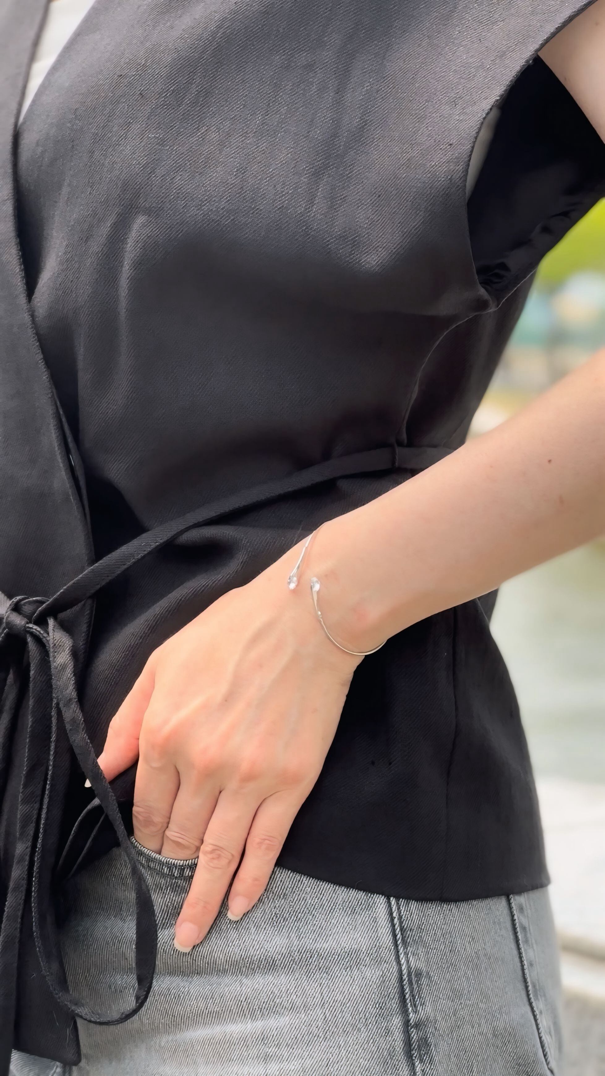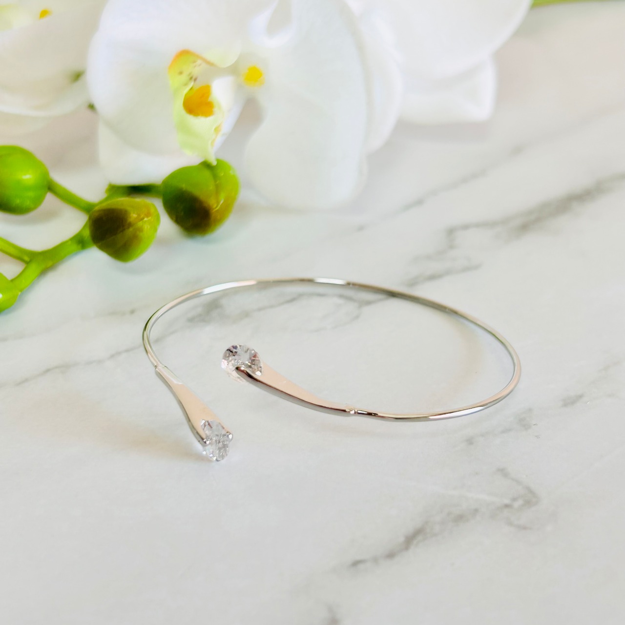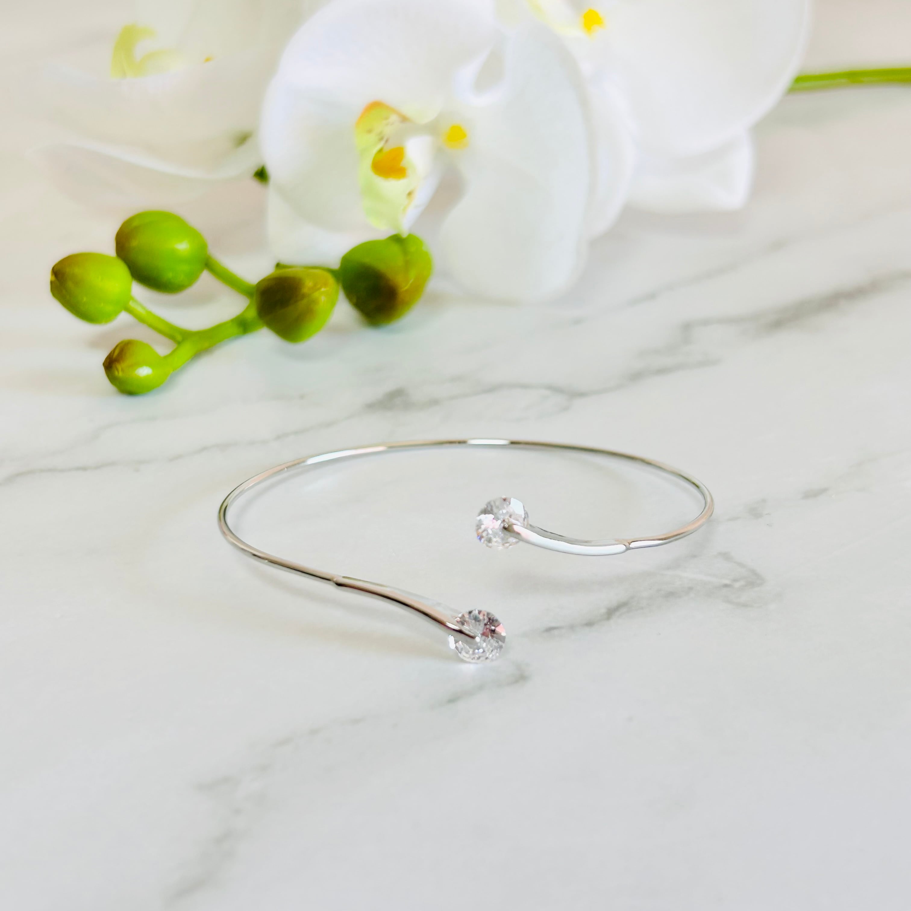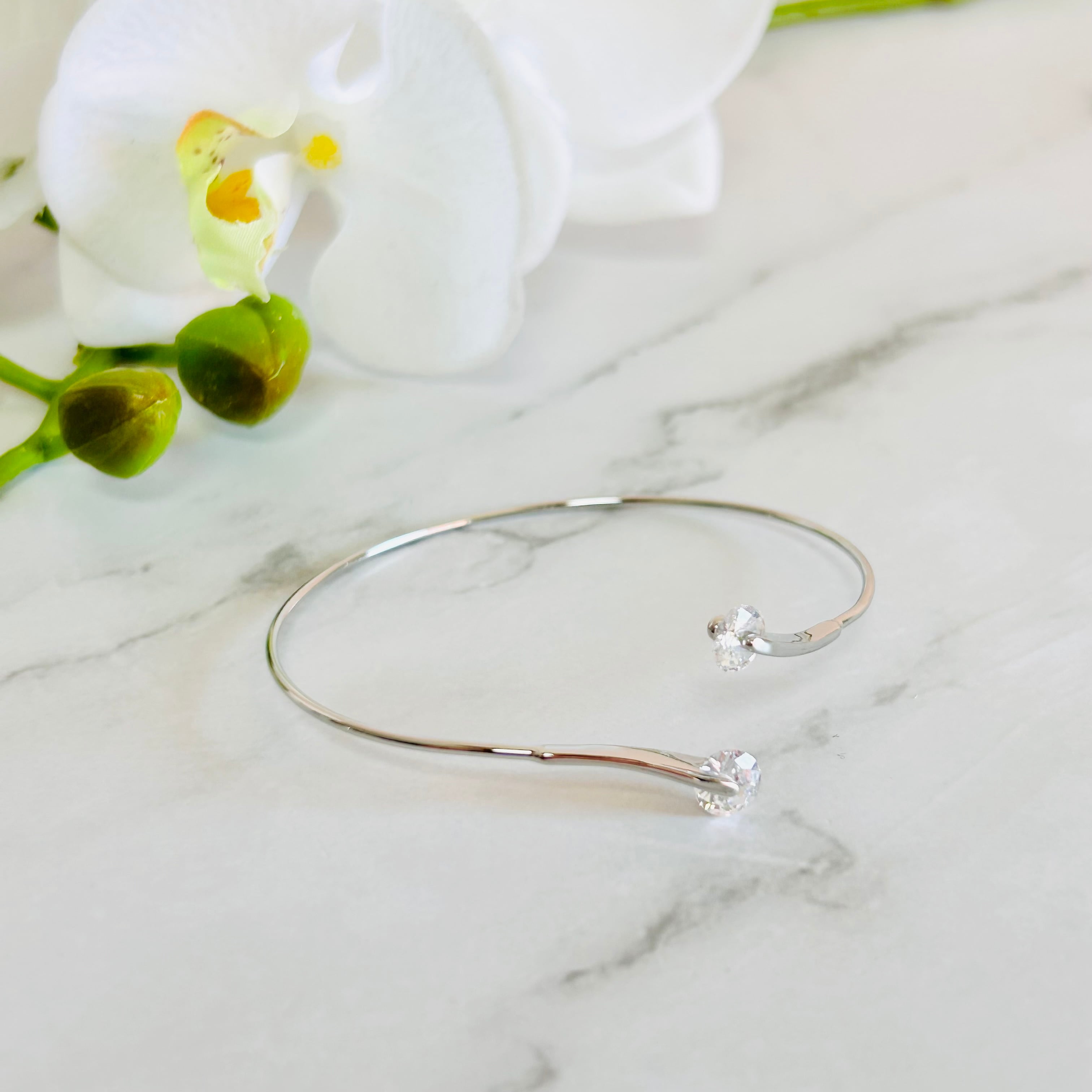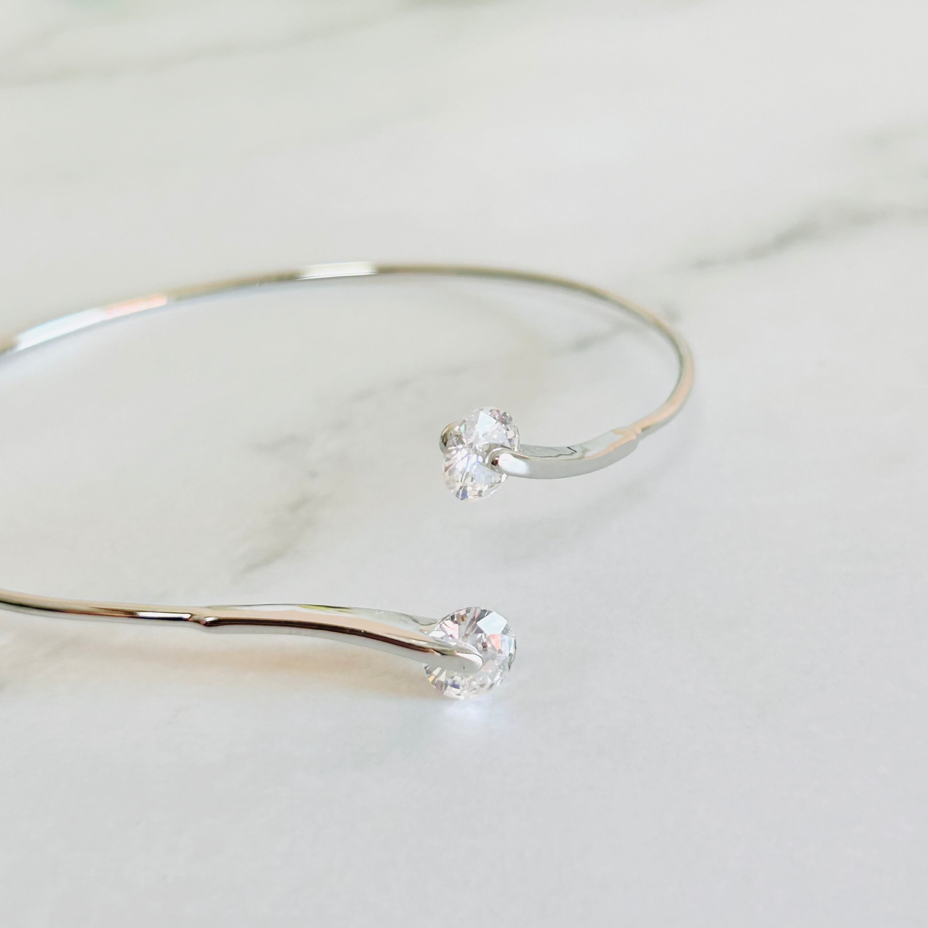 繊細なシルバーカラーのワイヤーラインに、クリアなラインストーンストーンをあしらったブレスレットです。
