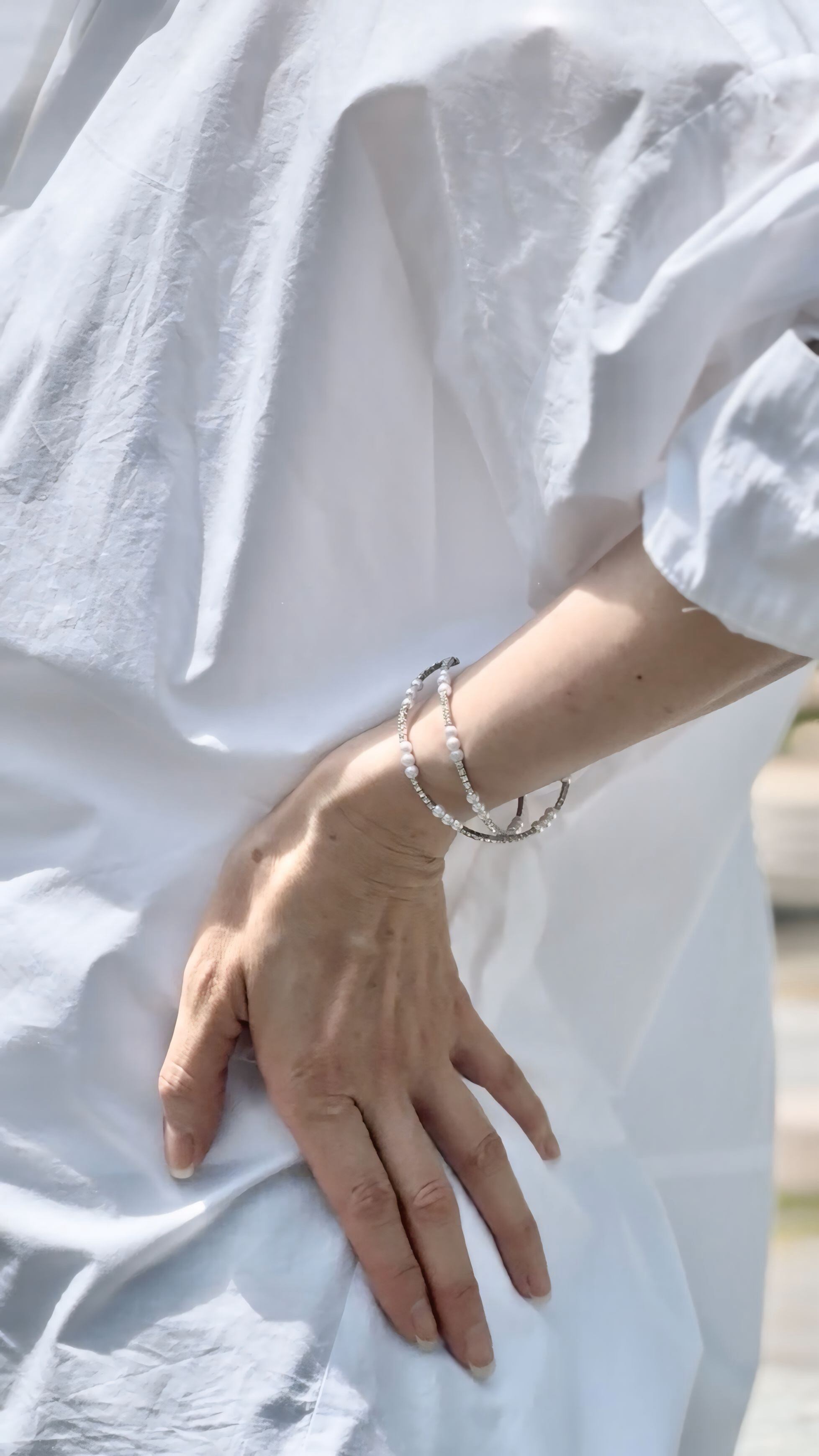 洗練された輝きと軽やかさが共存する、大人の女性のための上品ブレスレットです。