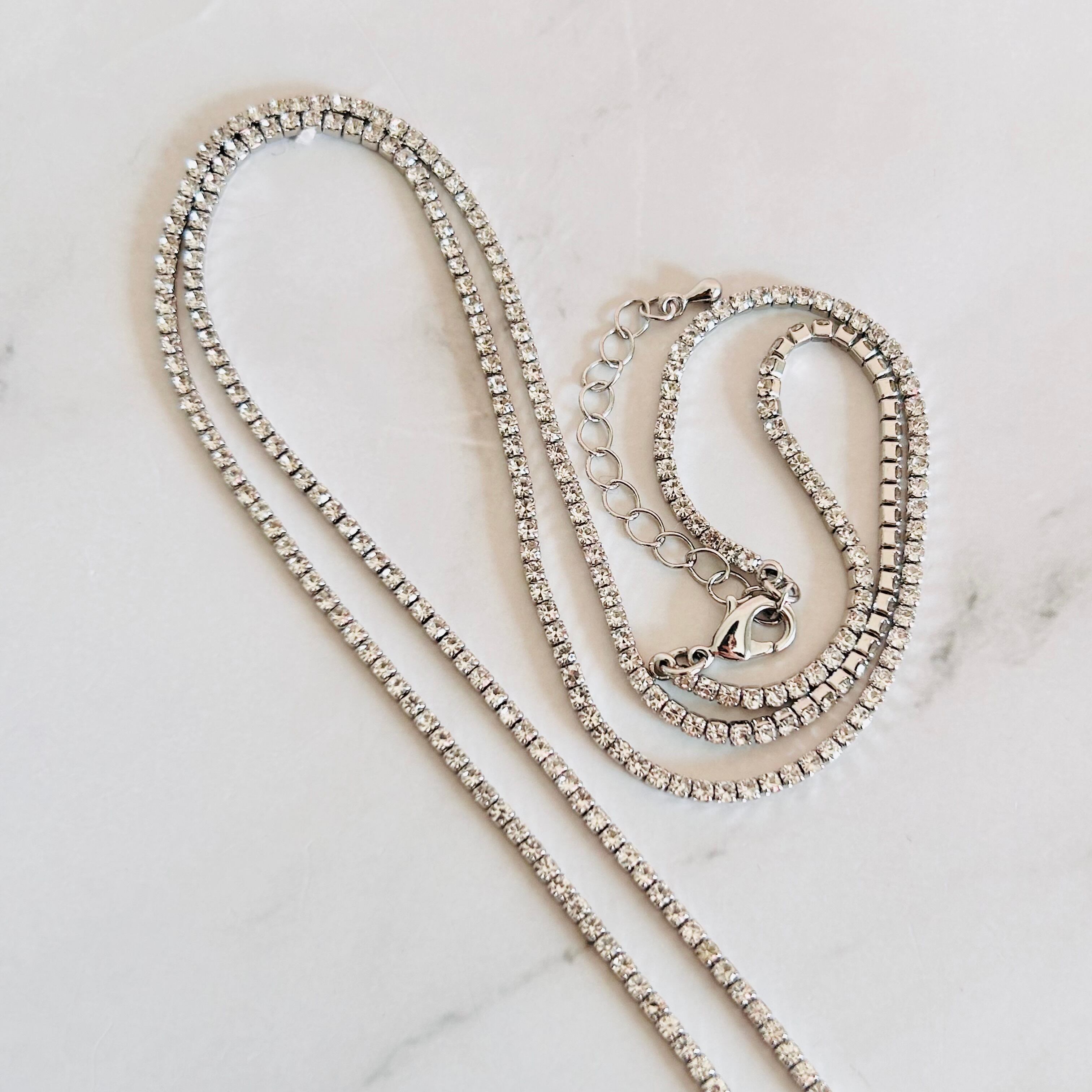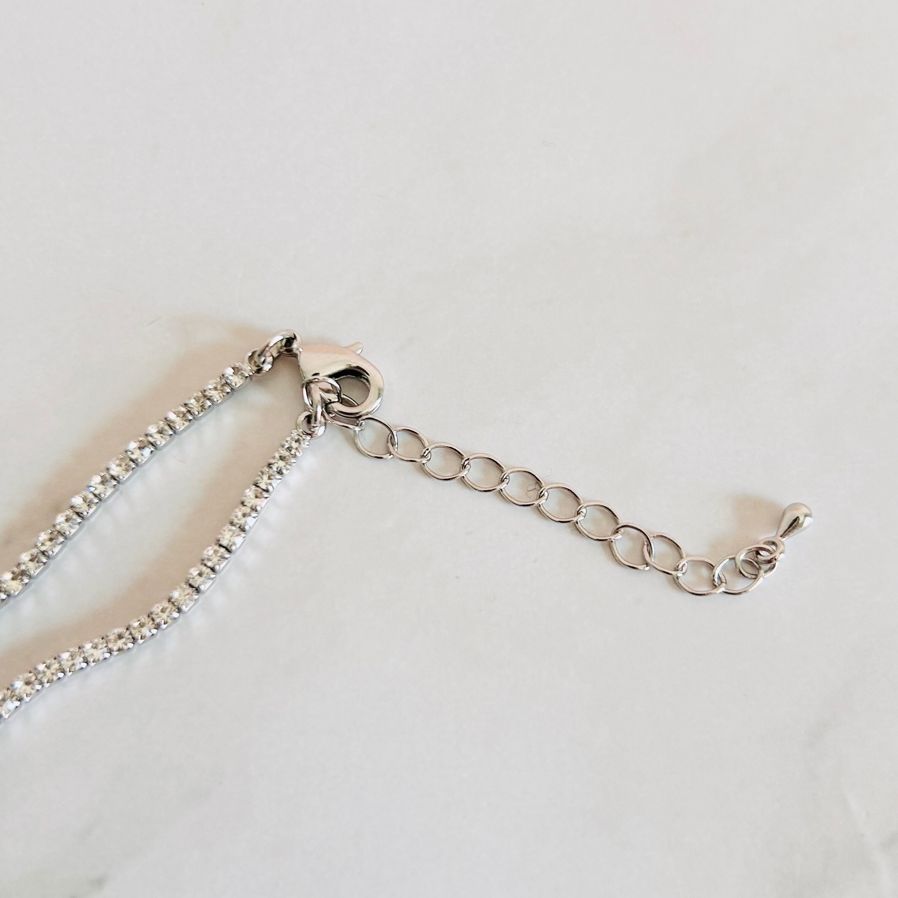 スワロフスキー社製のきらめくクリスタルを敷き詰めた、細身の2本ラインで構成されたロングネックレスです。