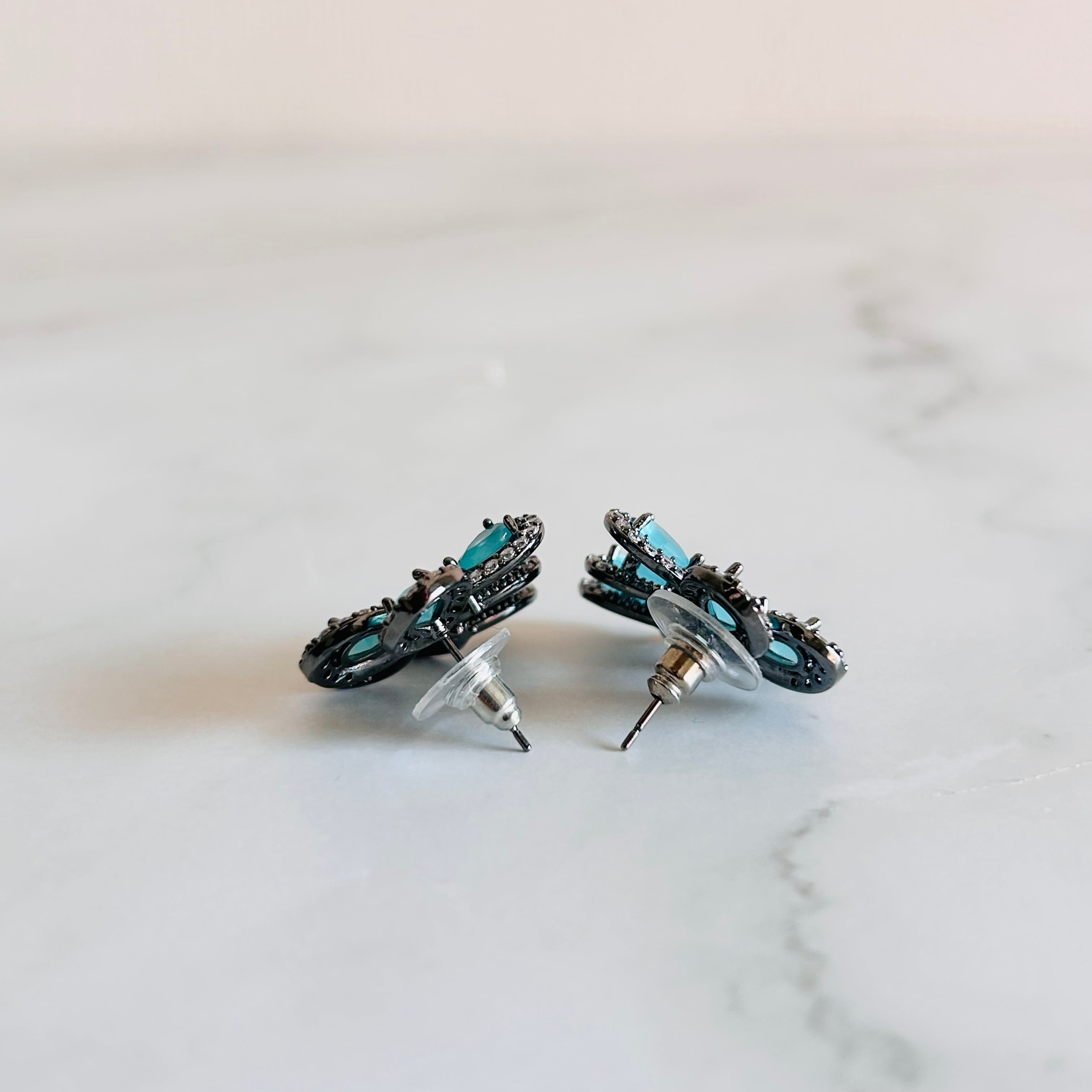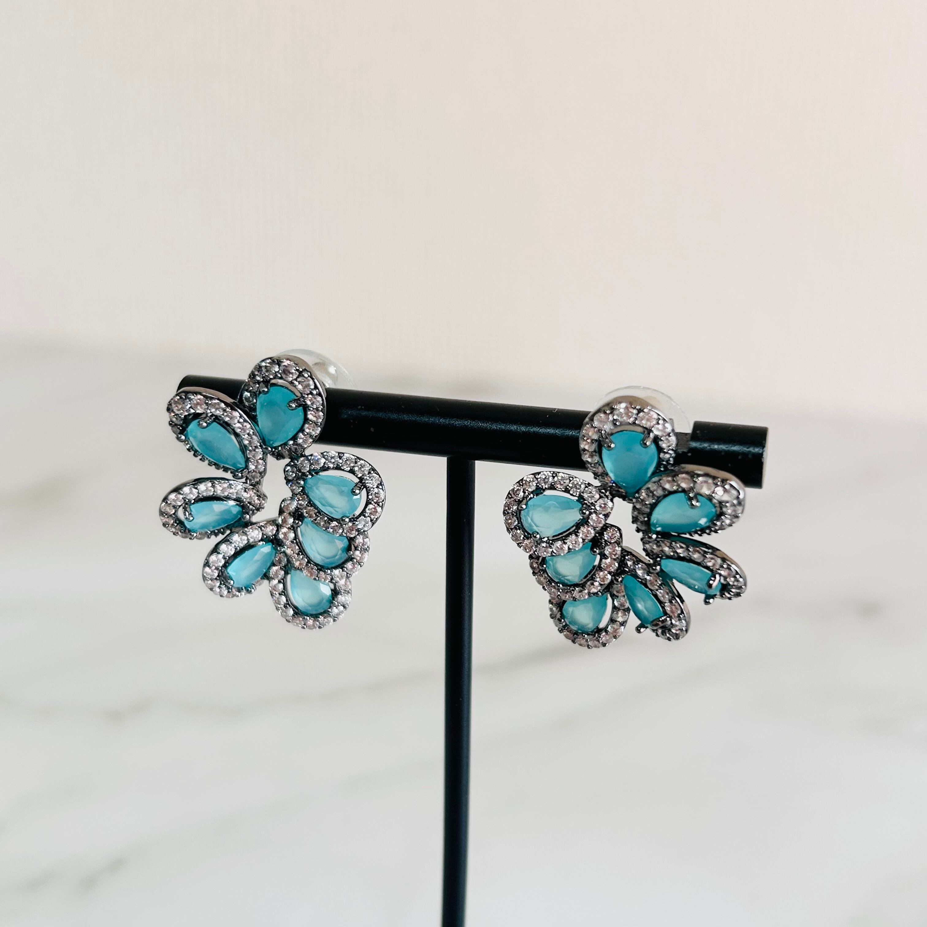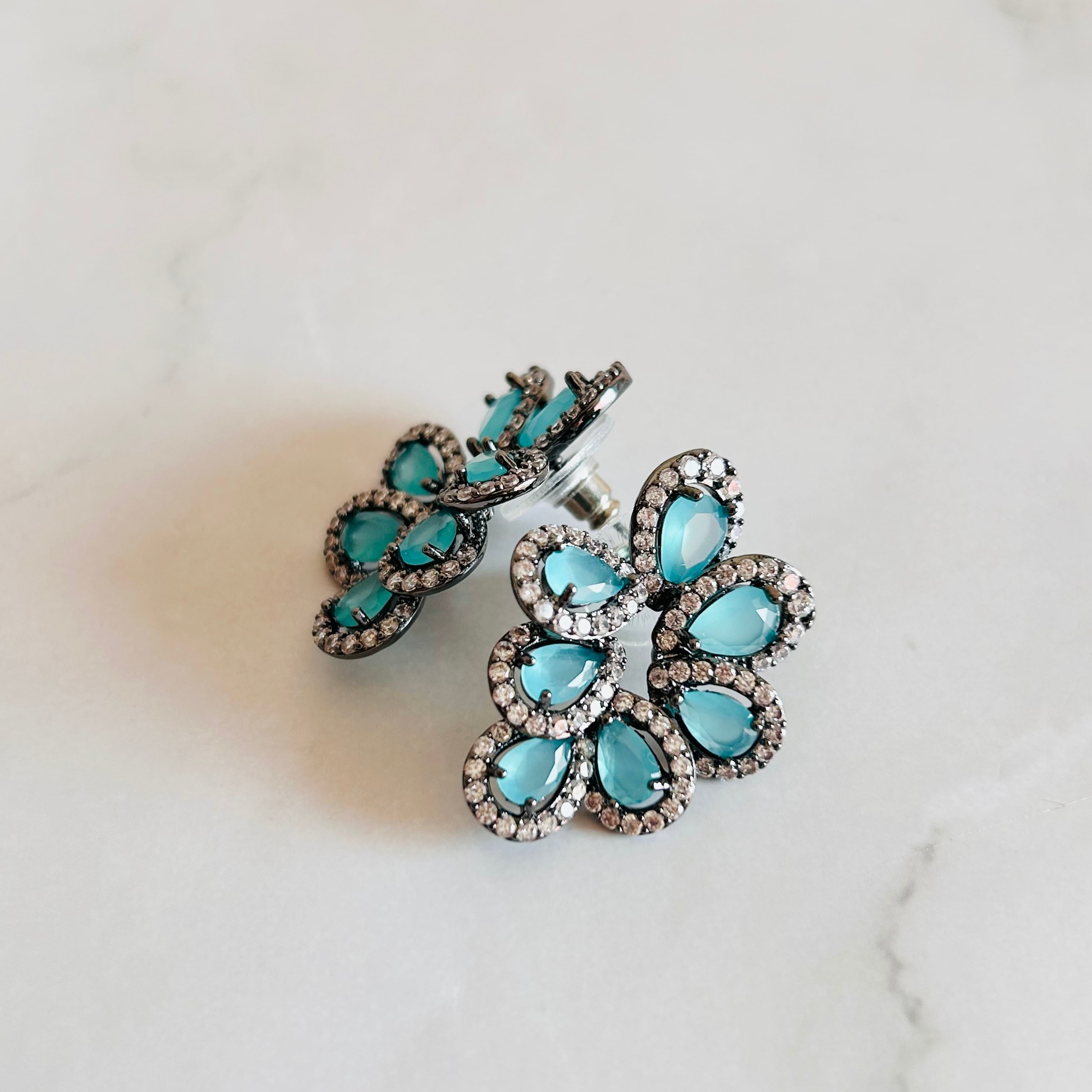 光を受けてきらめくストーンの輝きと、爽やかなブルーカラーのコントラストが、耳元に華やぎをプラス!