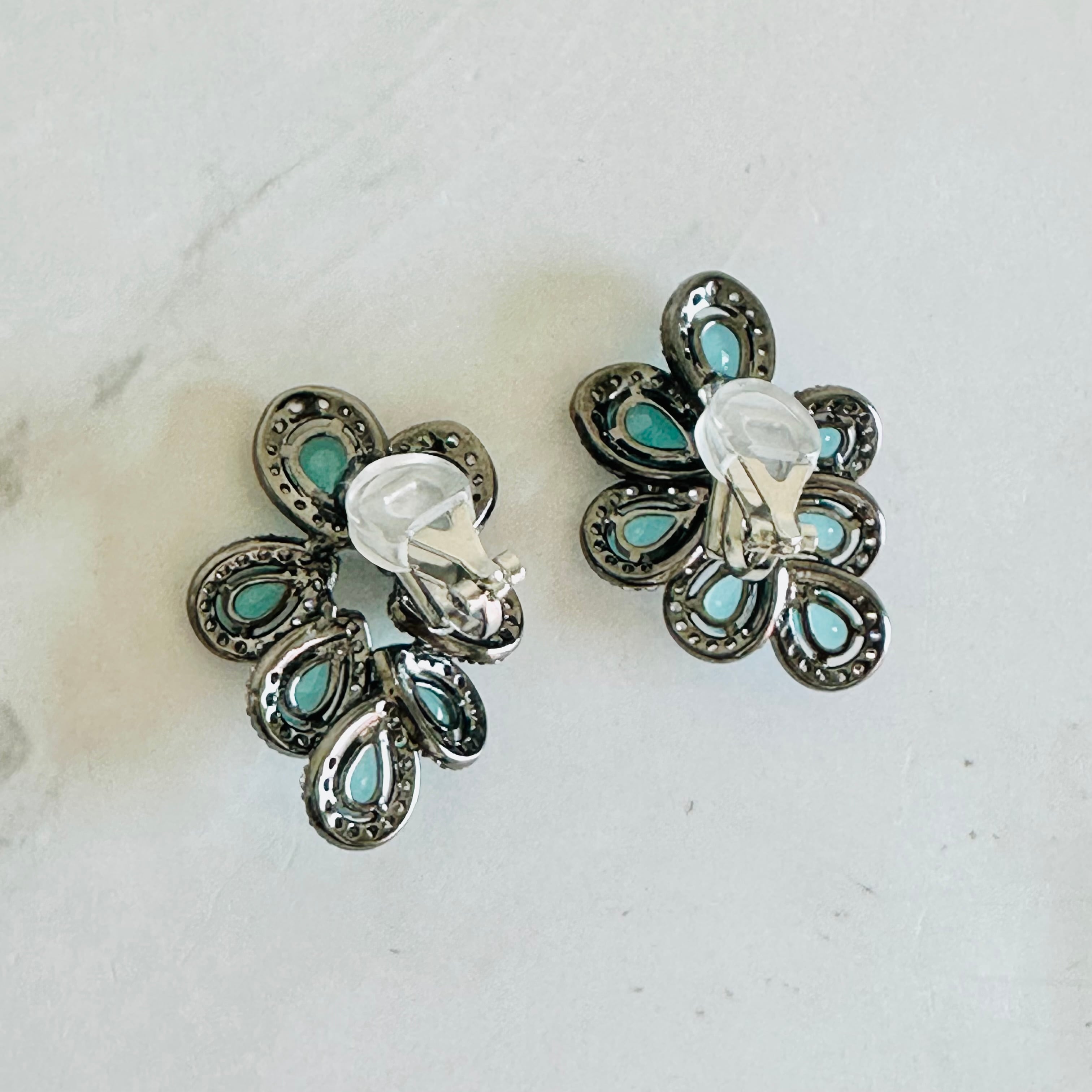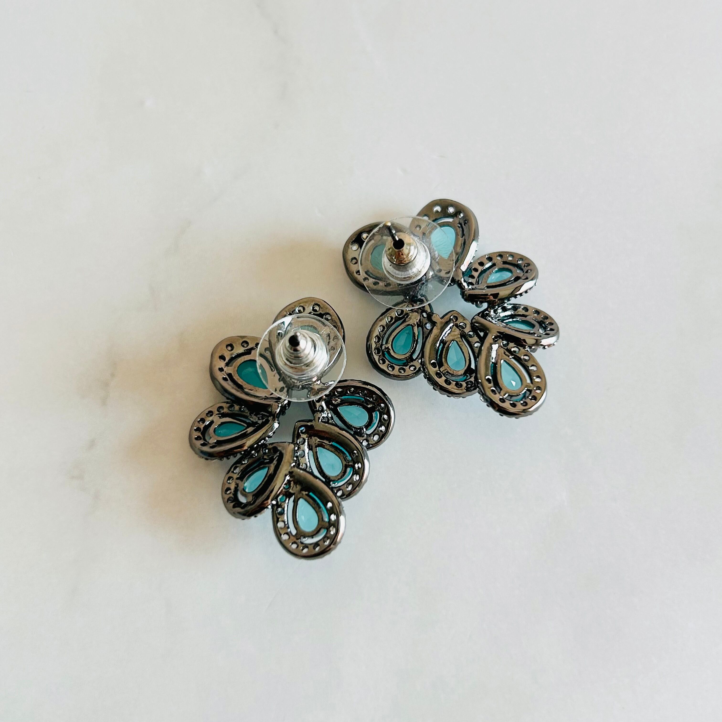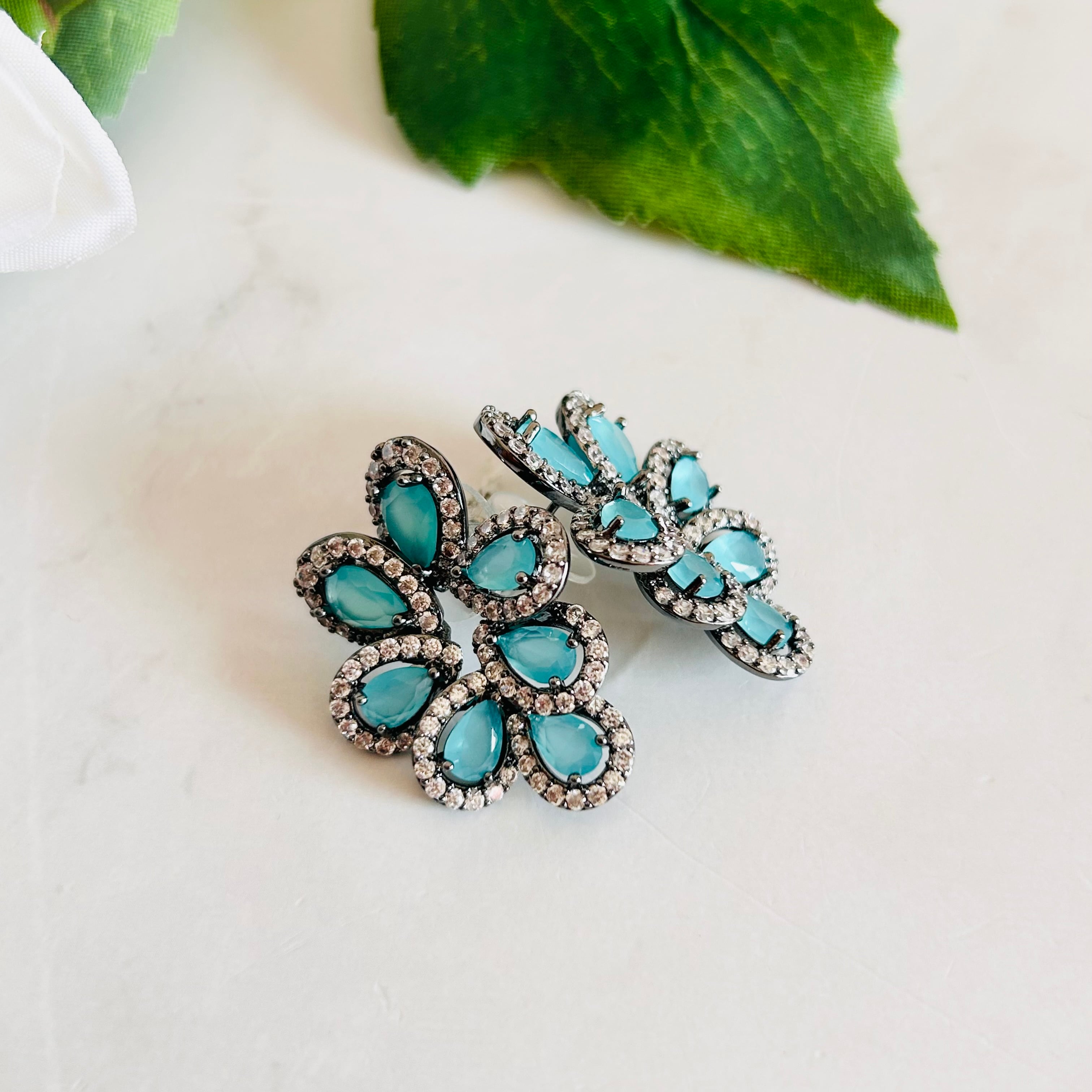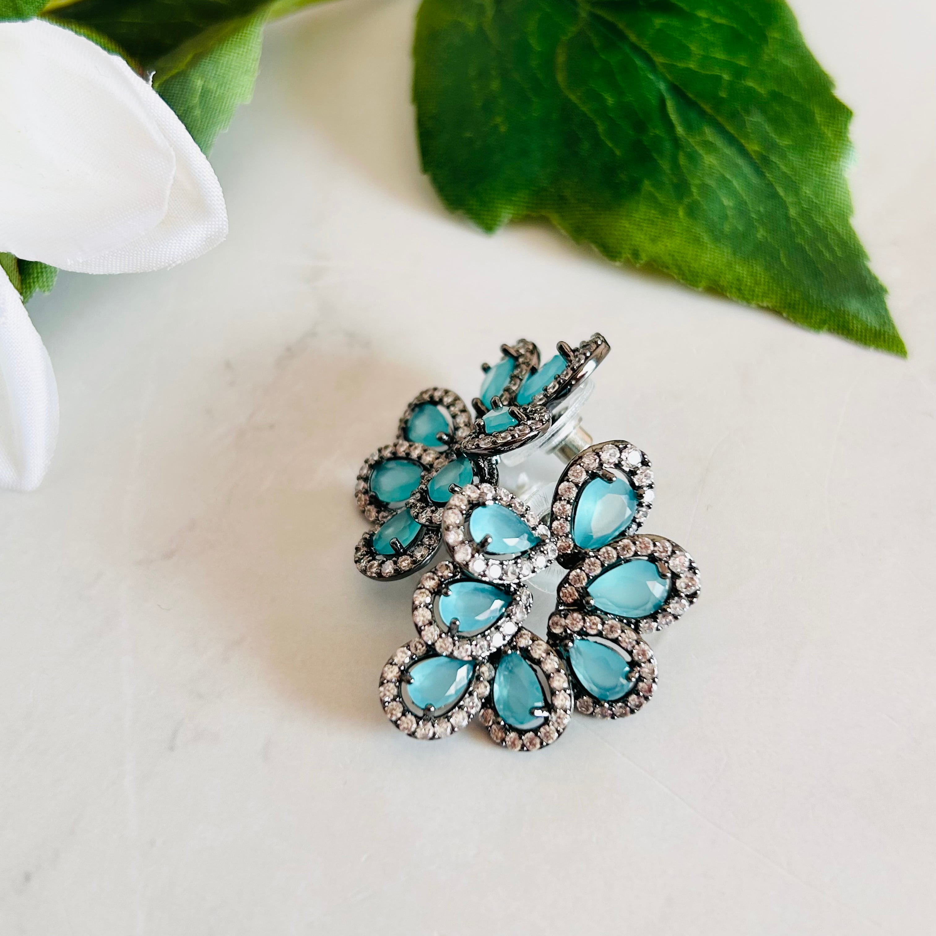 光を受けてきらめくストーンの輝きと、爽やかなブルーカラーのコントラストが、耳元に華やぎをプラス!