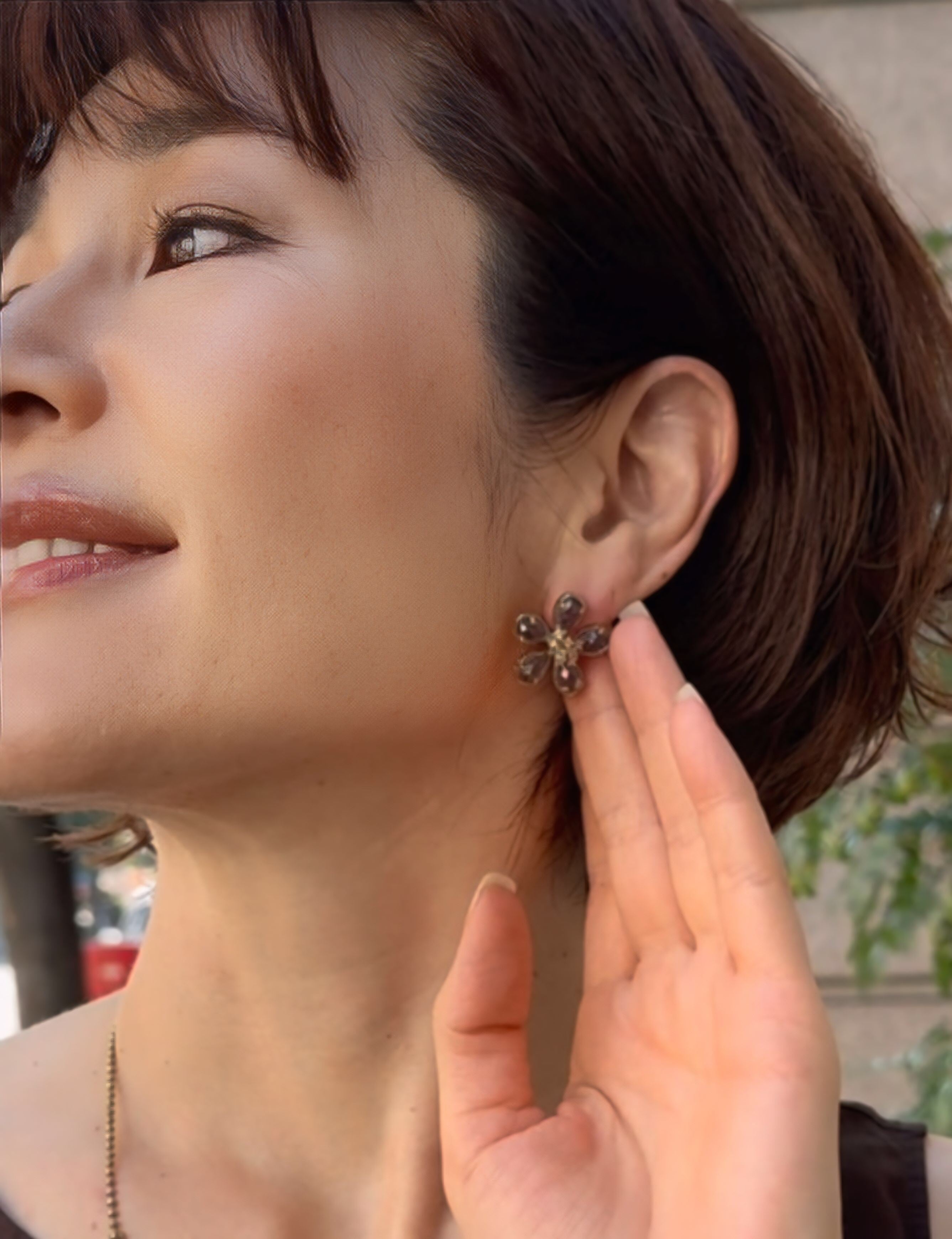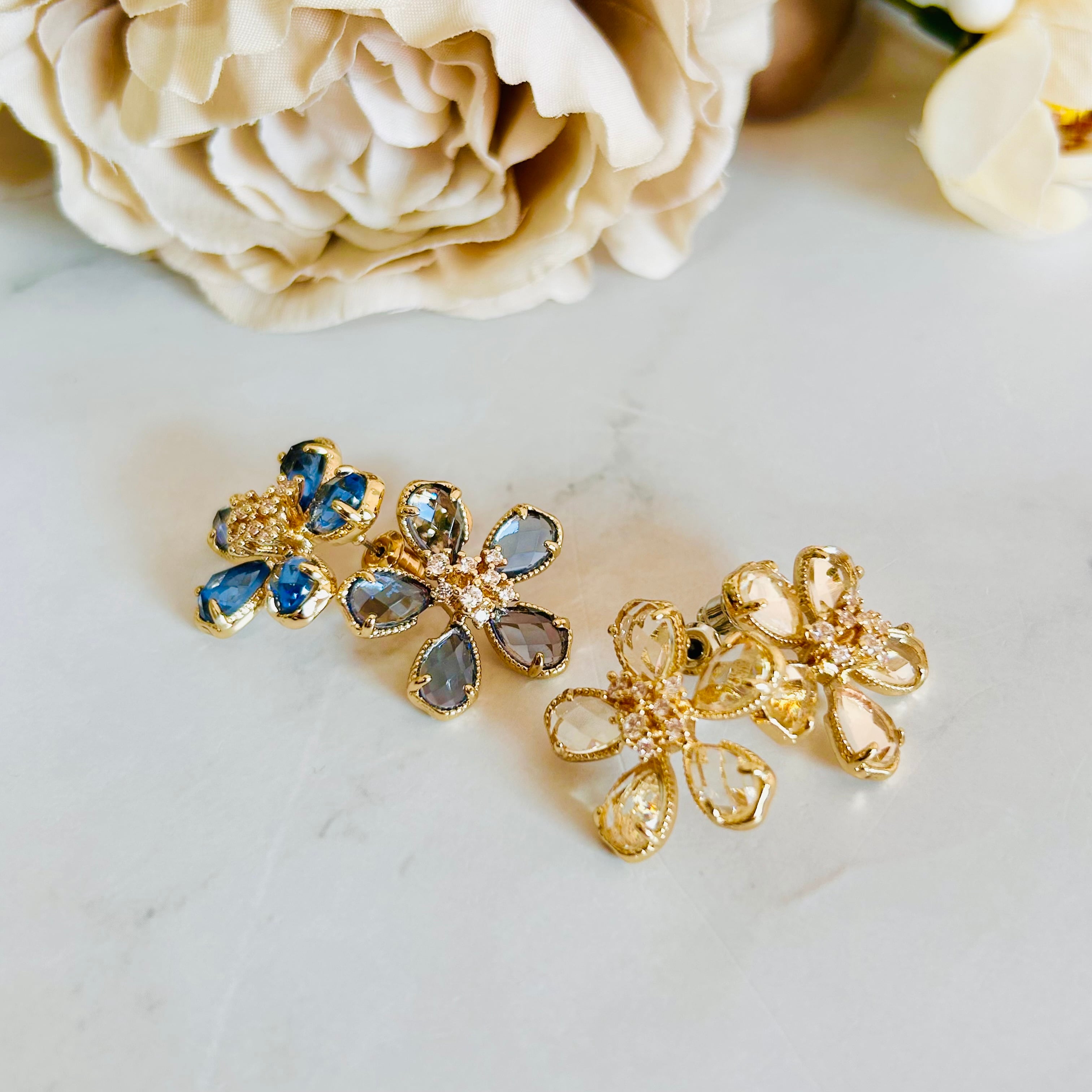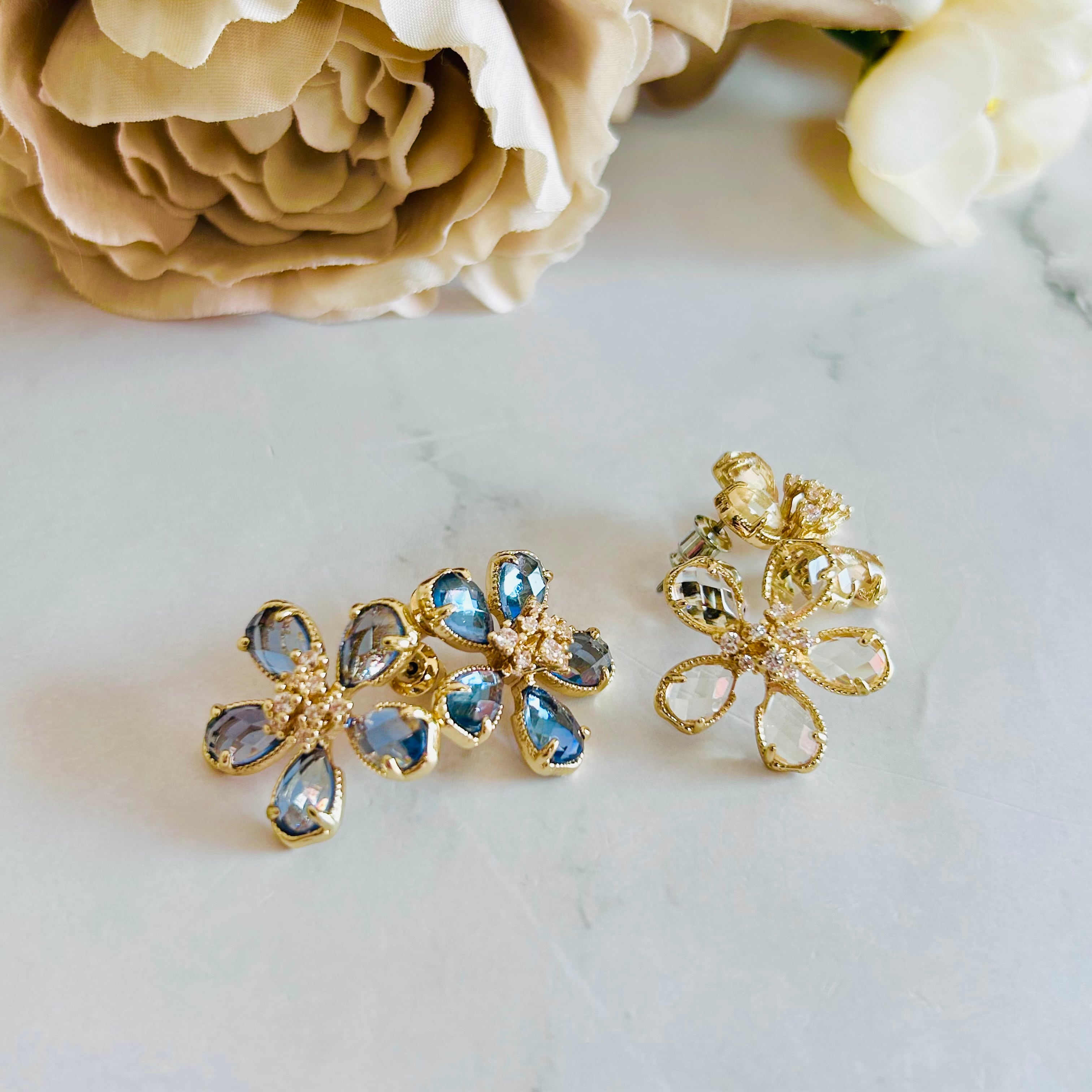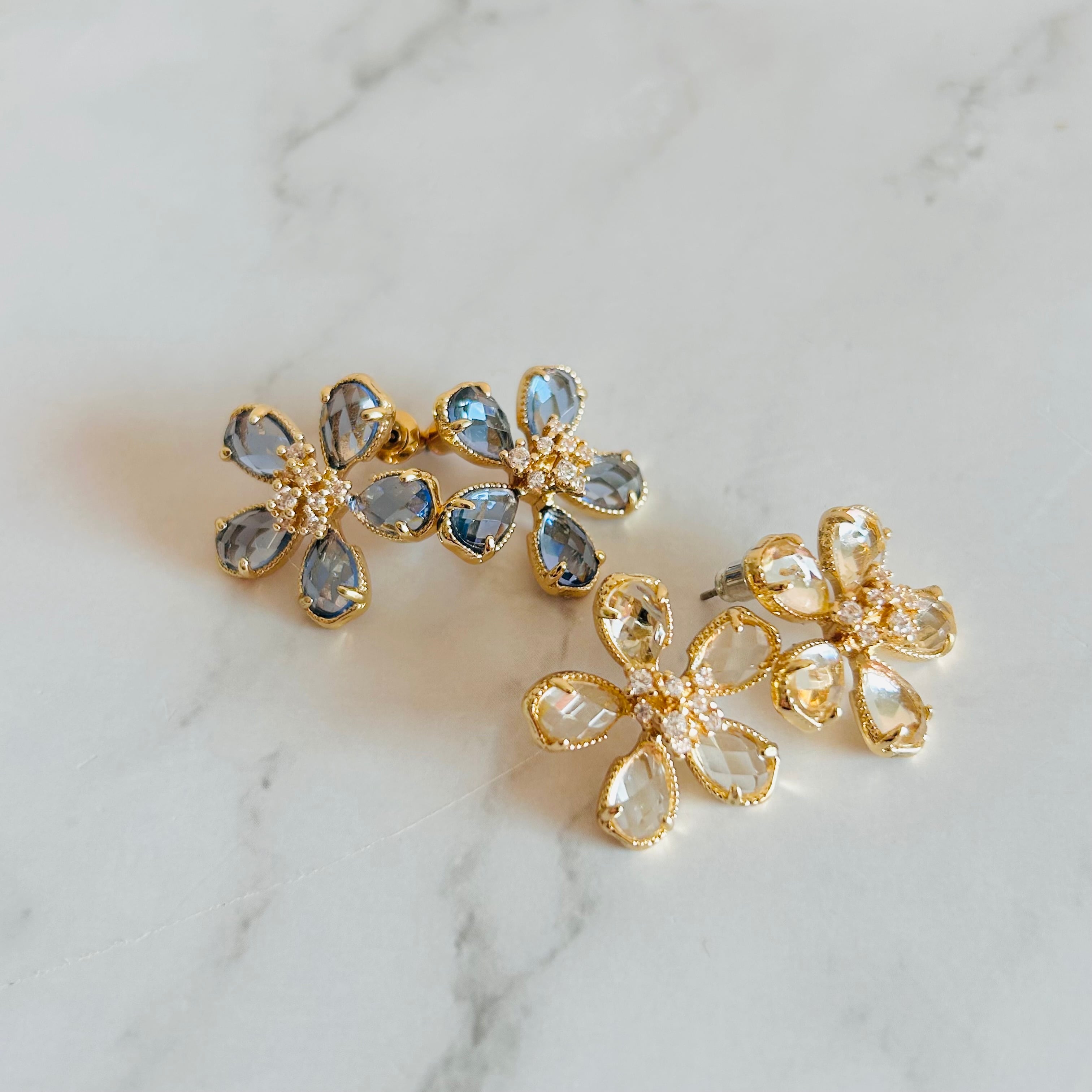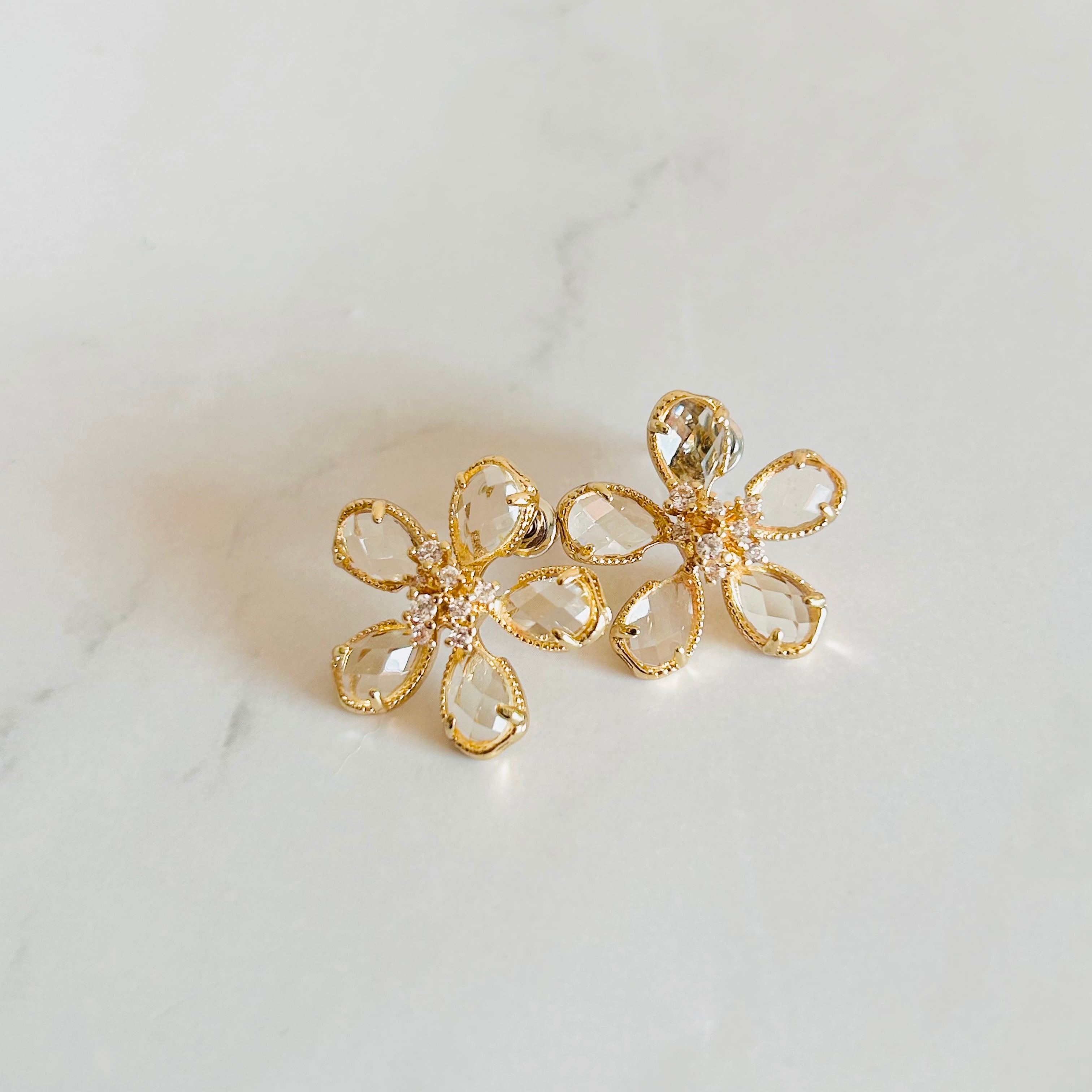 透きとおるような瑞々しいクリスタルを花びらにした、上品で爽やかなフラワーモチーフのピアスです。
