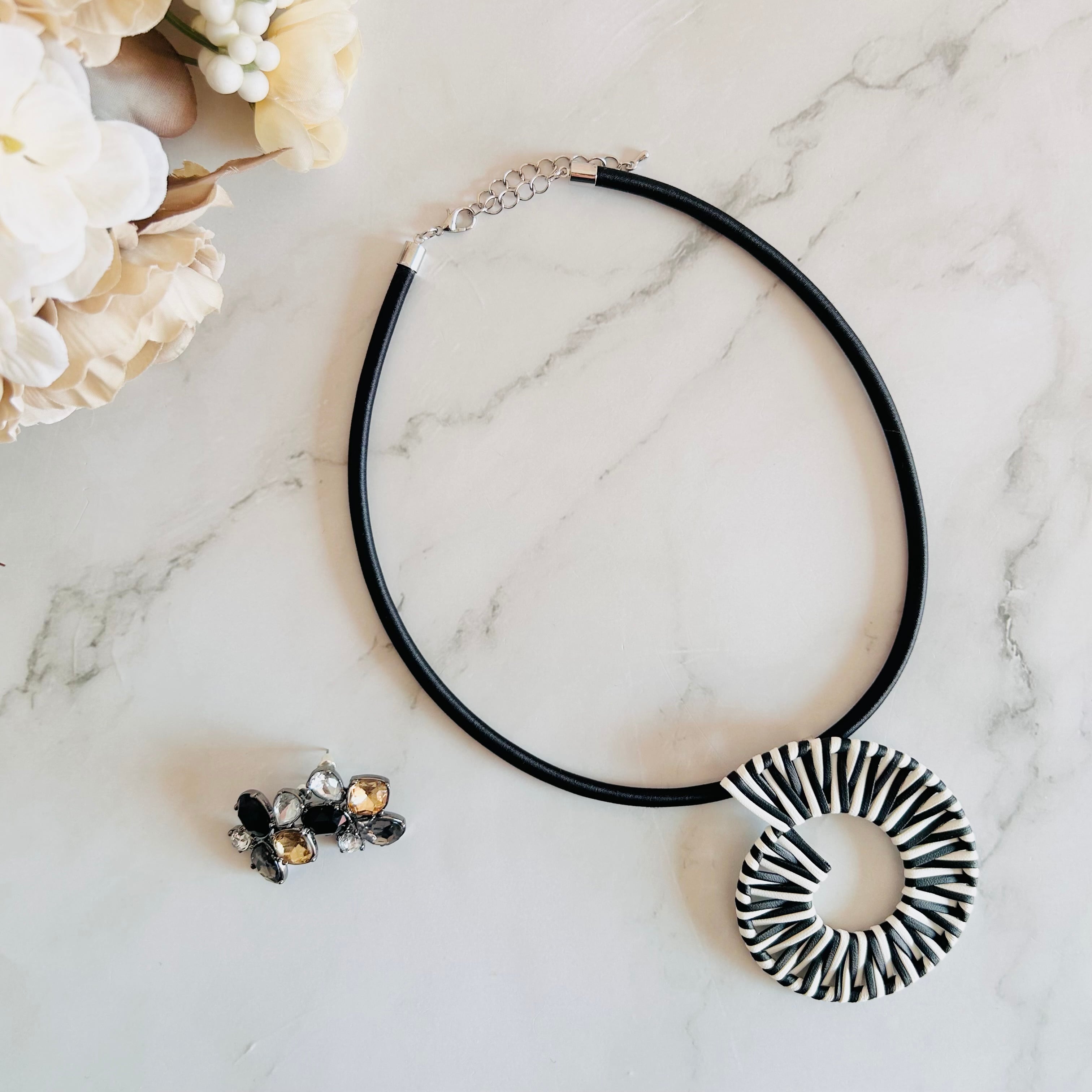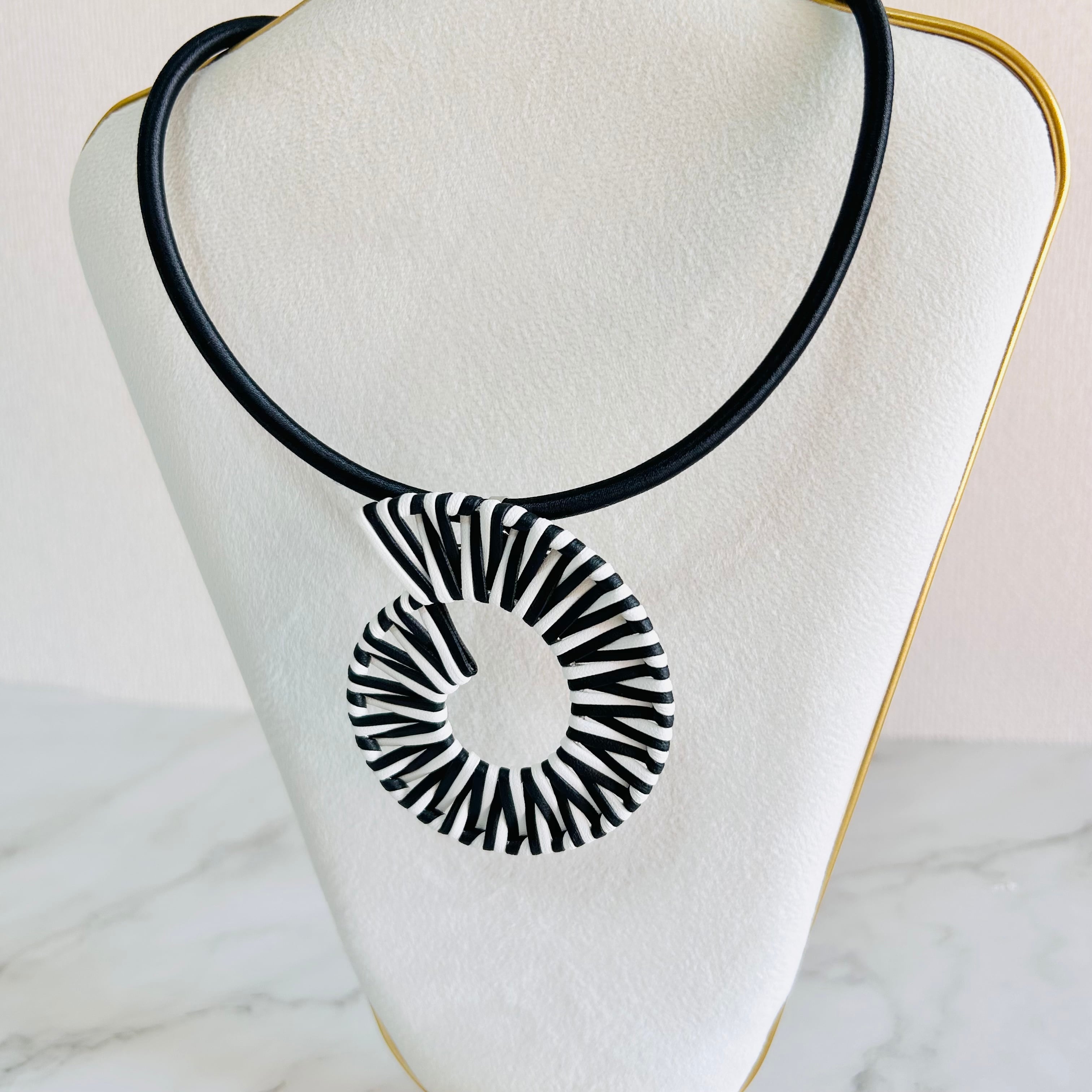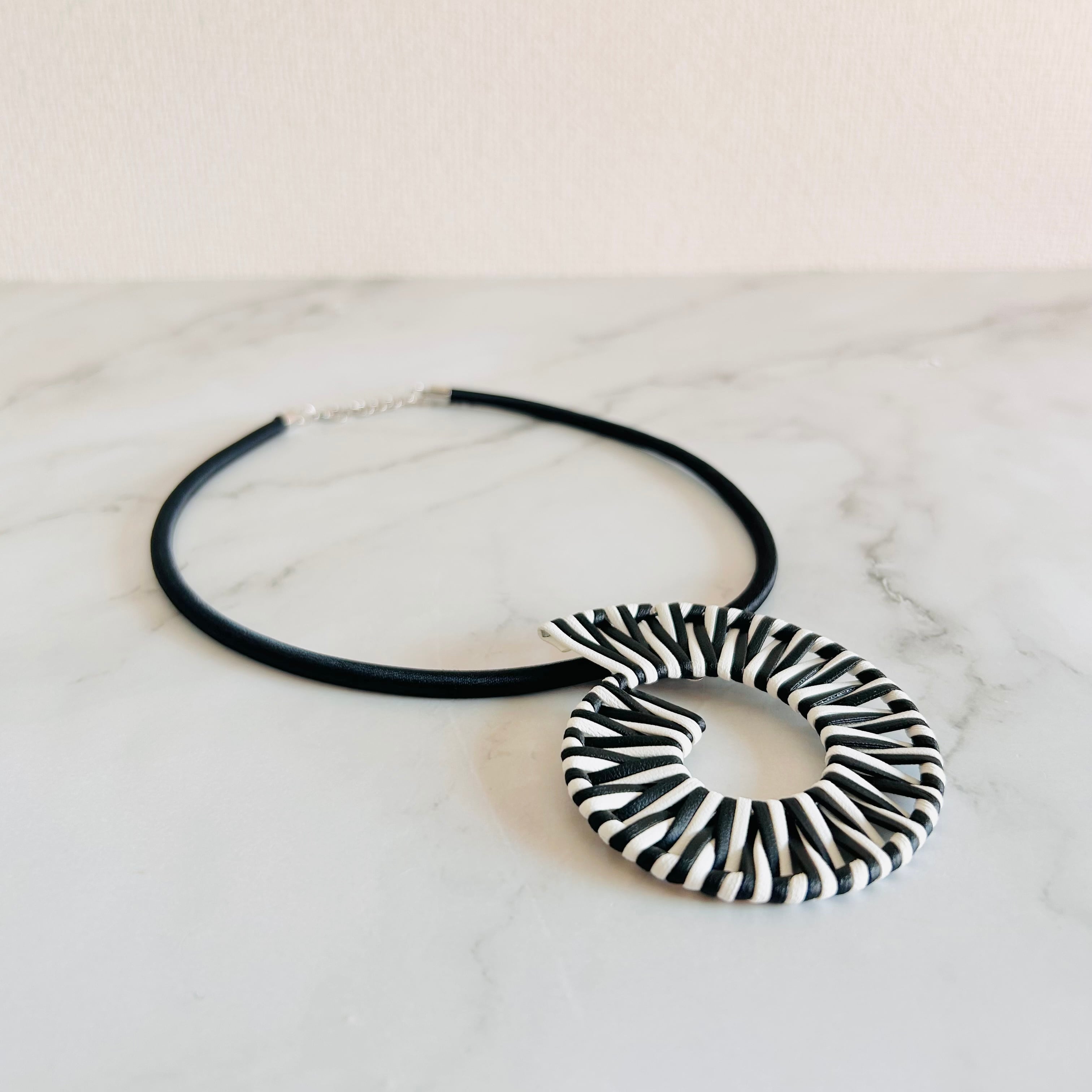 モダンな印象を放つ、ブラック×ホワイトのサークルモチーフネックレスです。