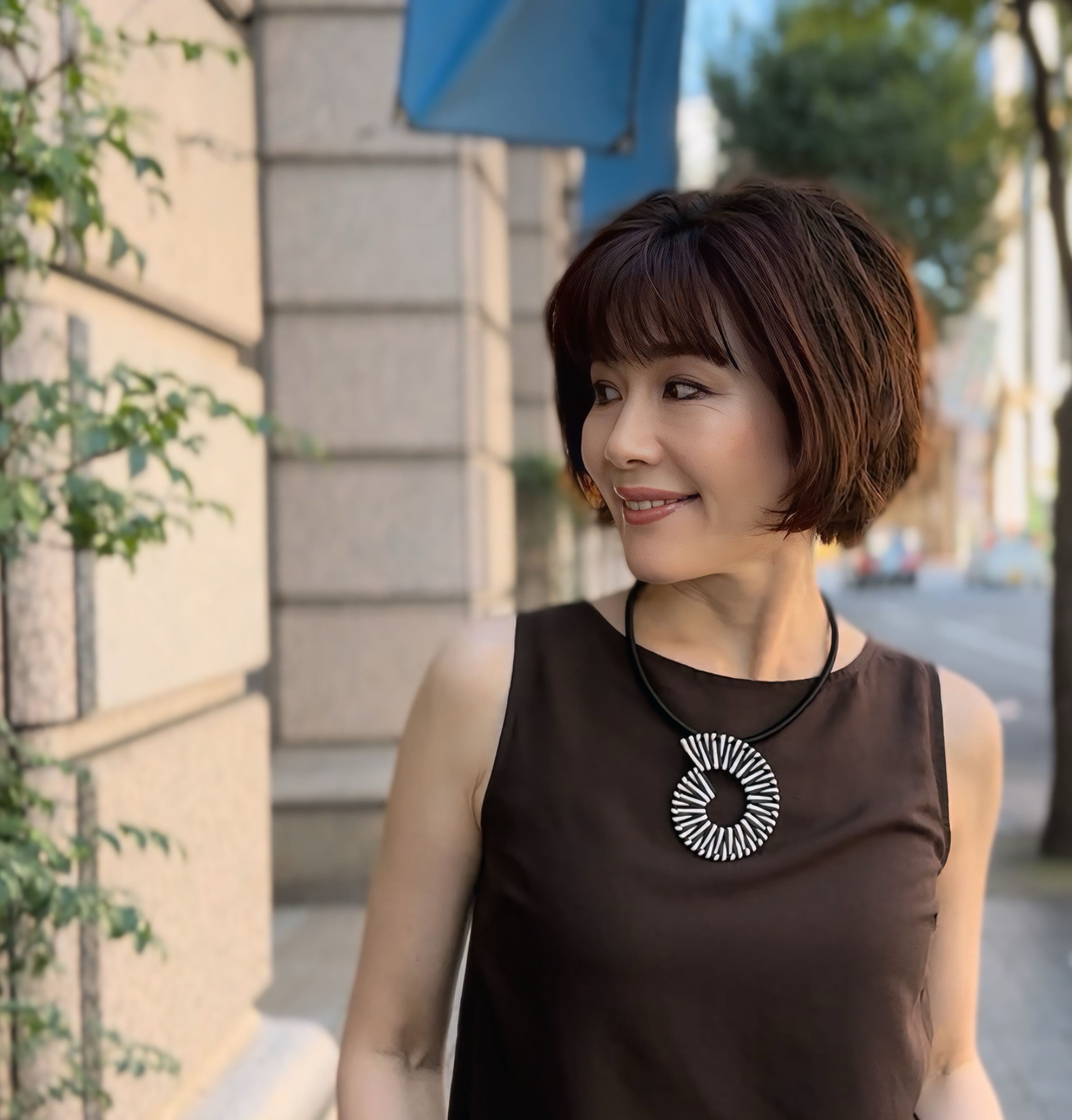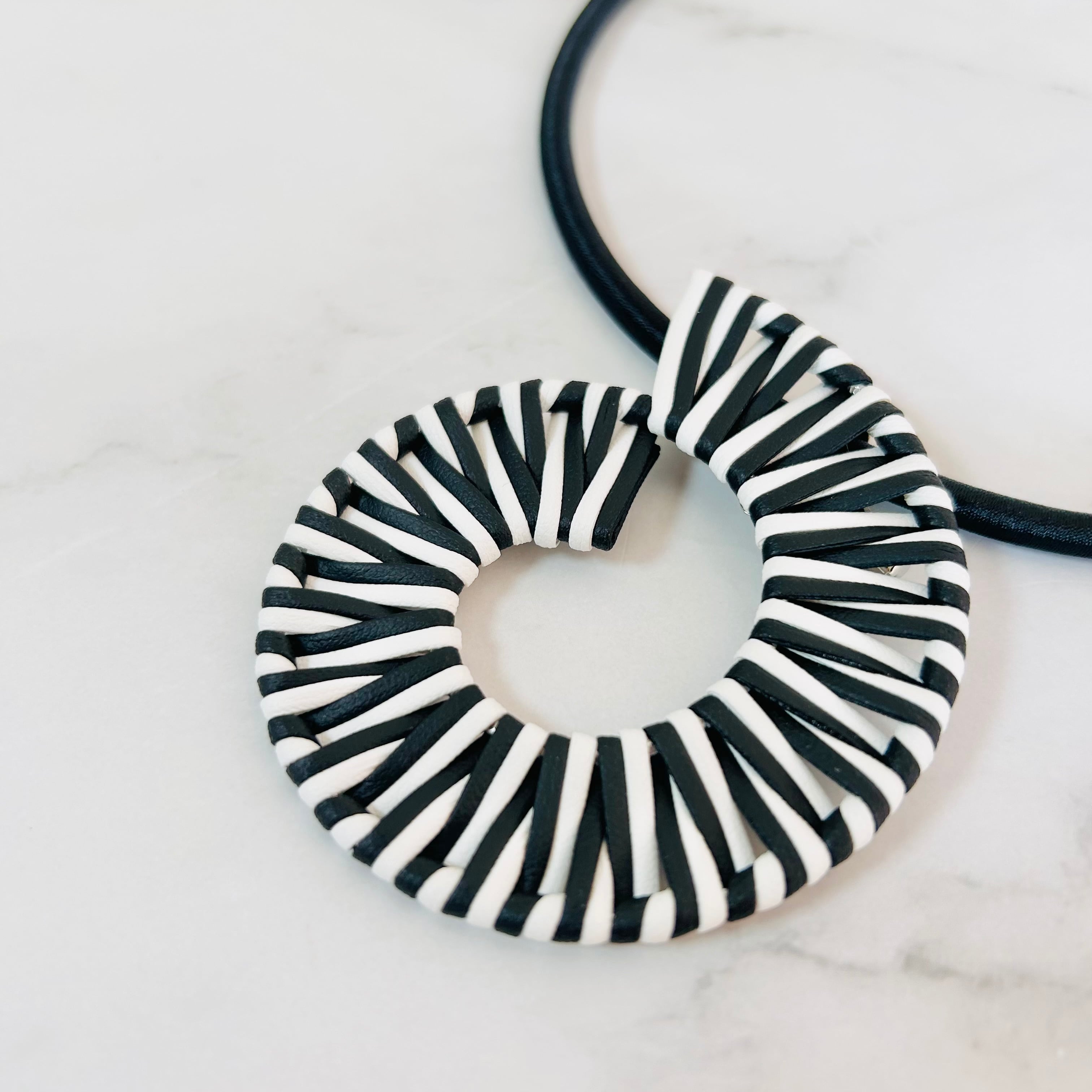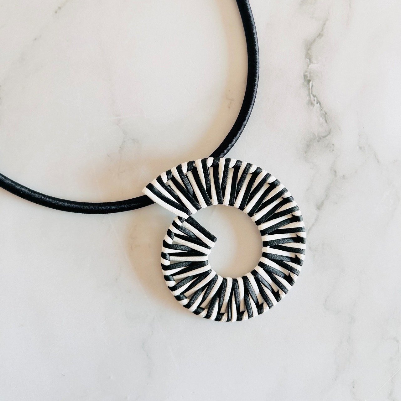 モダンな印象を放つ、ブラック×ホワイトのサークルモチーフネックレスです。