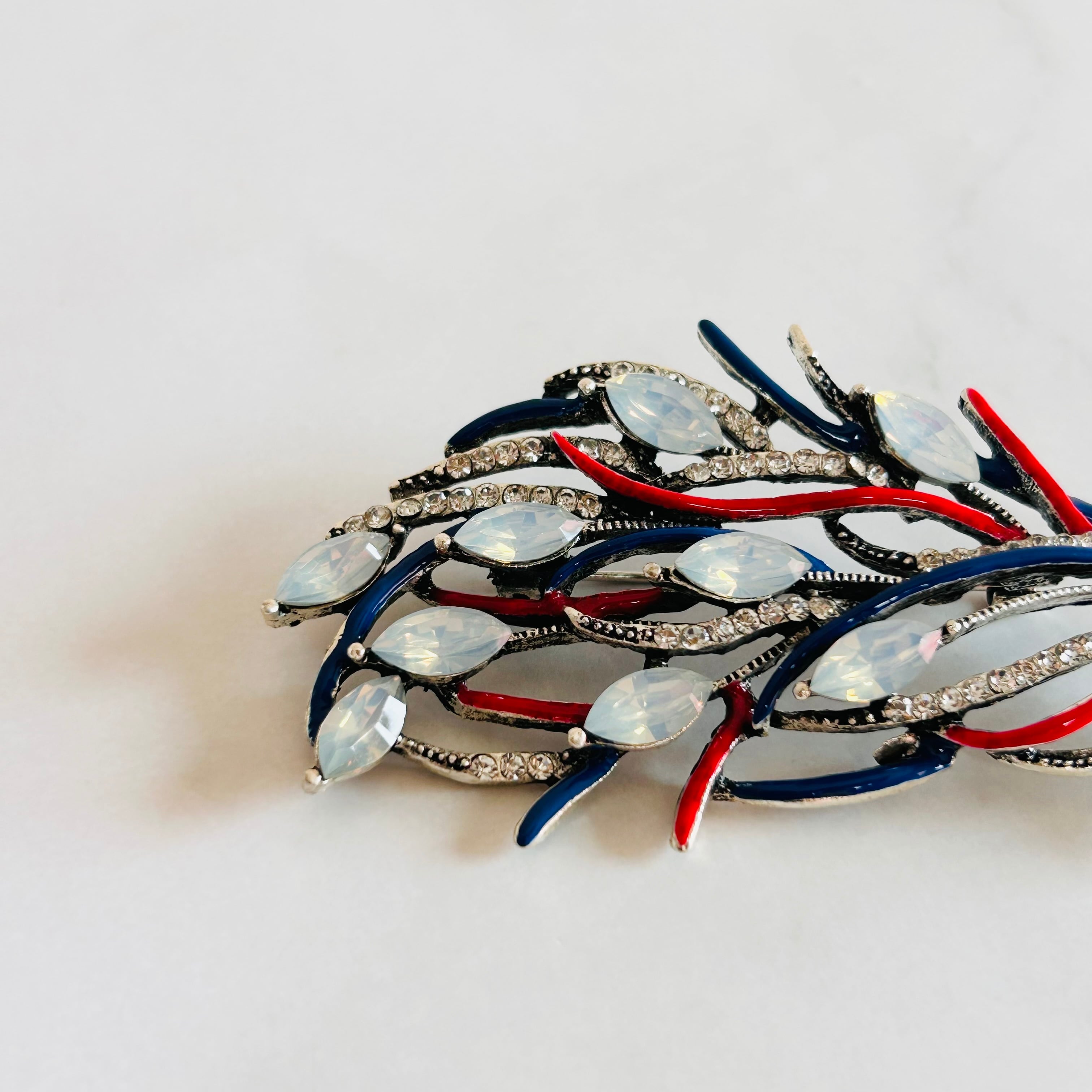 エナメル仕様のネイビーとレッドがリズミカルに重なり合い、オーロラビジューが瑞々しい輝きを添えます。