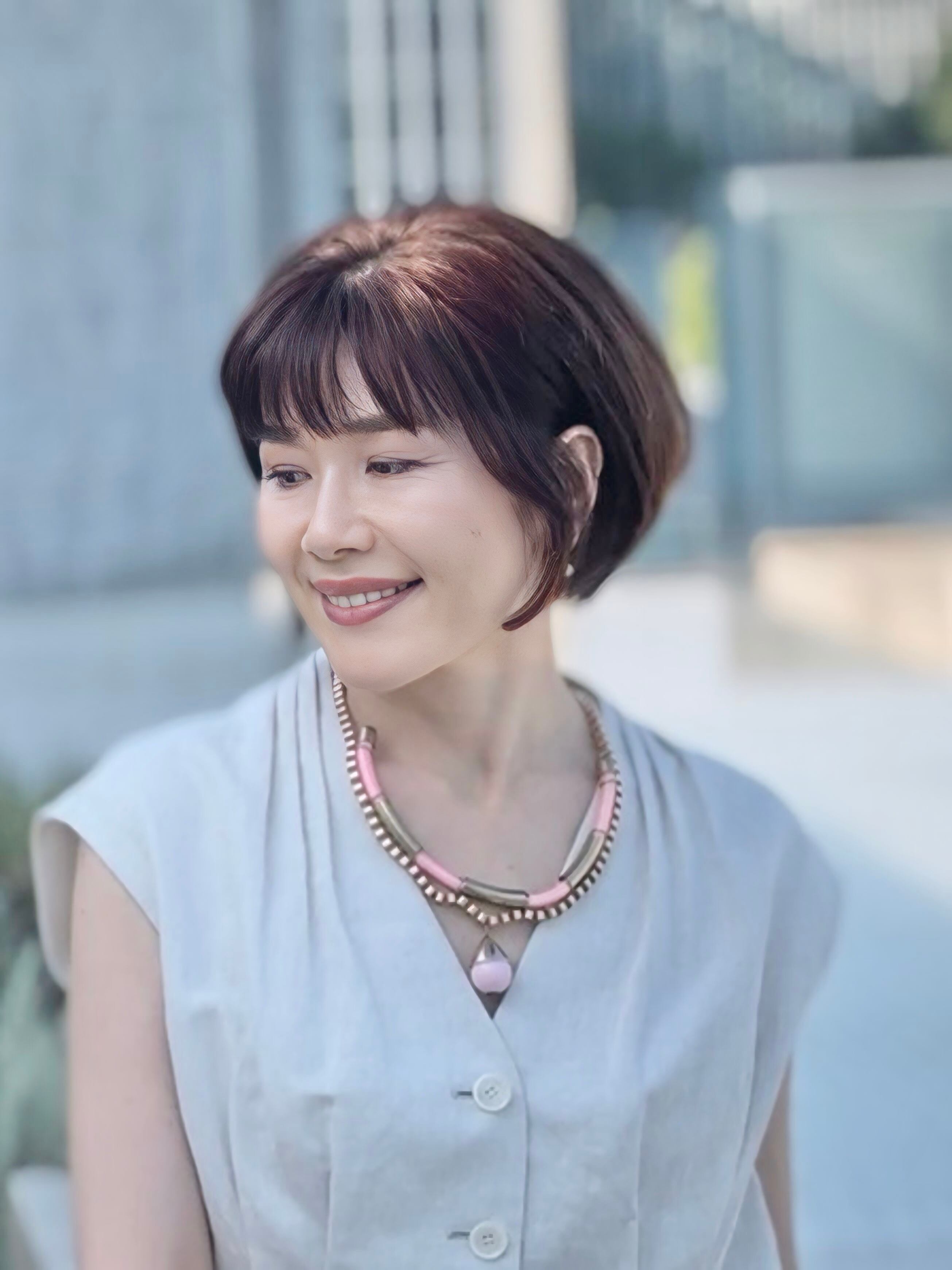 ひときわ目を引くピンクのチャームが、胸元にちょこんと揺れて、ほんのりとレトロなムードに♪