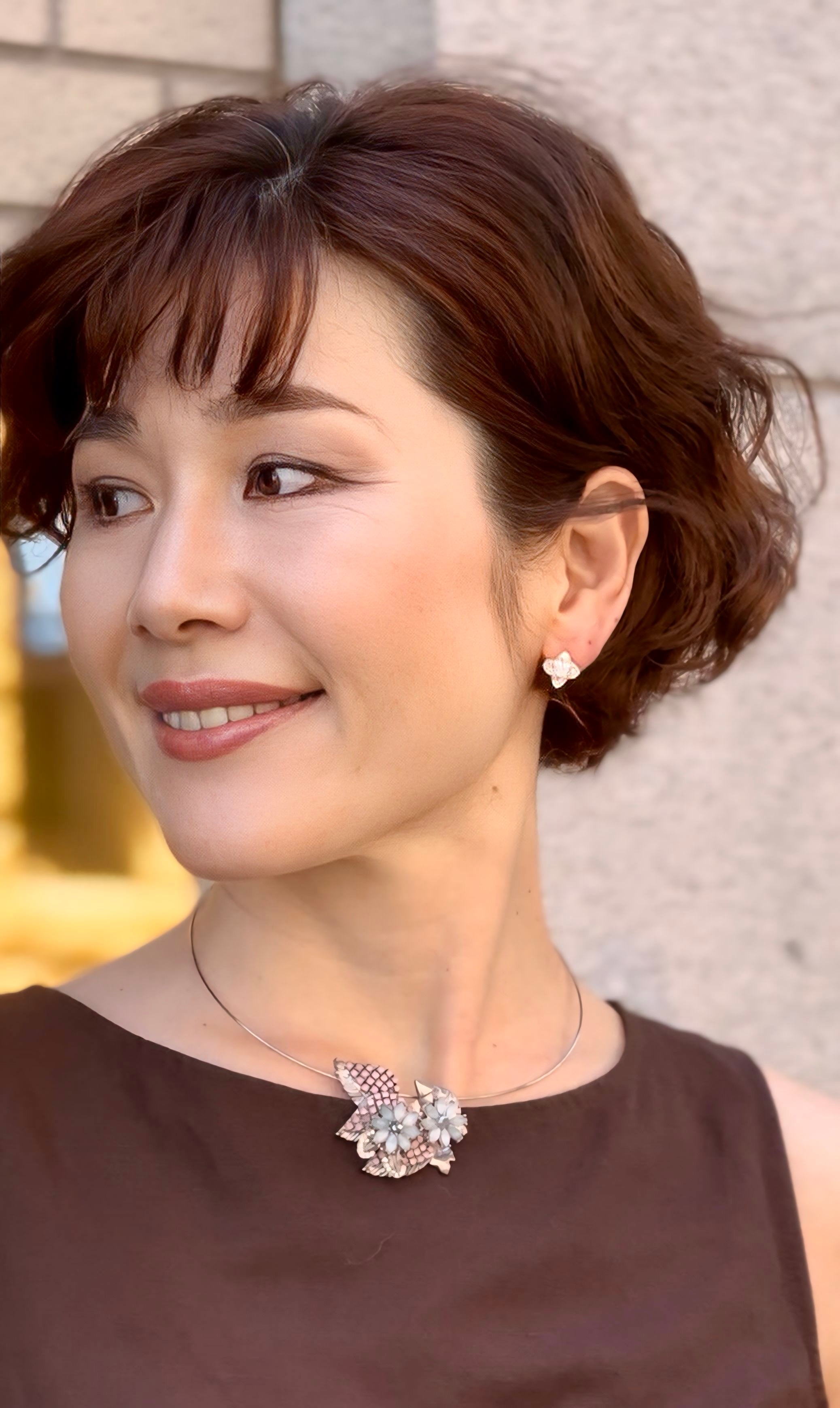 可憐さとアート性が共存する、特別な日の主役にもぴったりなネックレスです。