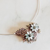 繊細なワイヤーにそっと咲いた、小さな花々と羽のようなモチーフ。