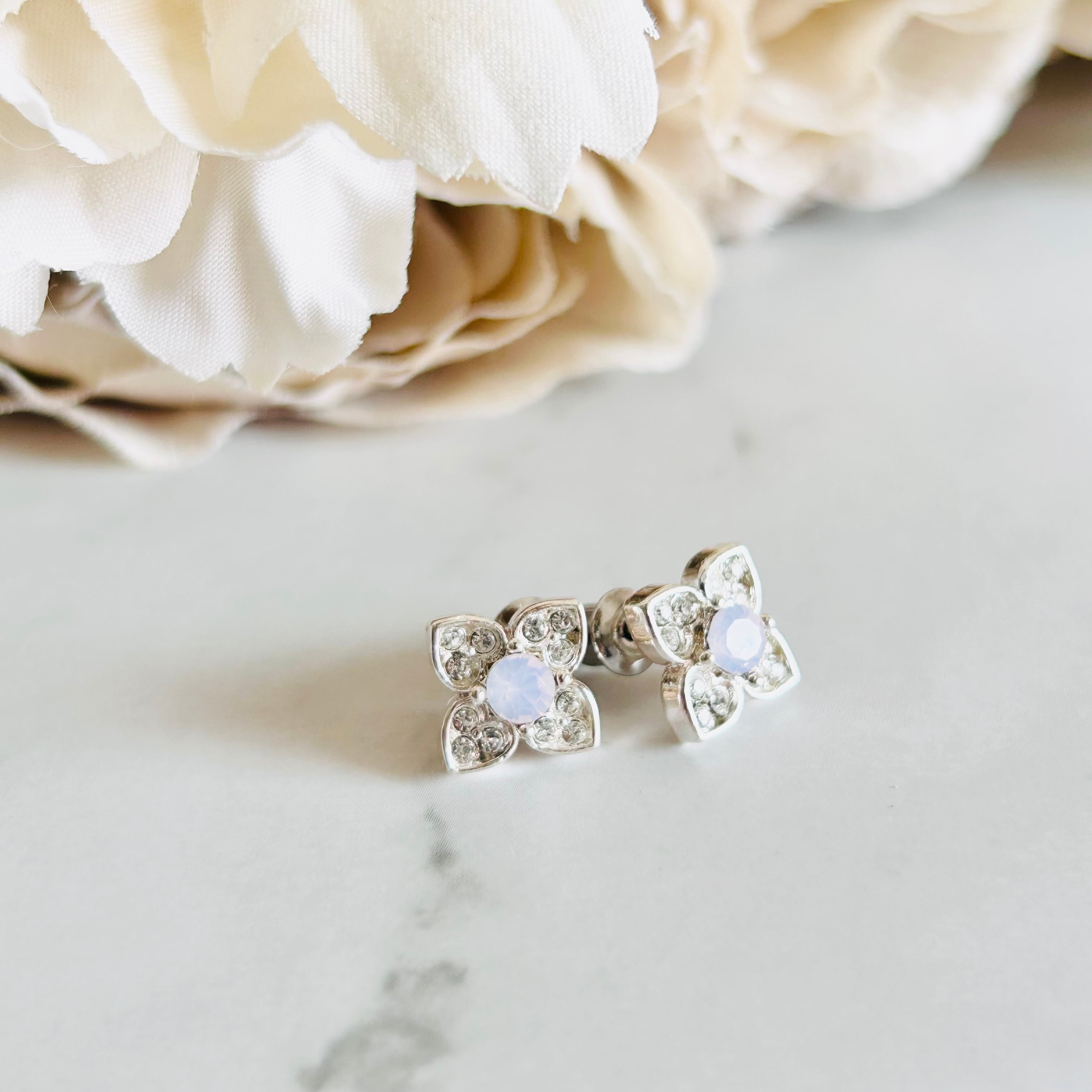 上質なスワロフスキークリスタルをあしらった、可憐なフラワーモチーフのピアスです。