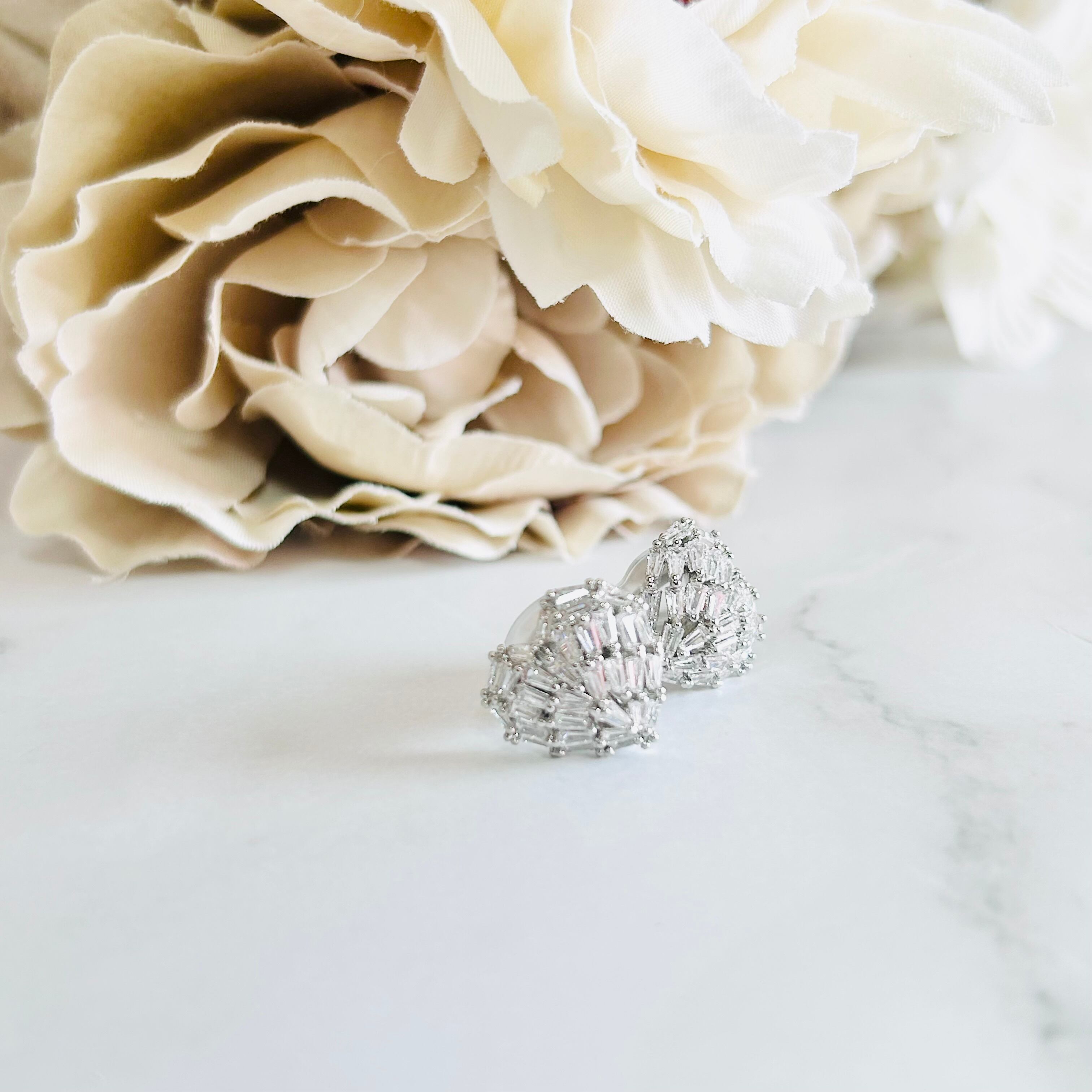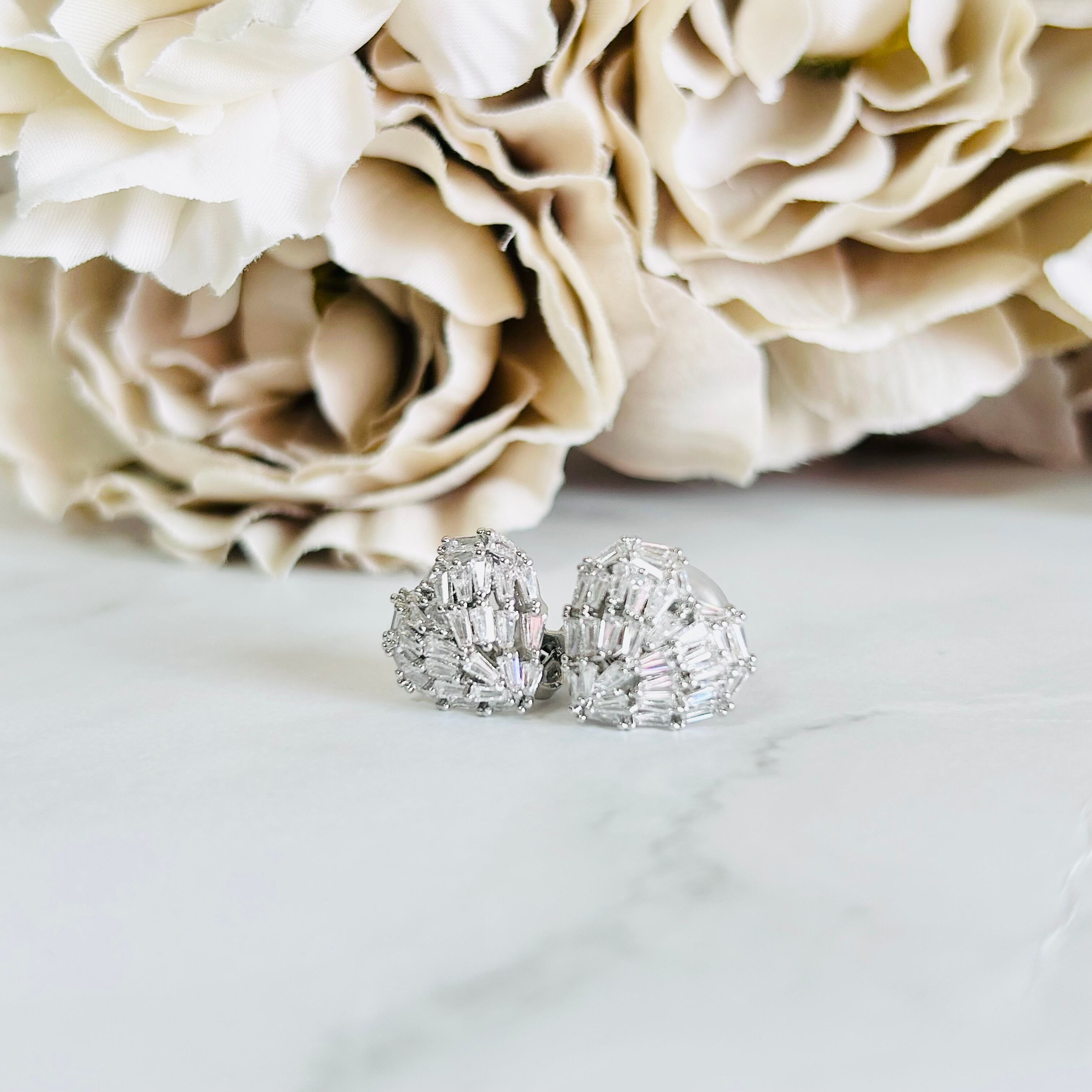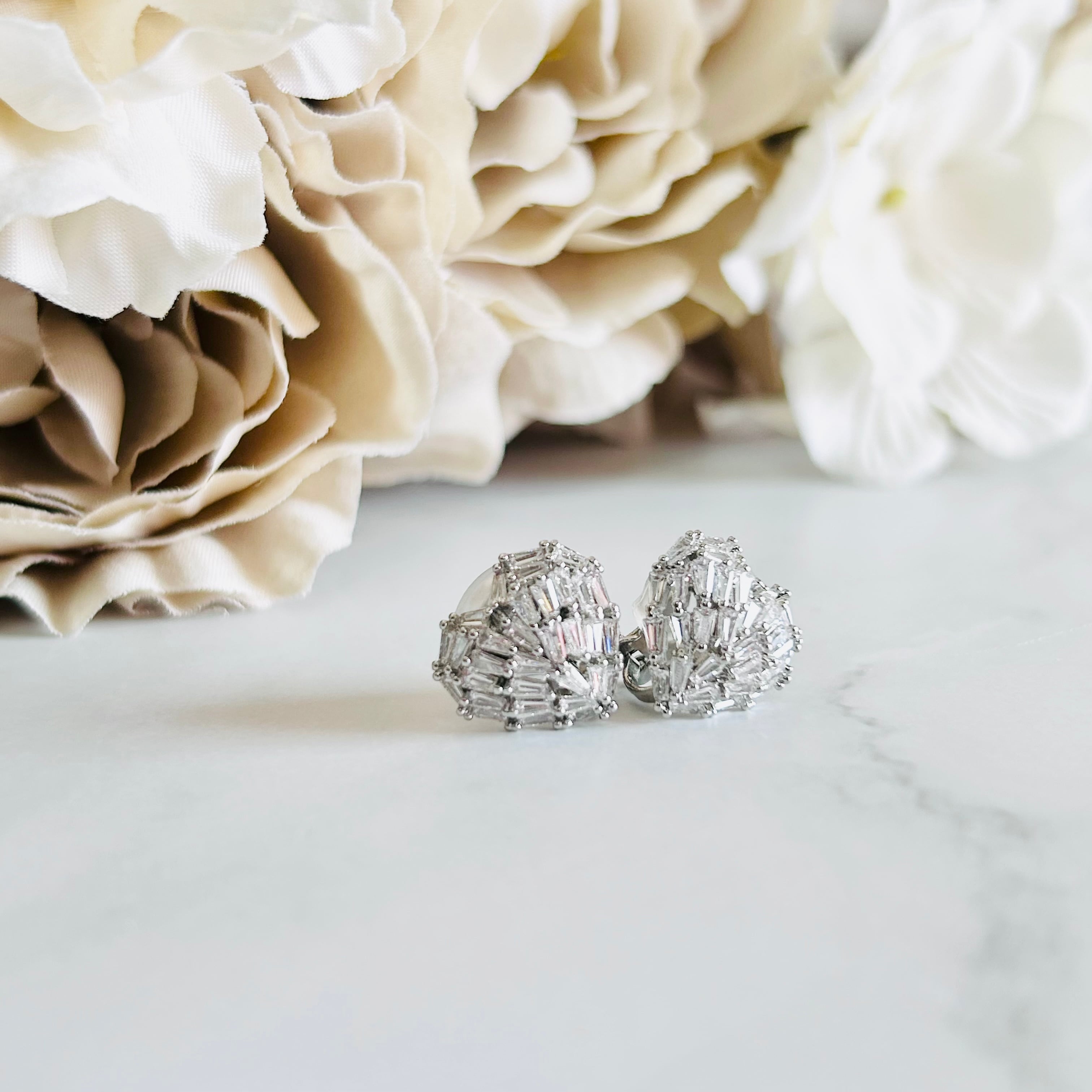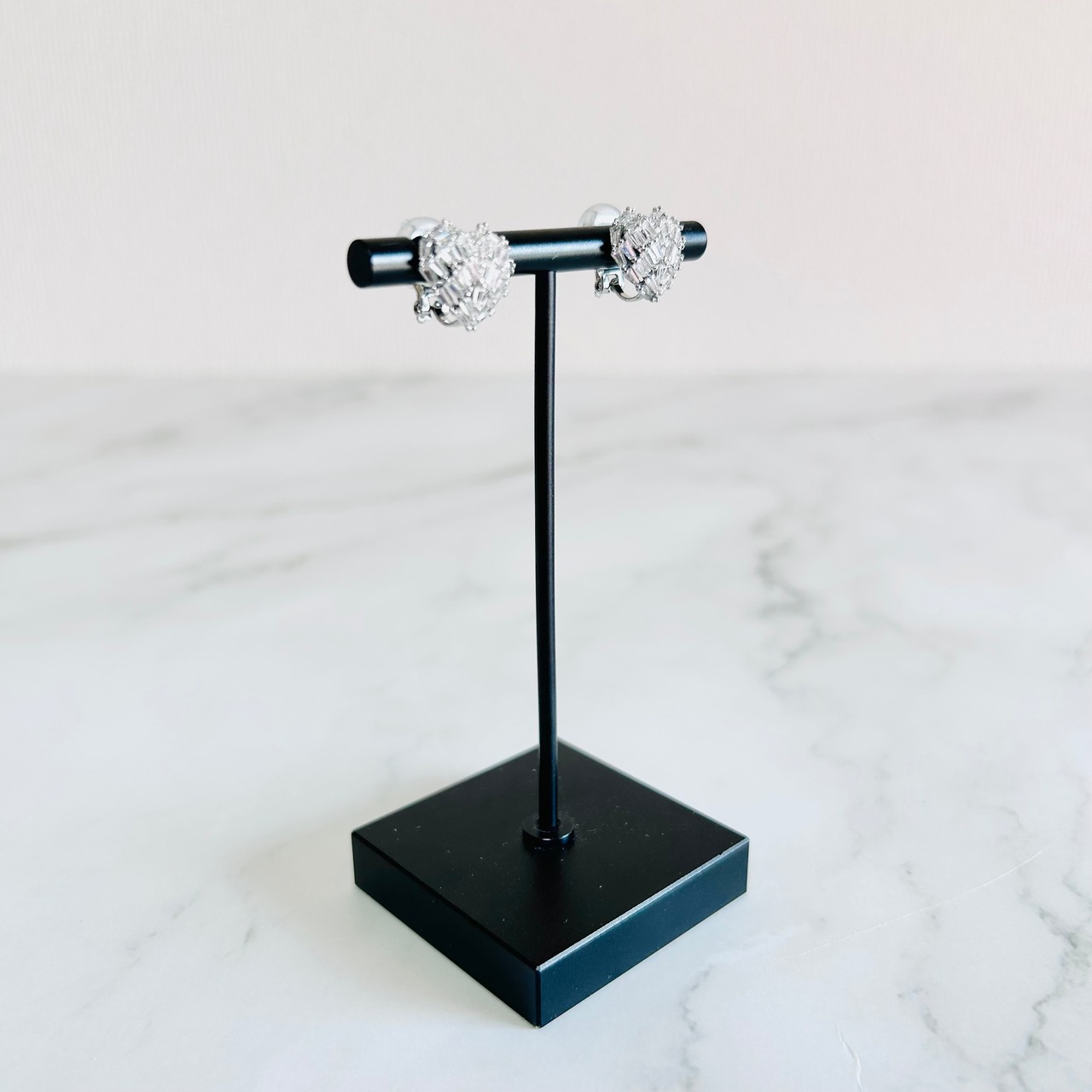 繊細なバゲットカットのキュービックジルコニアを贅沢にあしらった、ラグジュアリーなイヤリングです。