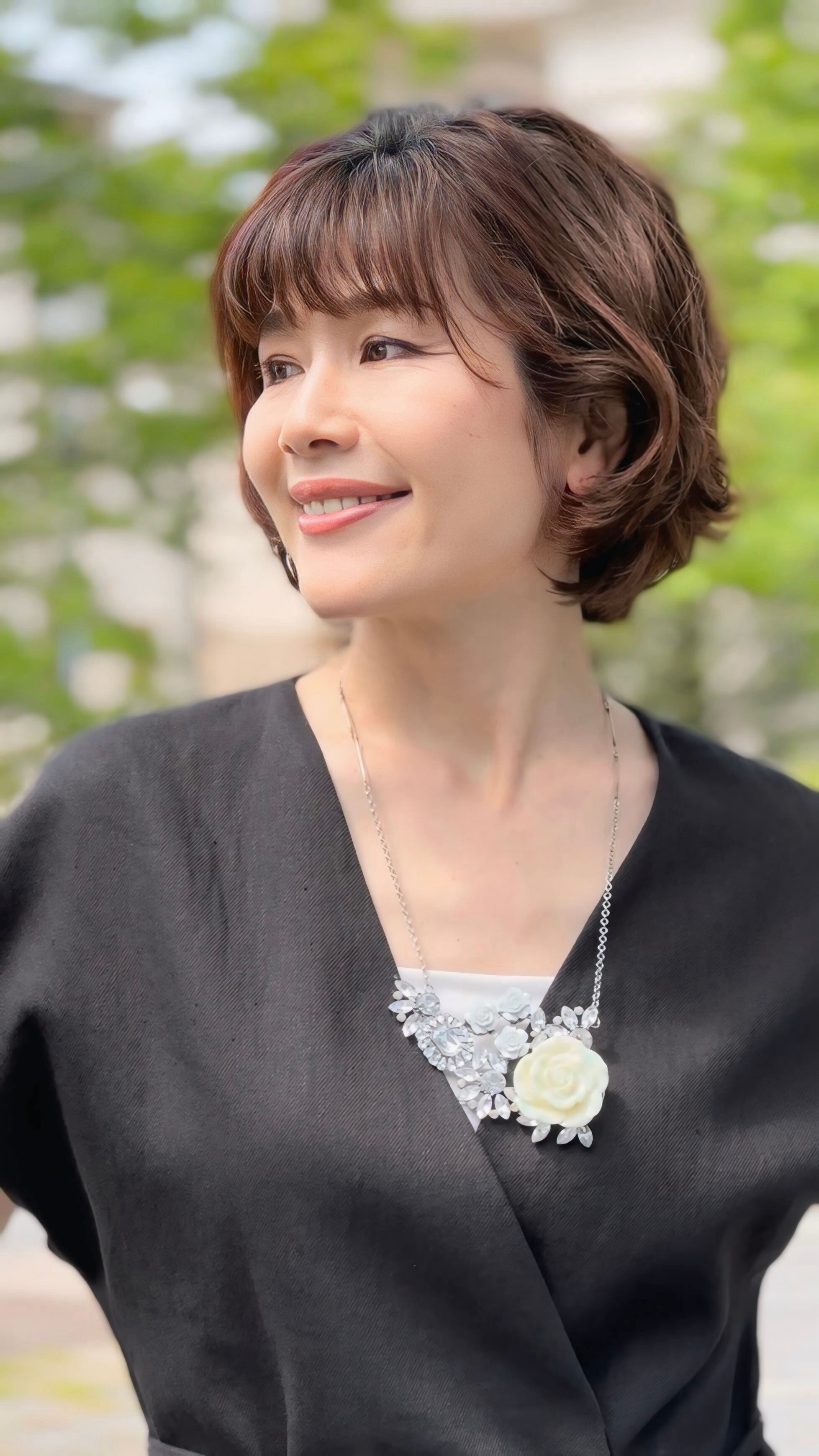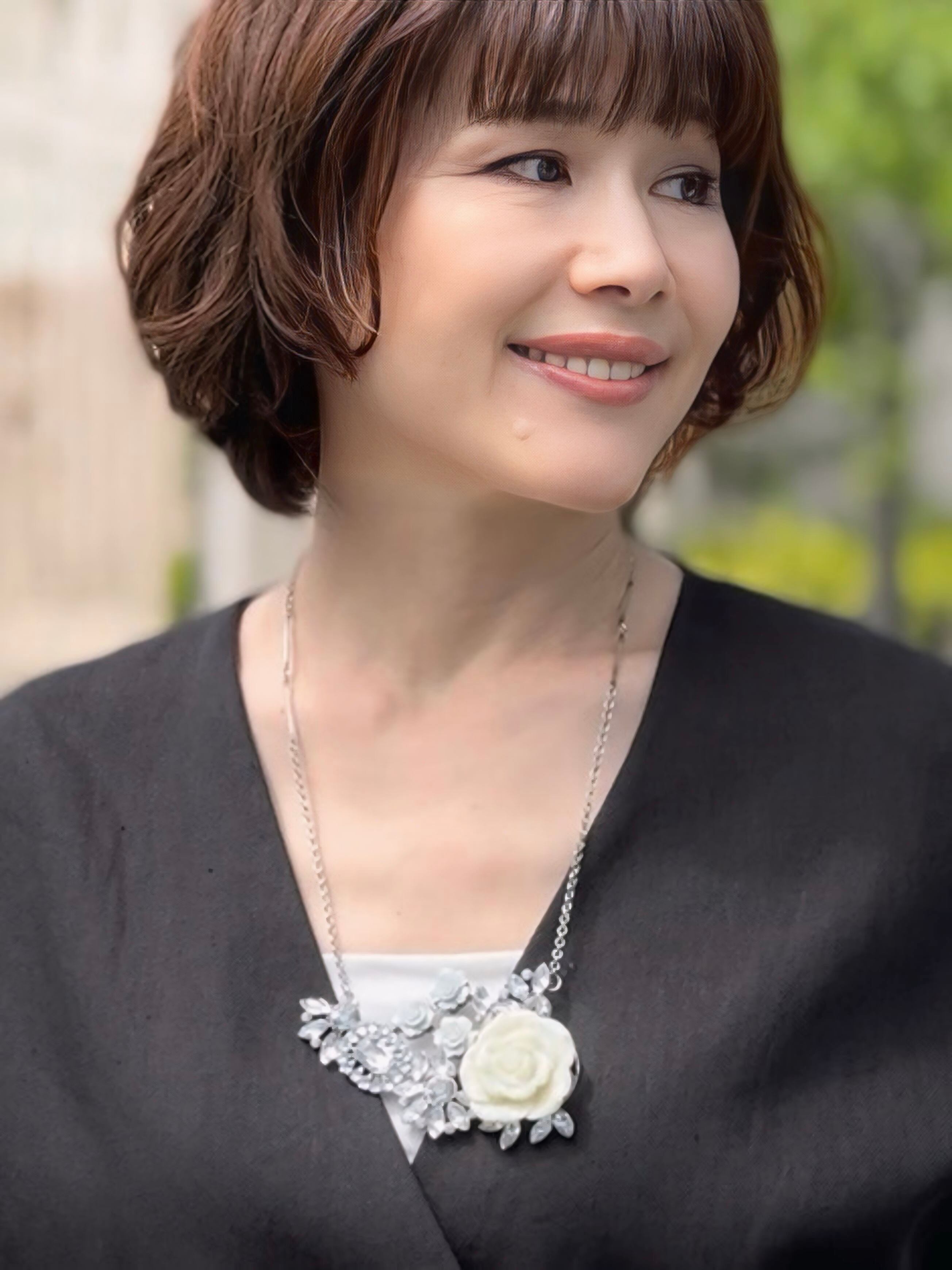 繊細な花びらの質感と、クリアな輝きが絶妙に重なり合い、胸元にやさしい存在感をもたらします。