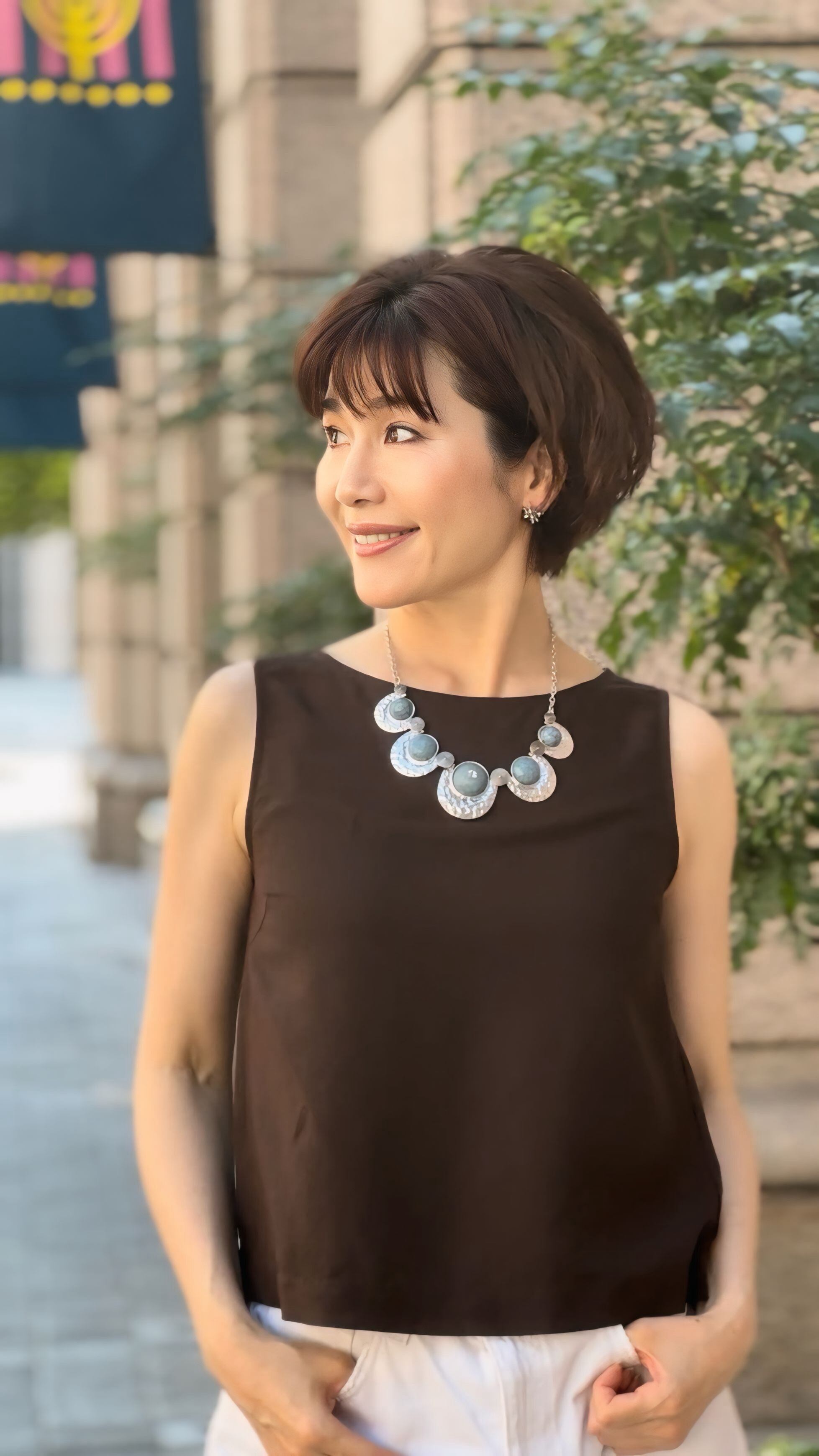お顔まわりに華やかさと力強さを添えてくれる、印象派ネックレスです。