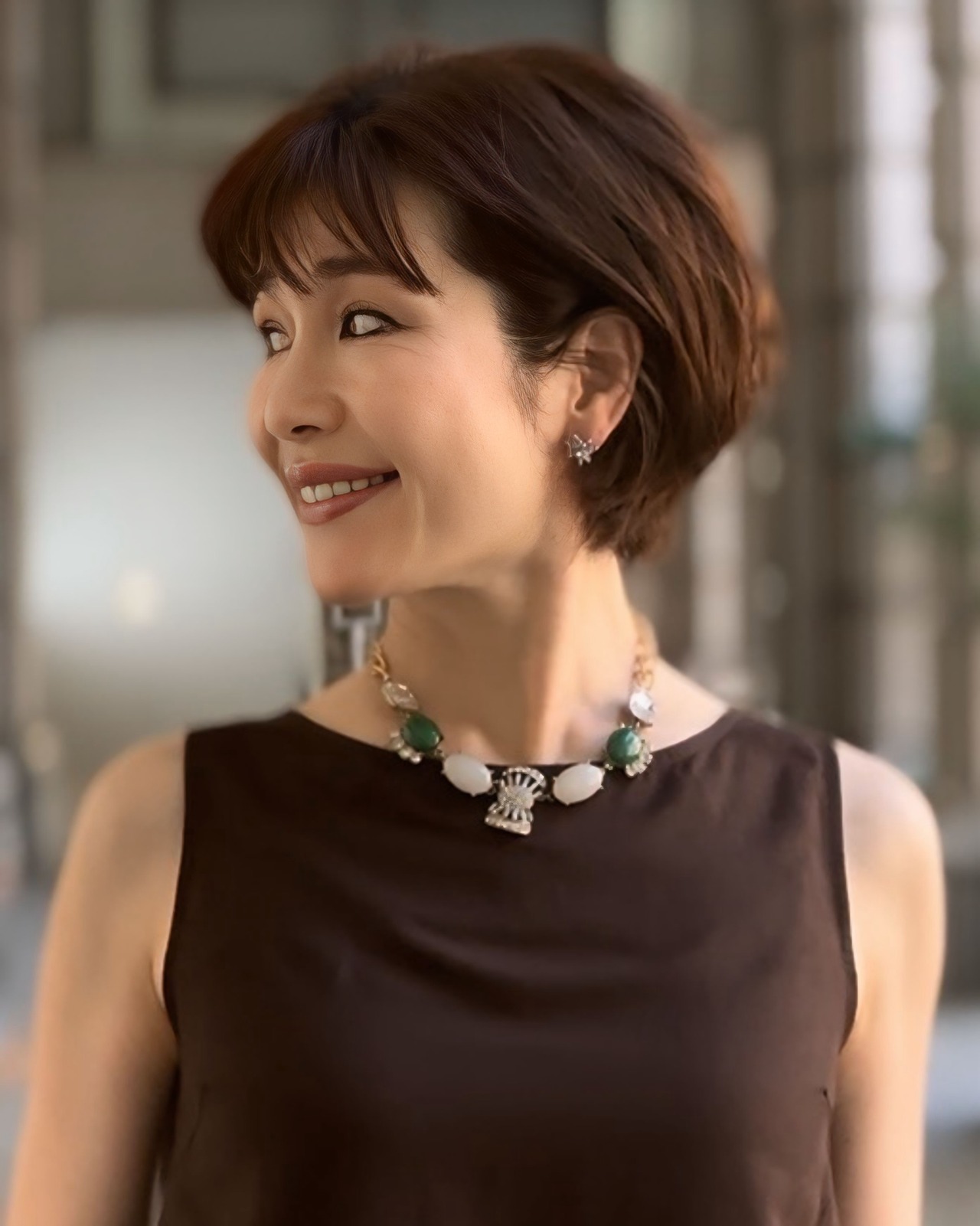 ゴールドチェーンにはあえてマットな質感を持たせ、全体の印象をモダンに引き締めています。