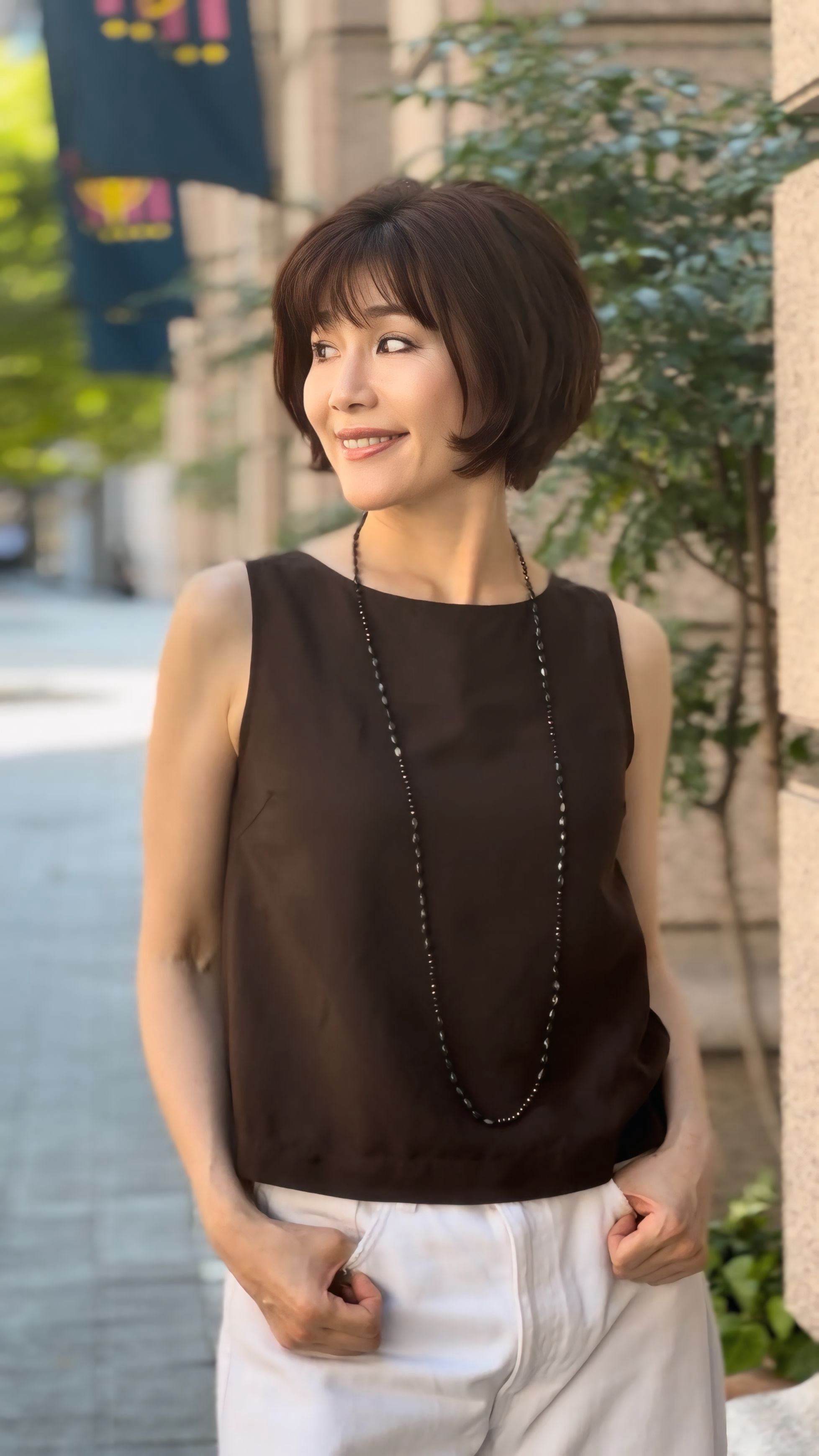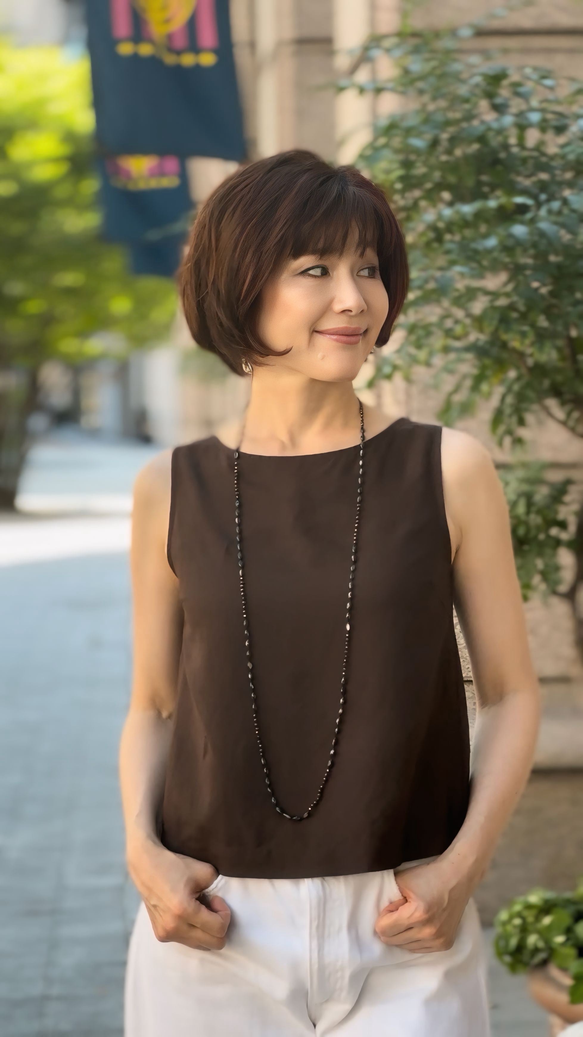 夏のリネン素材に合わせても涼やかで、秋冬のニットに添えてもシックに決まります☆