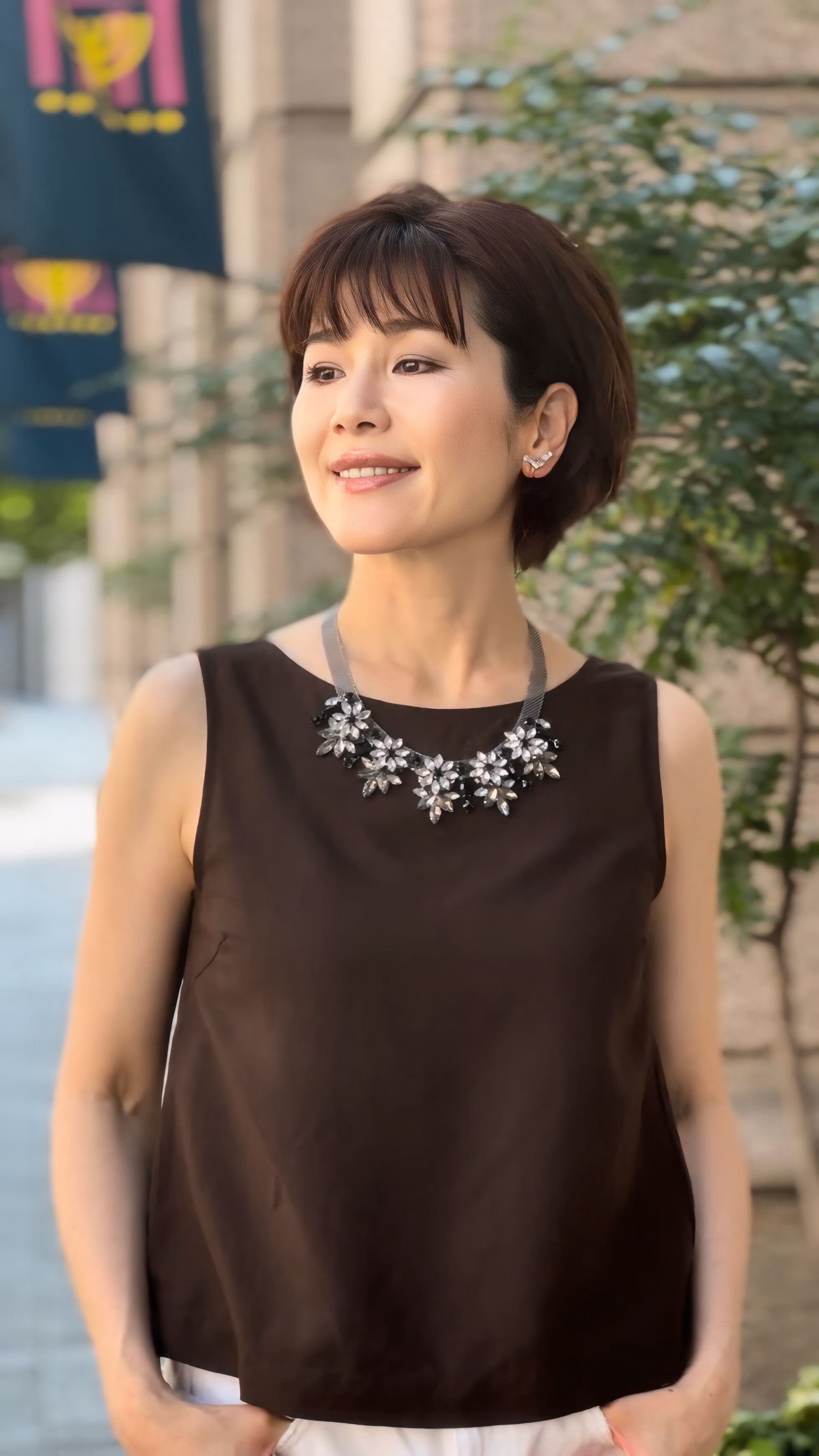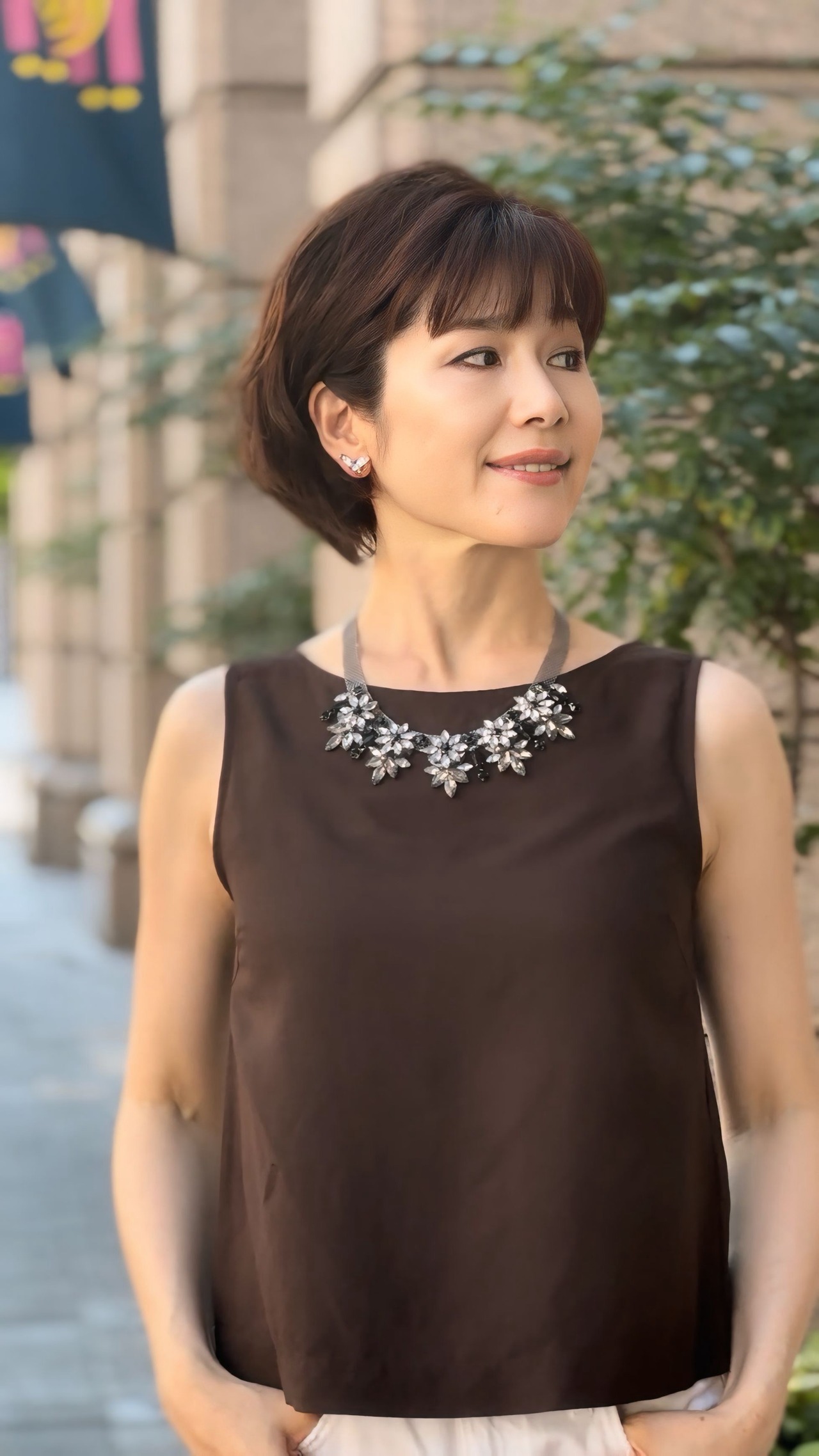 輝きと立体感のバランスが絶妙で、顔まわりに華やかな存在感を添えてくれるネックレスです。
