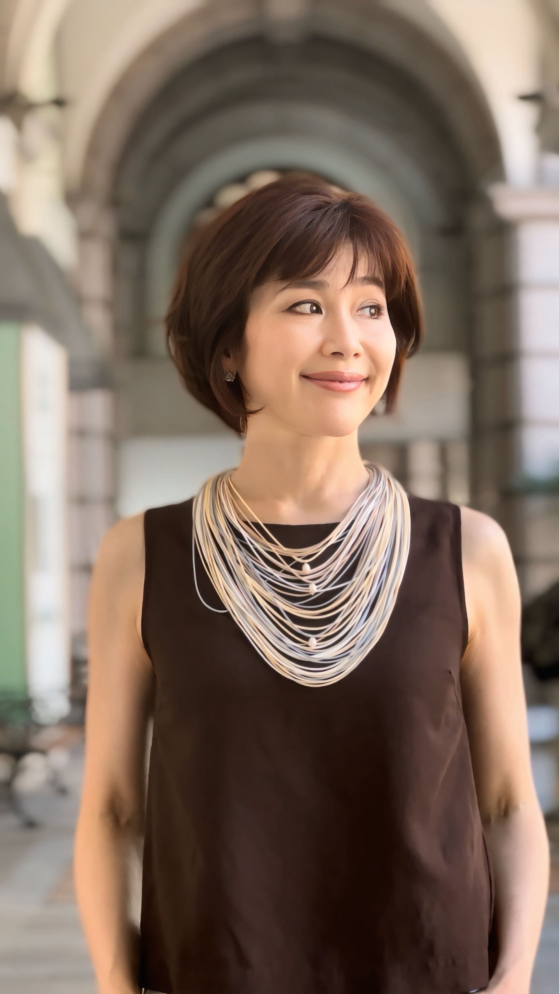 首元に軽やかな彩りとリズムを添えてくれる、夏にぴったりのネックレスです。