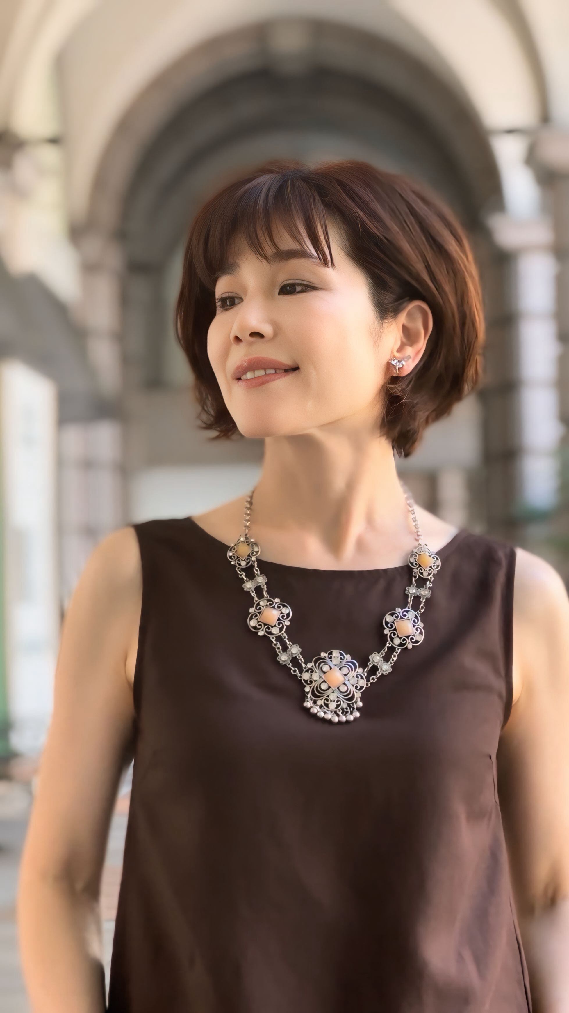 ノスタルジックな優しさを胸元に添える、大人のためのヴィンテージ風ネックレスです。