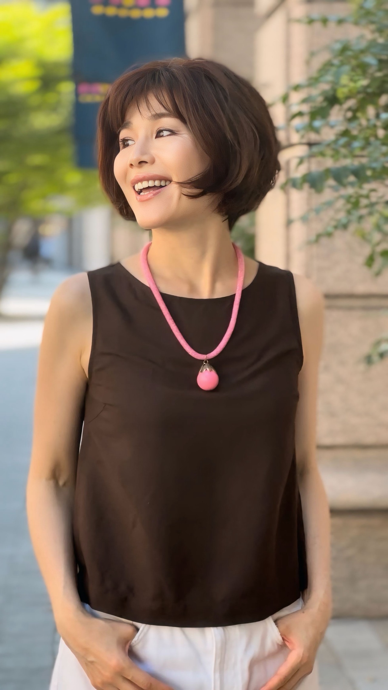 または、ピンク系のリップや小物とリンクさせて、コーデ全体にリズムをつけるのもおすすめです♪