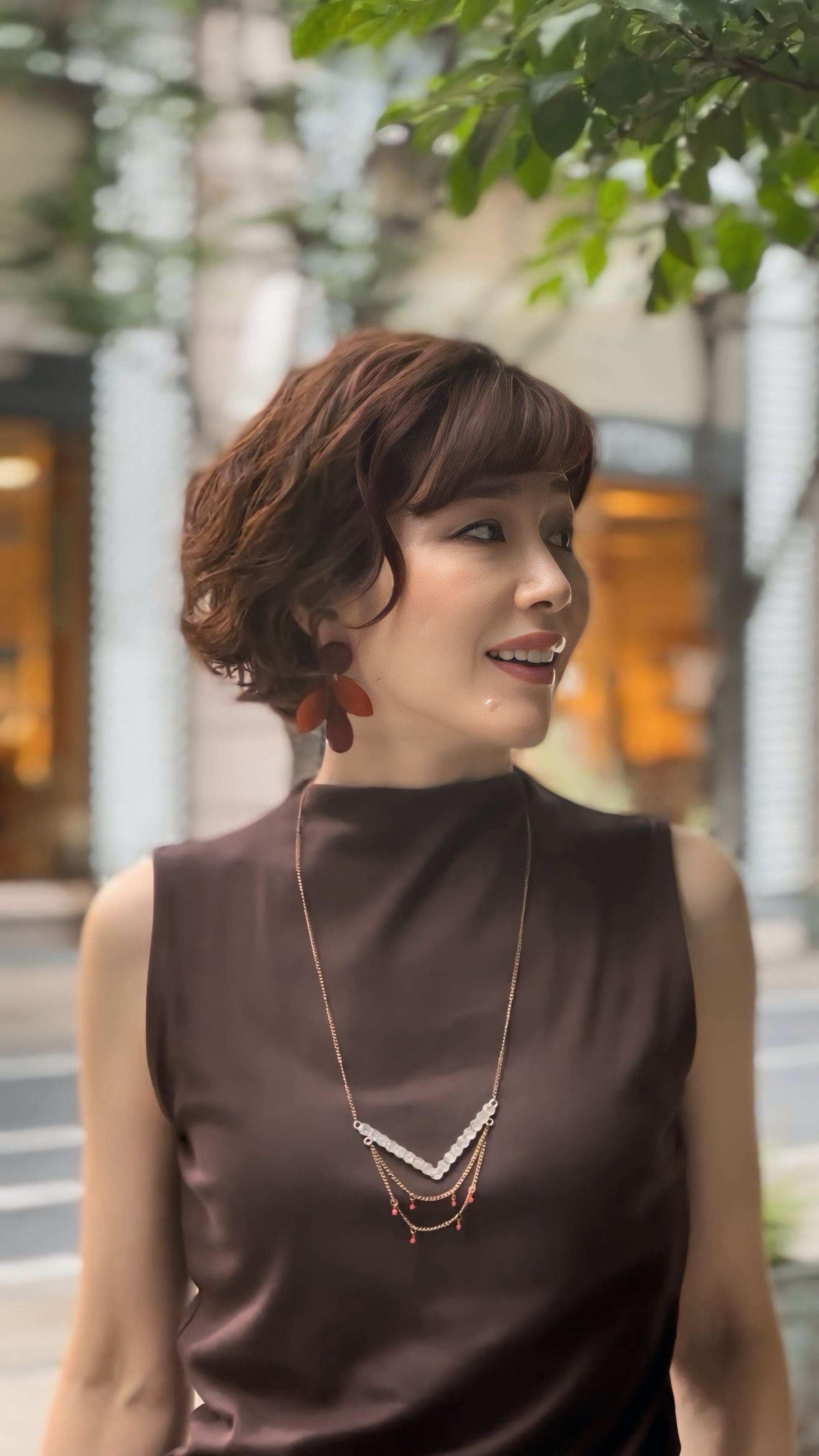 シンプルなニットやワンピースに合わせれば、お顔まわりがパッと華やぎ、大人の余裕を感じさせるスタイルに☆