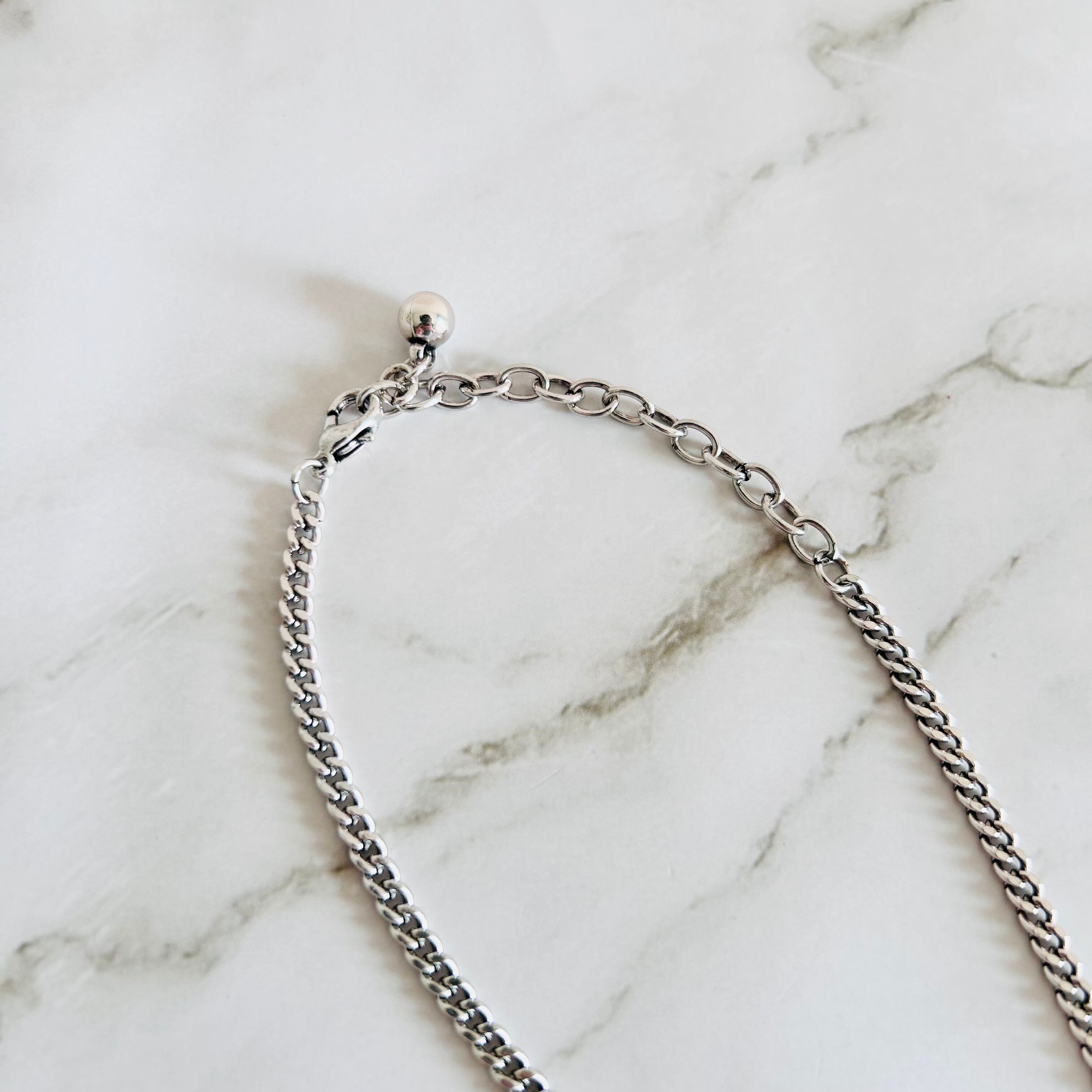 シルバーカラーのメタルパーツとチャンキーチェーンが、全体をモダンでスタイリッシュな印象に☆