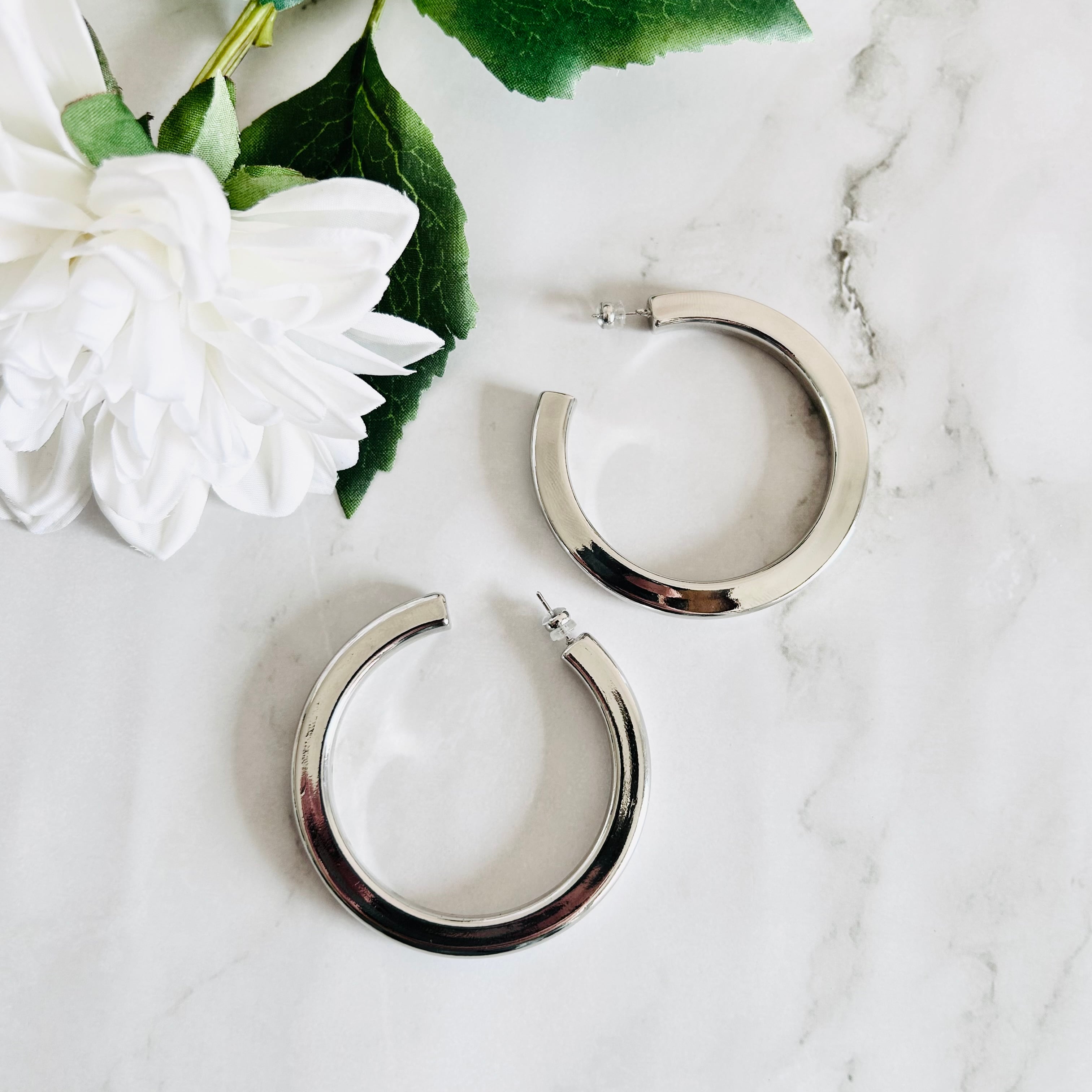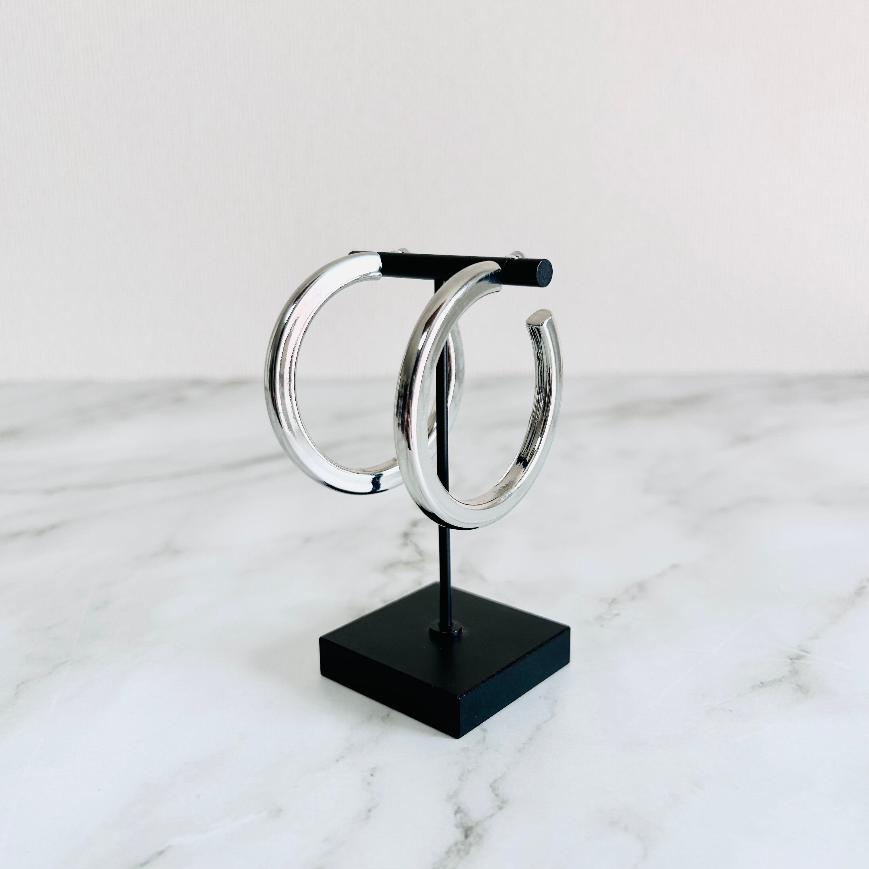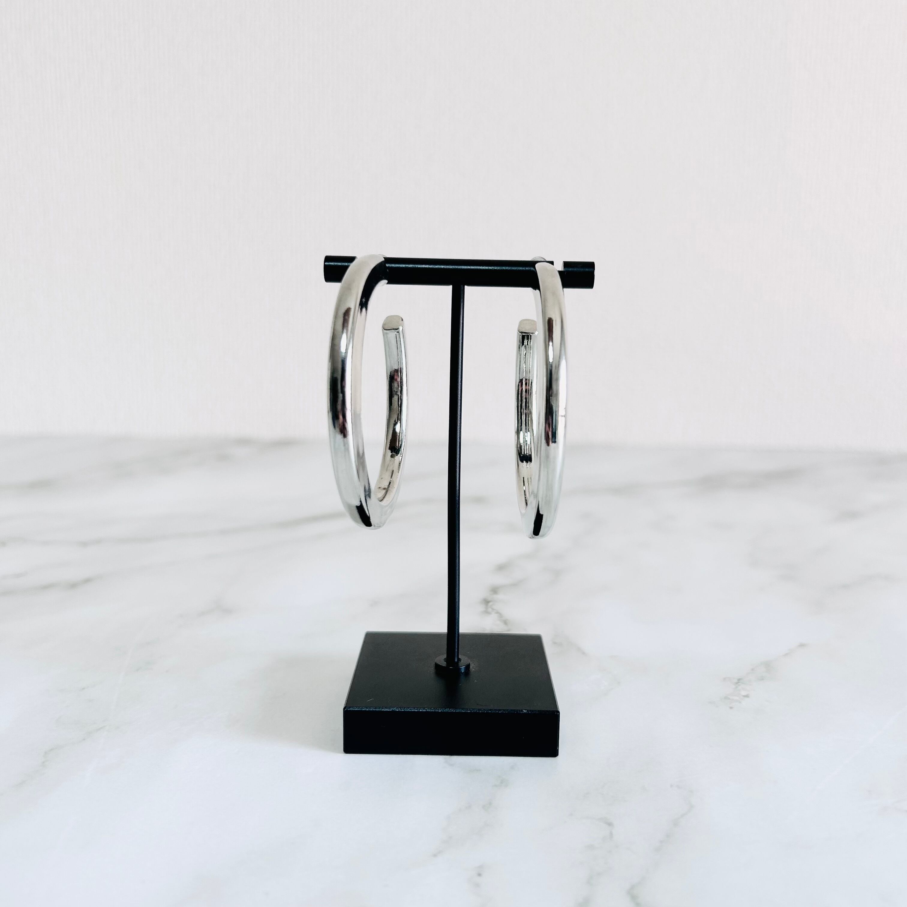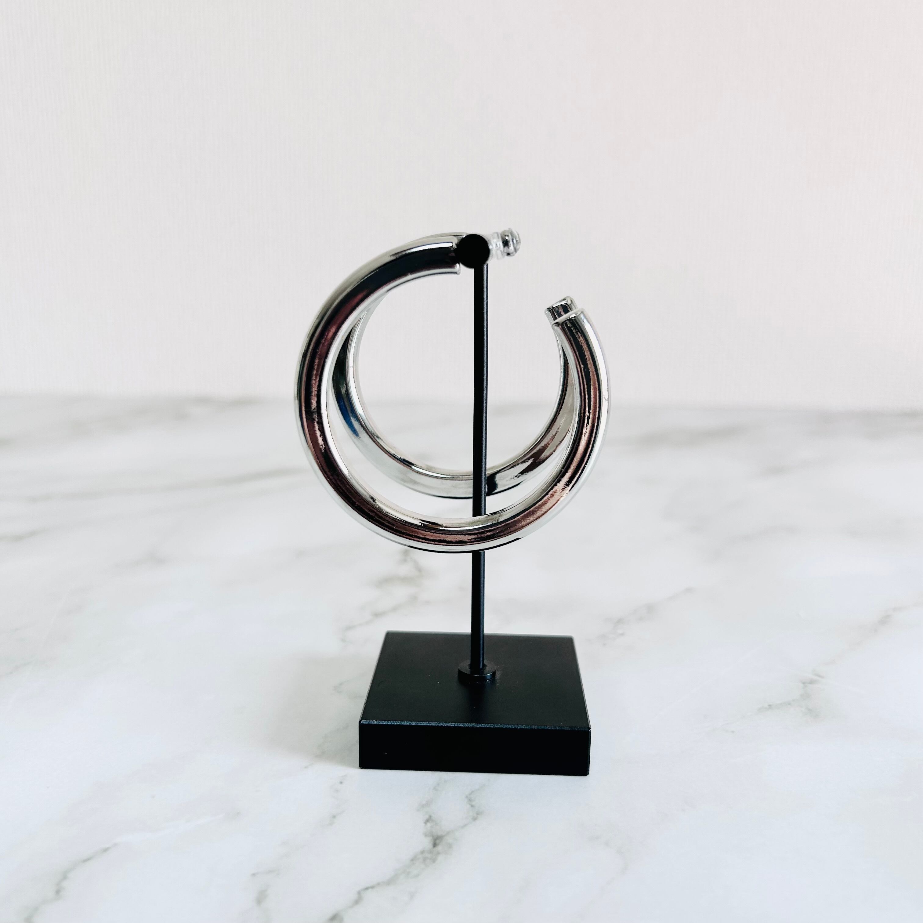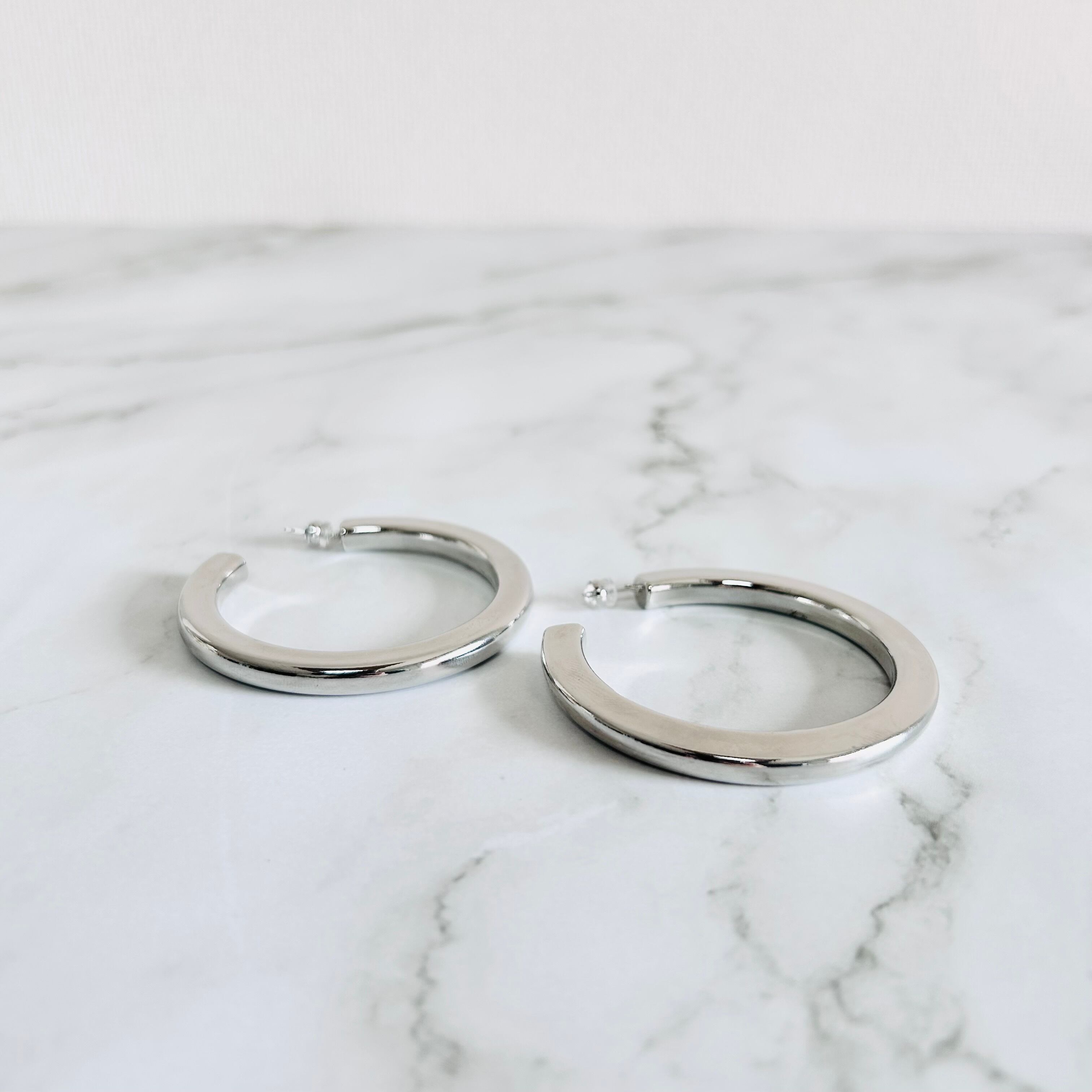 艶やかなシルバーカラーが美しい、ボリューム感のあるフープピアスです。