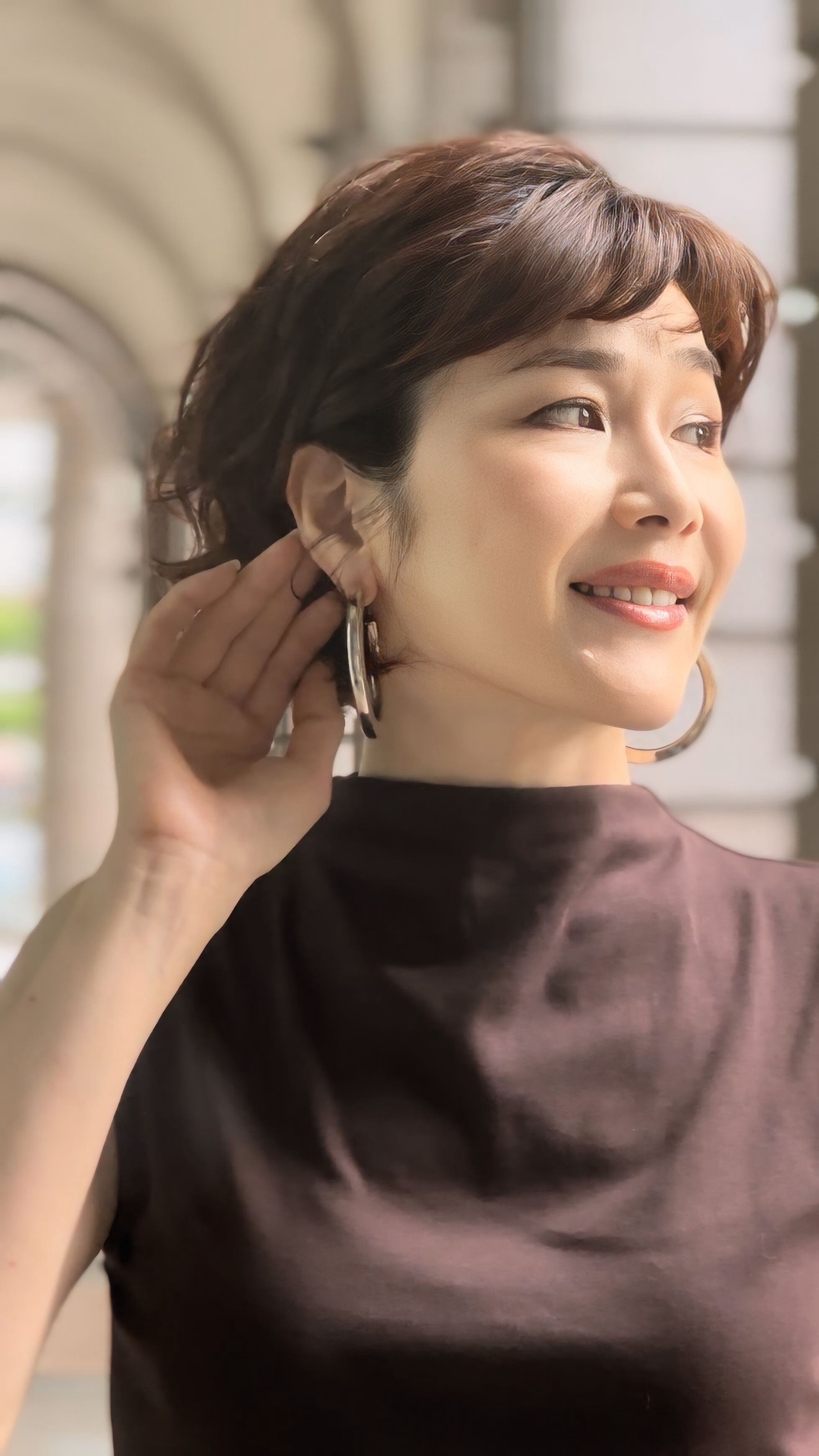 シャツやジャケットのクールなスタイルには洗練を、ワンピースやニットには大人の華やぎをプラス。