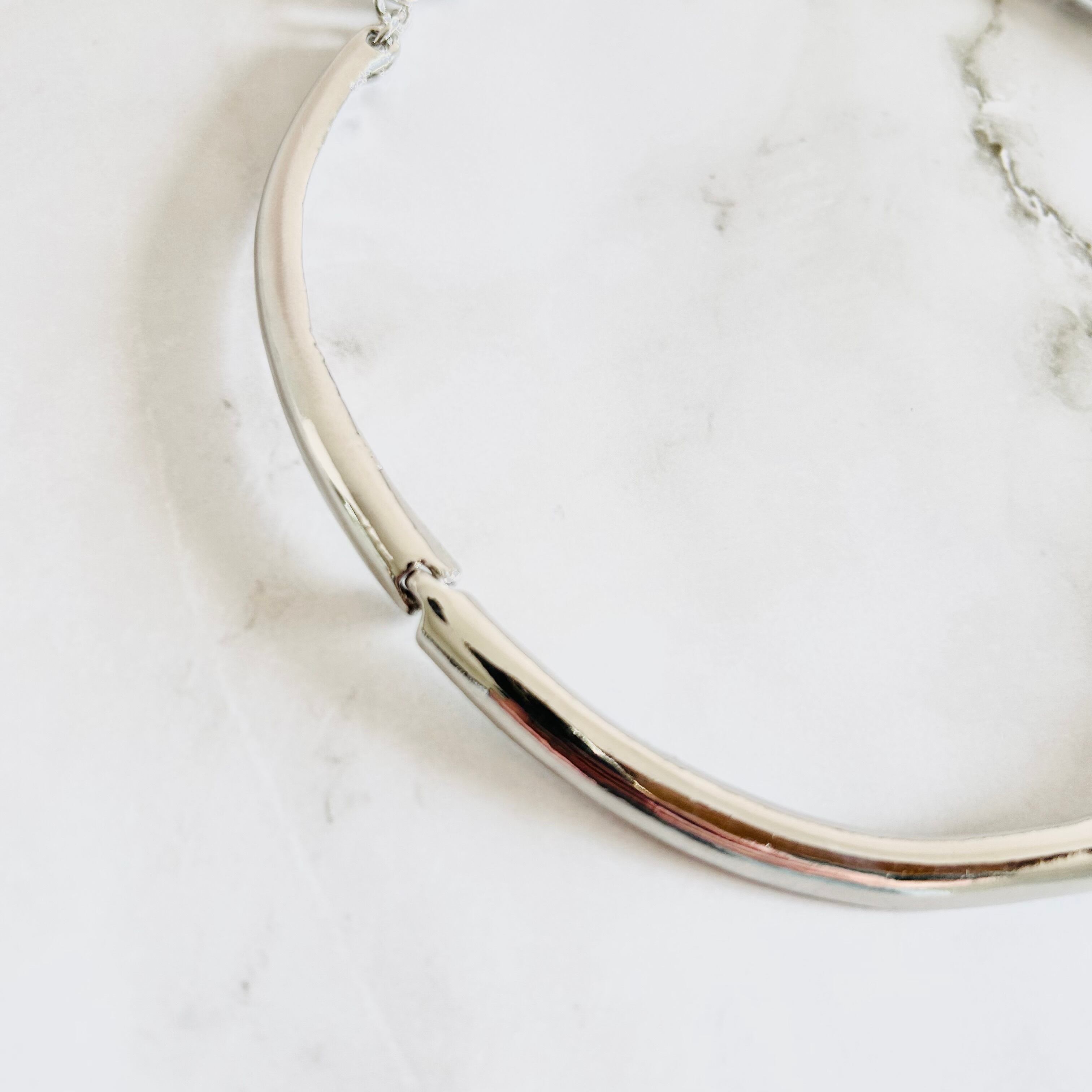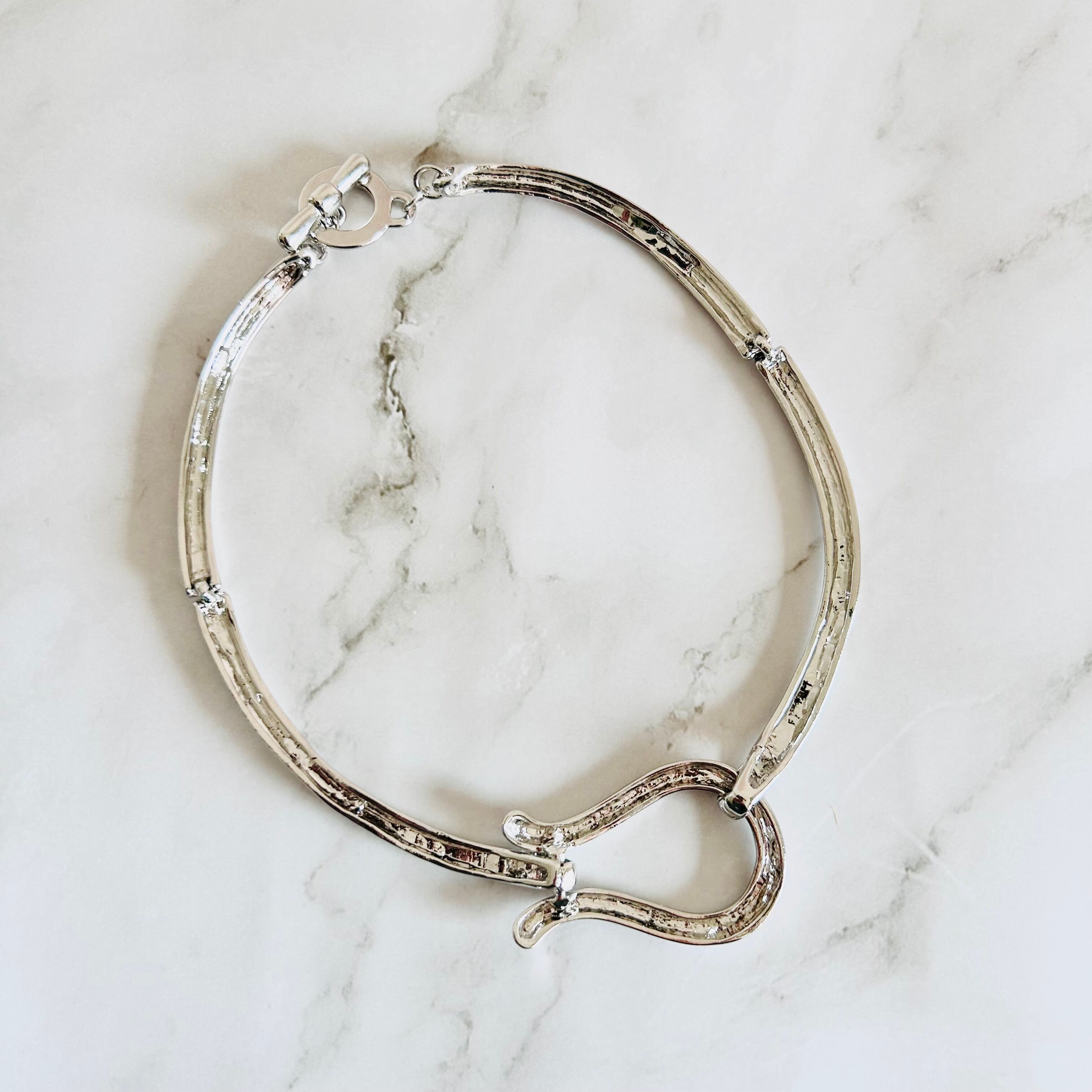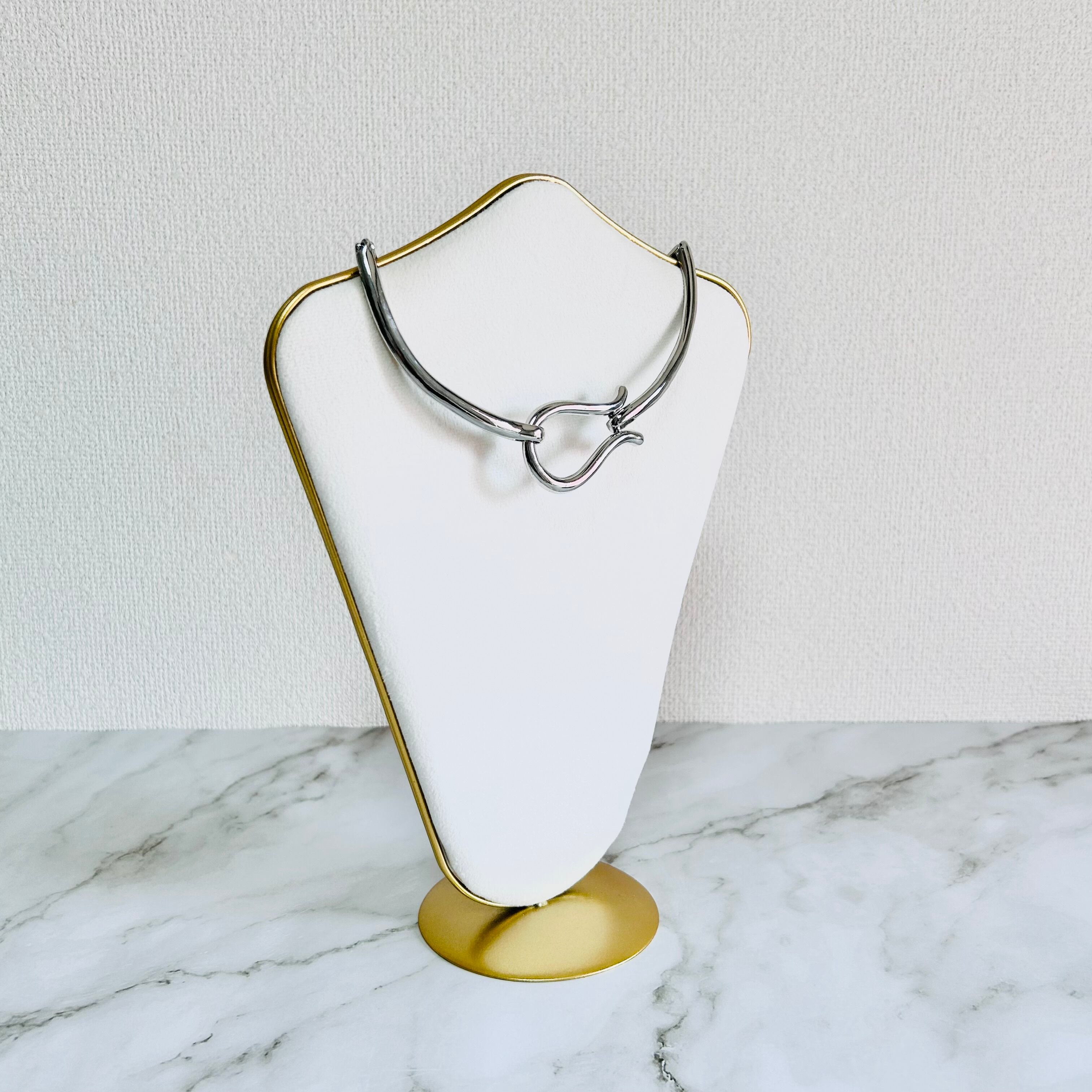 滑らかな曲線美とモードな存在感が際立つ、シルバーカラーのチョーカーネックレスです。