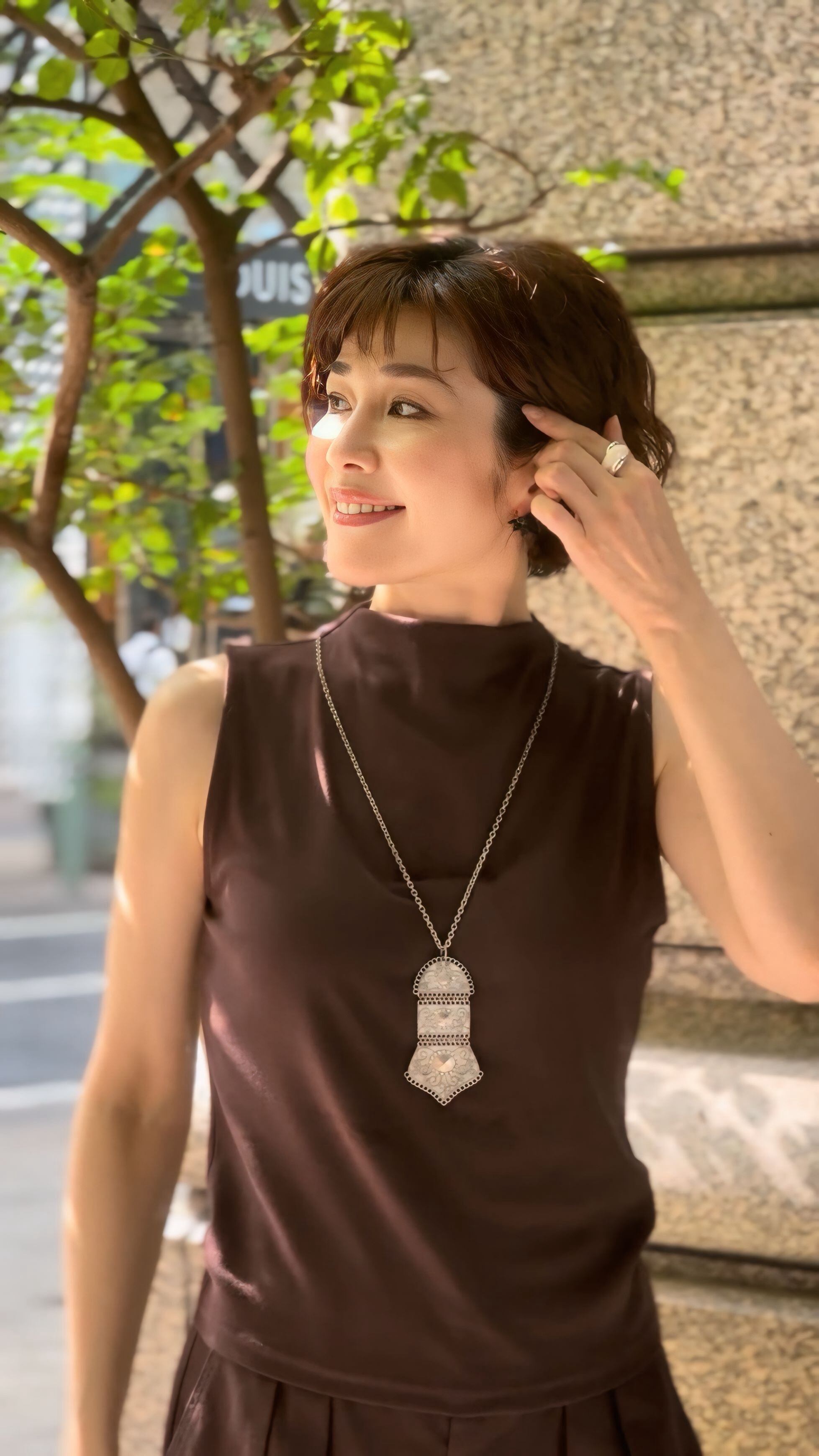 アートのような雰囲気を持ちながら、日常のコーデにも取り入れやすいネックレスです。