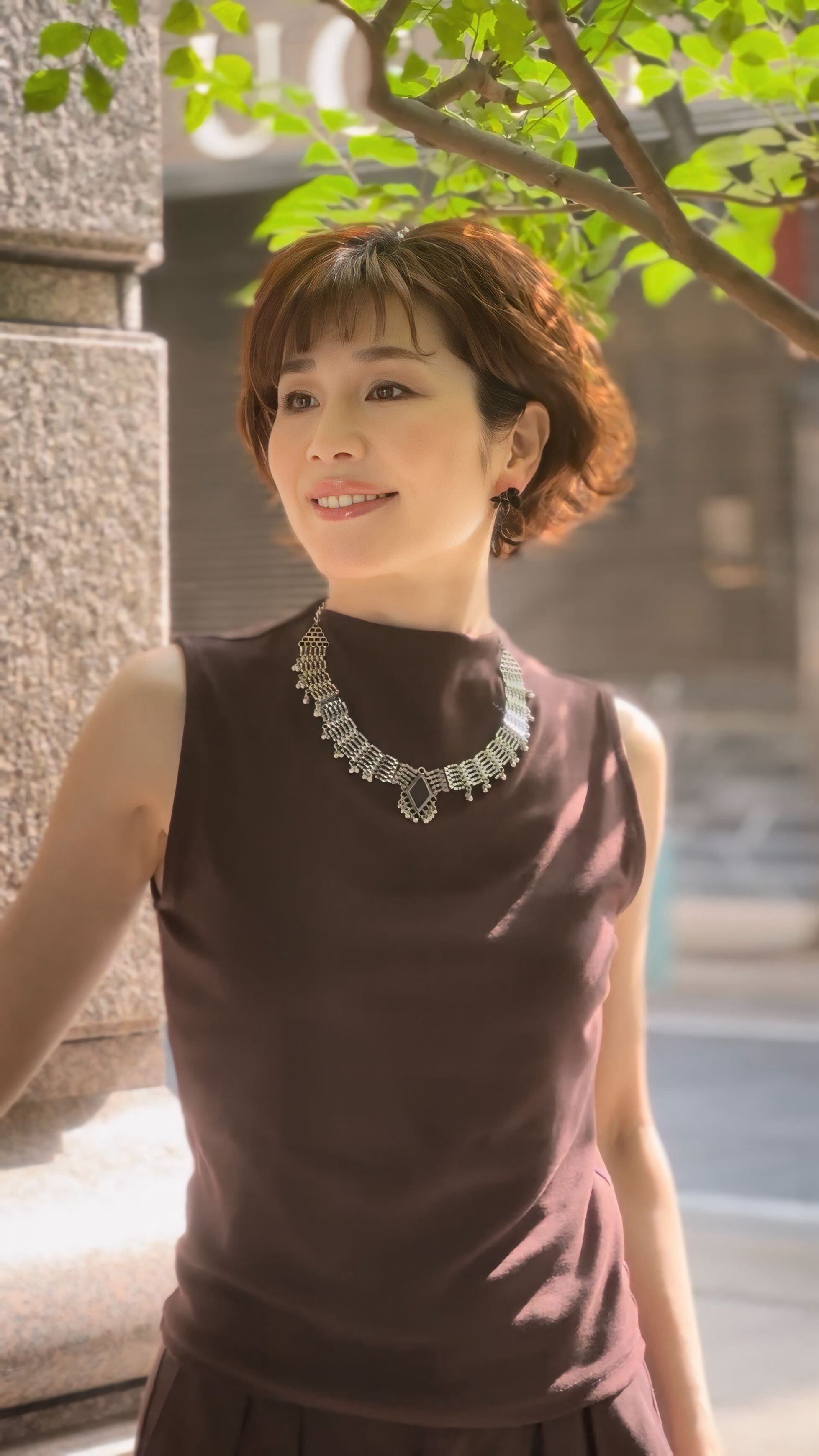 ハイネックの首元に重ねれば、洗練された印象に仕上がります♡