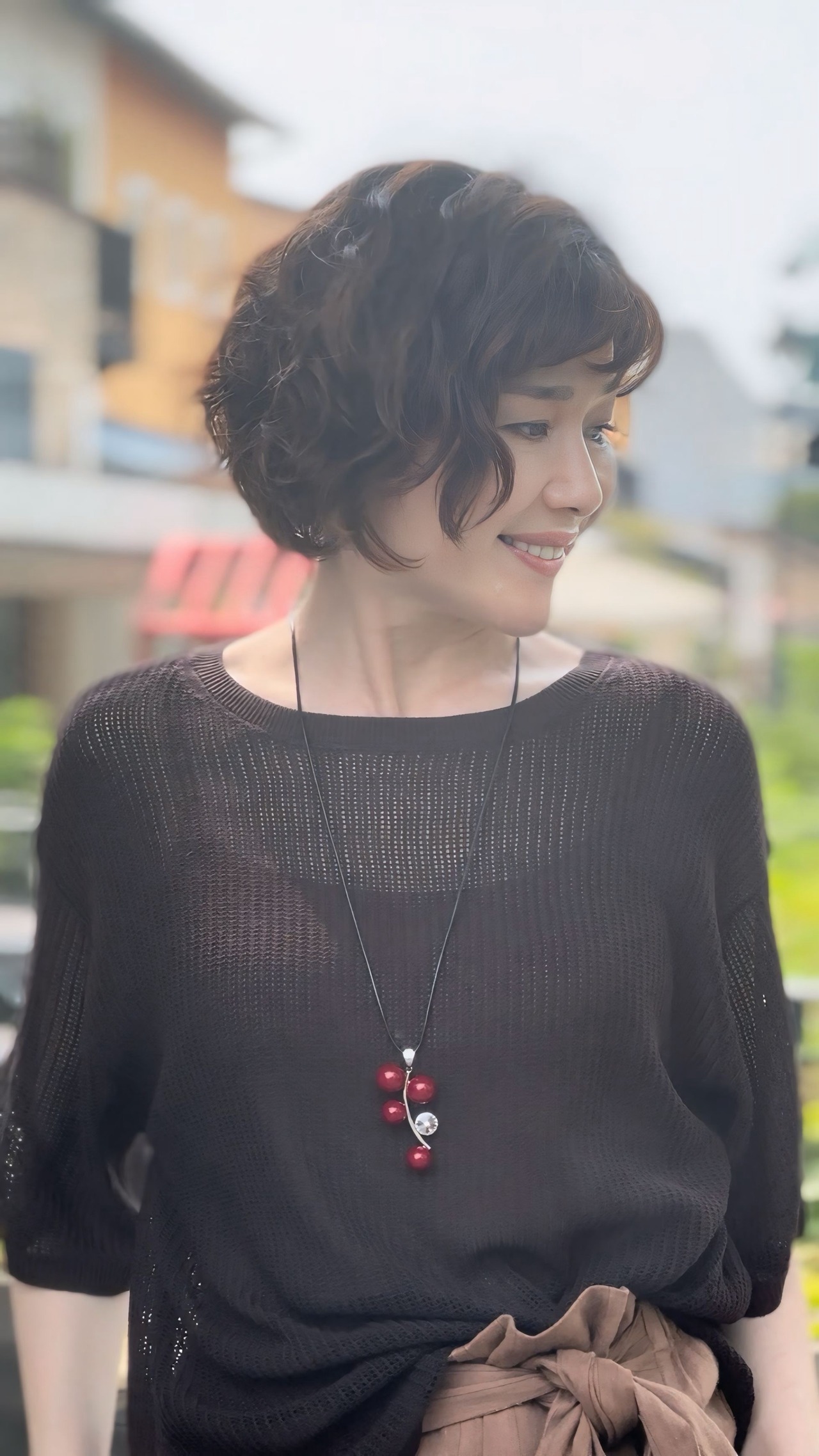動くたびに赤い実がきらりと揺れて、さりげなく女性らしさを引き立ててくれます。
