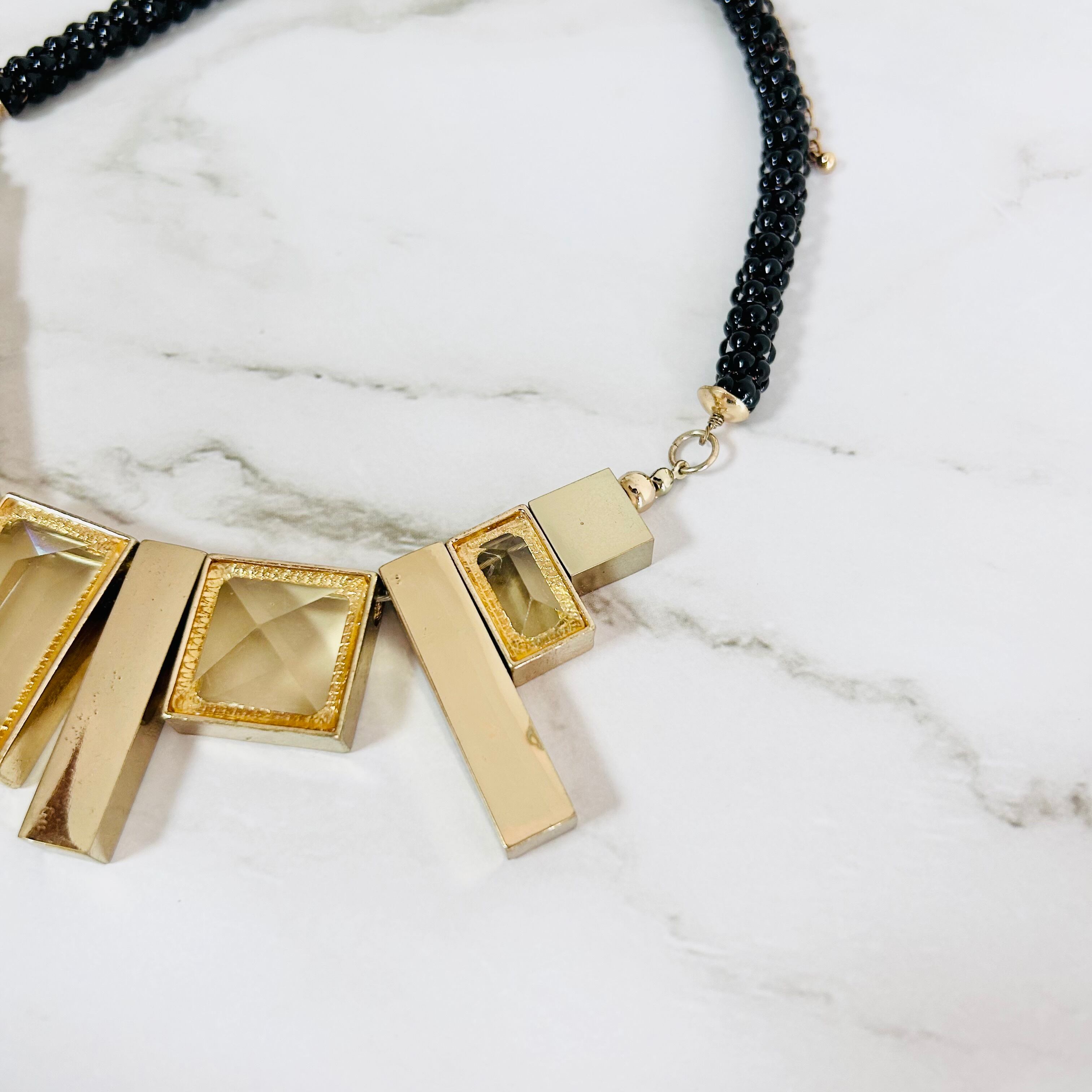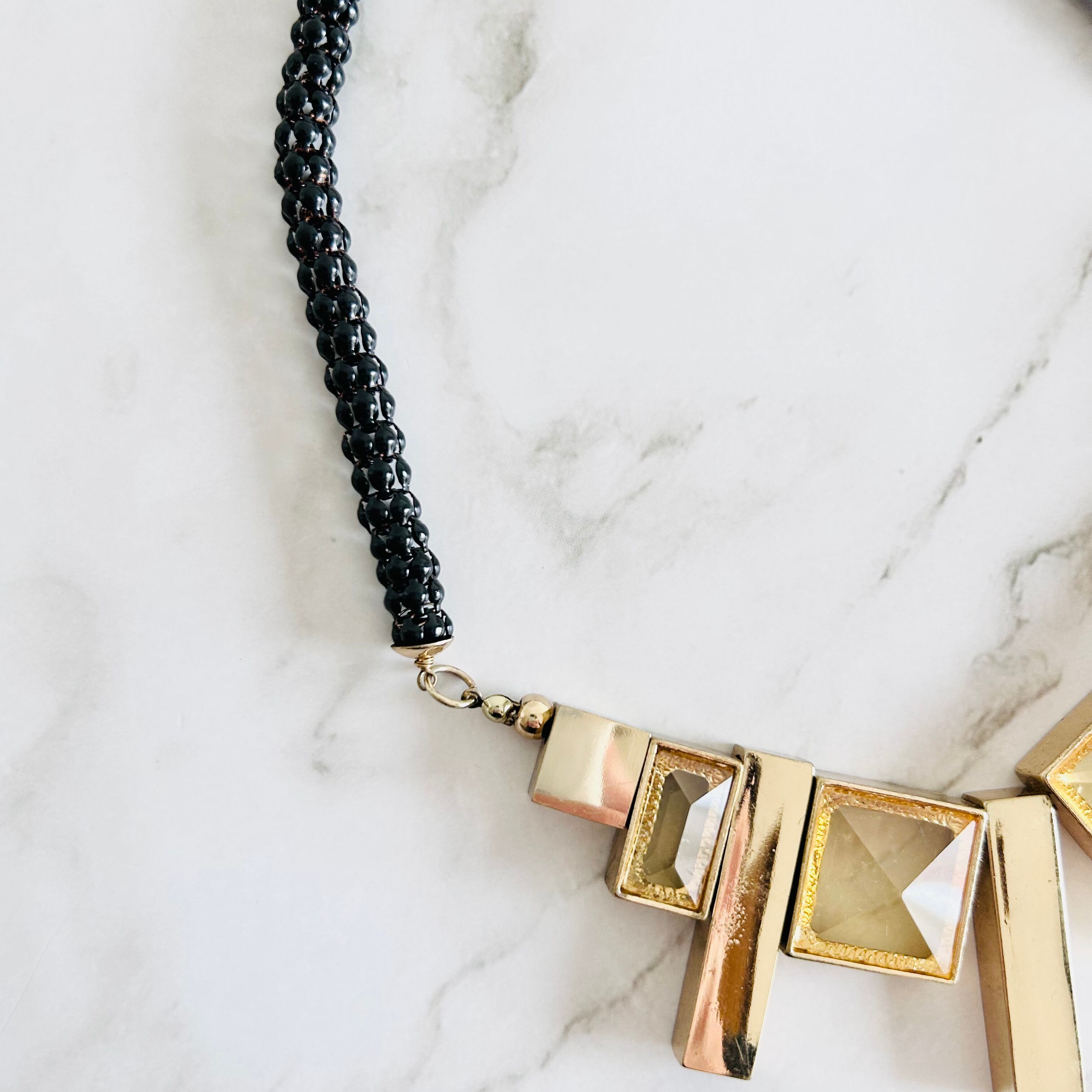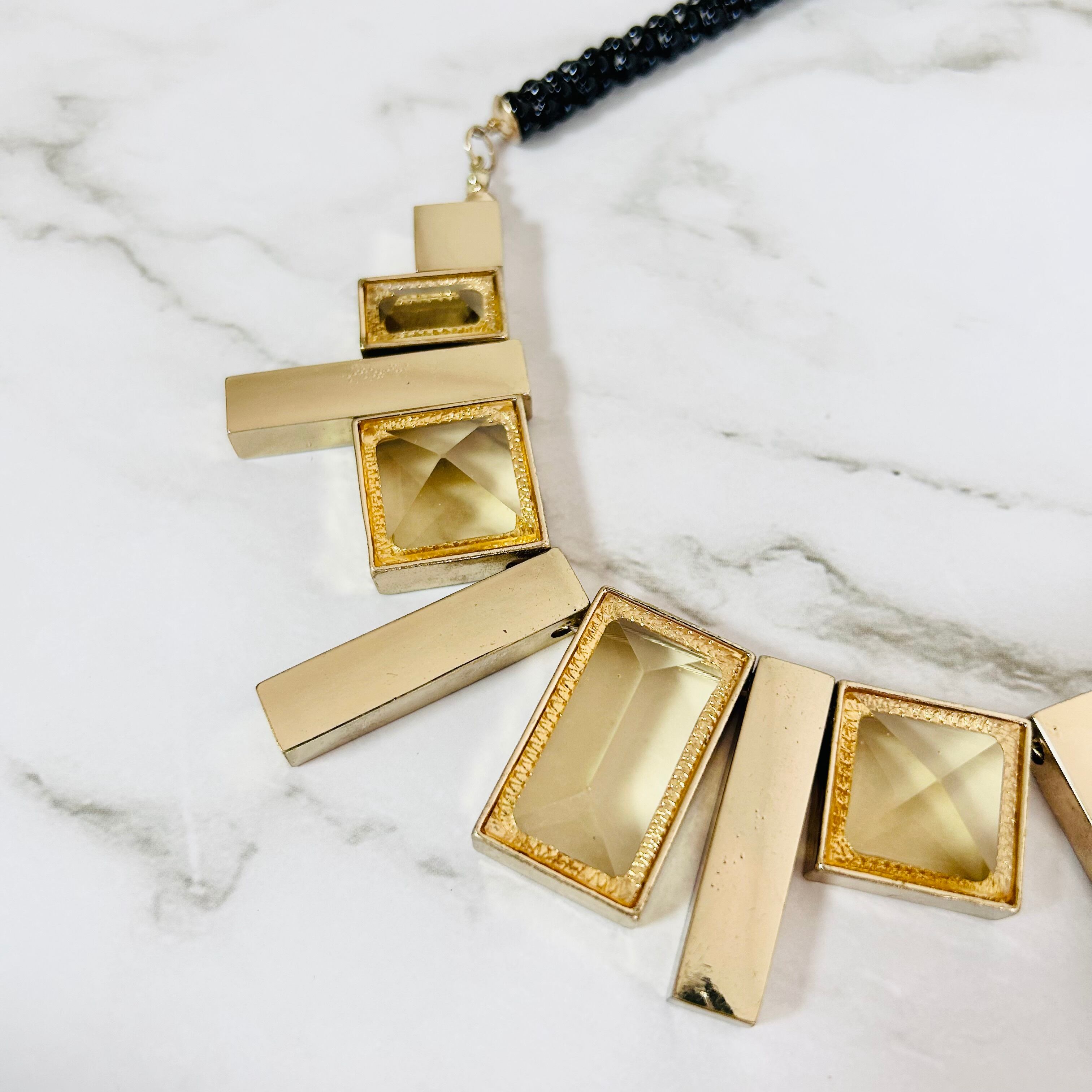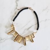 幾何学的な長方形とスクエアを組み合わせた、クールなデザインが目を惹くモダンなネックレスです。