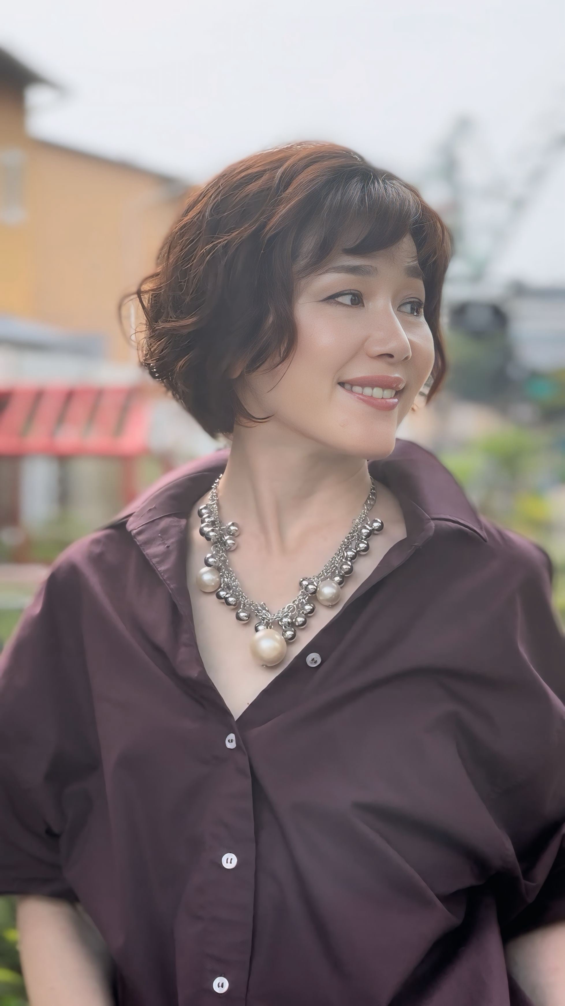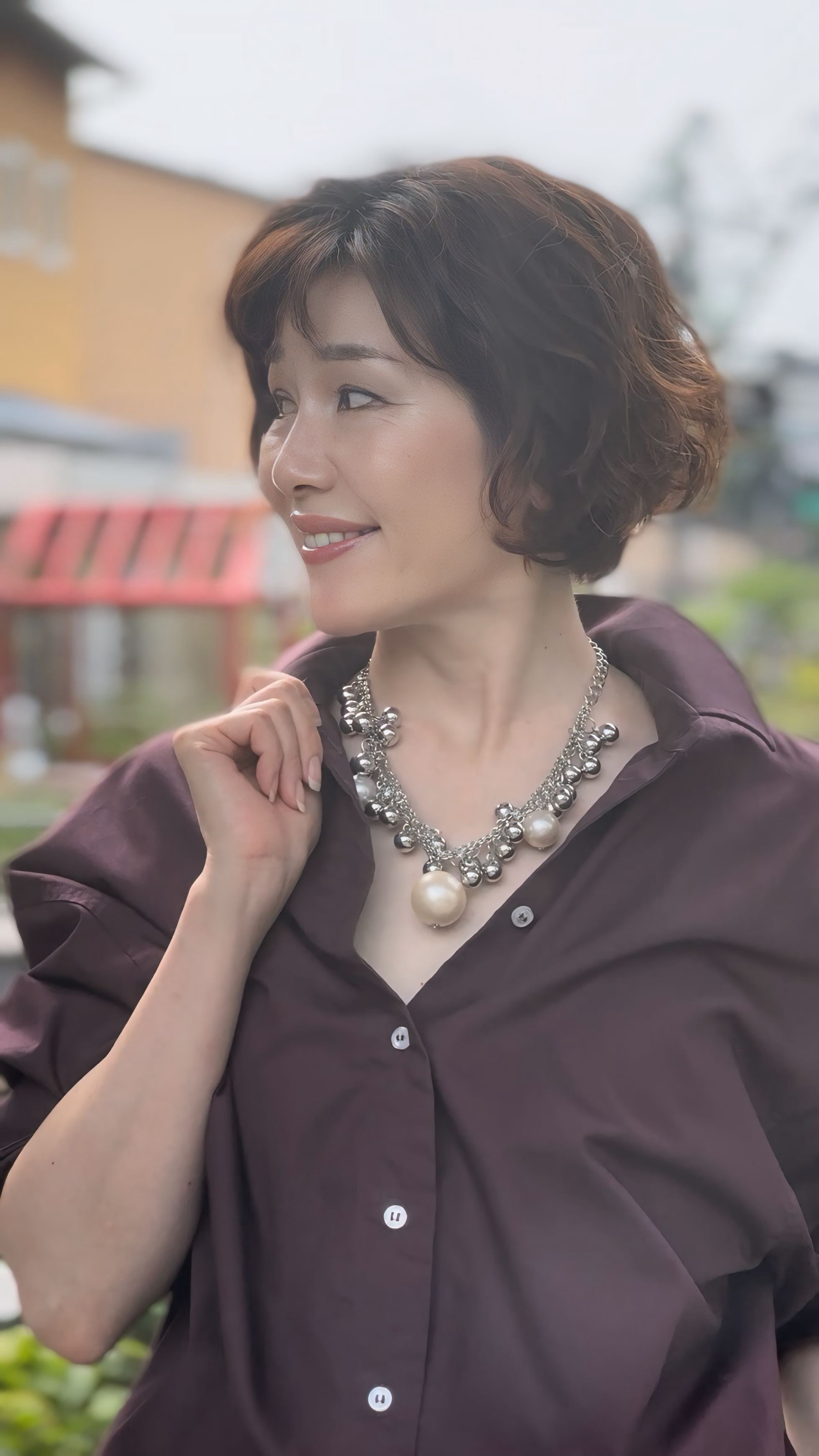 艶めくシルバーボールの輝きと、乳白色の大きなパールが組み合わさることで、ボリューム感のあるリズミカルな表情が生まれ、動くたびに揺れて華やかな存在感を放ちます。