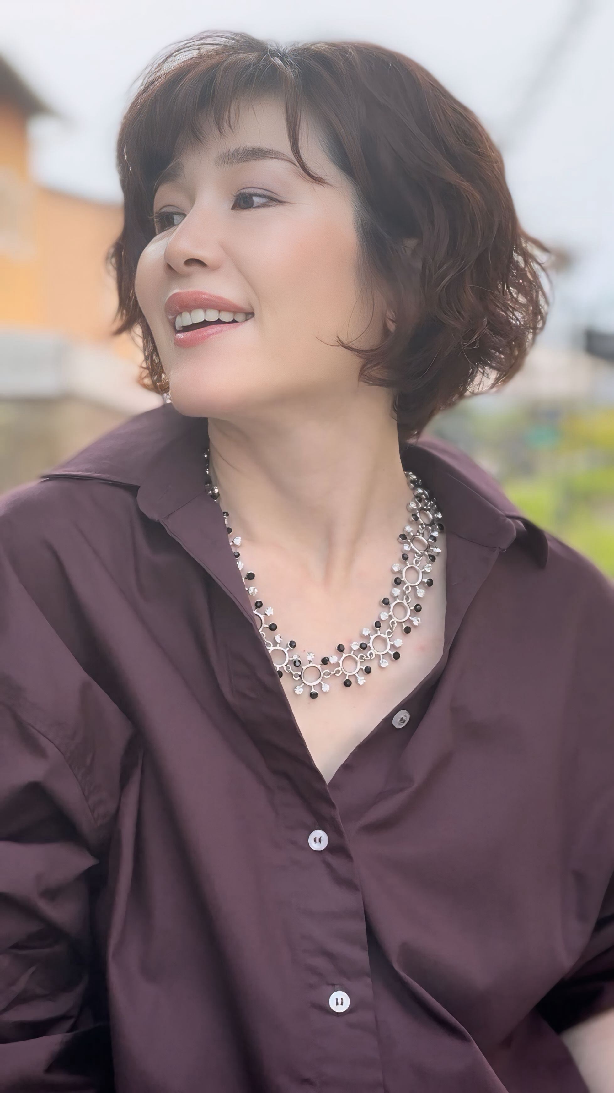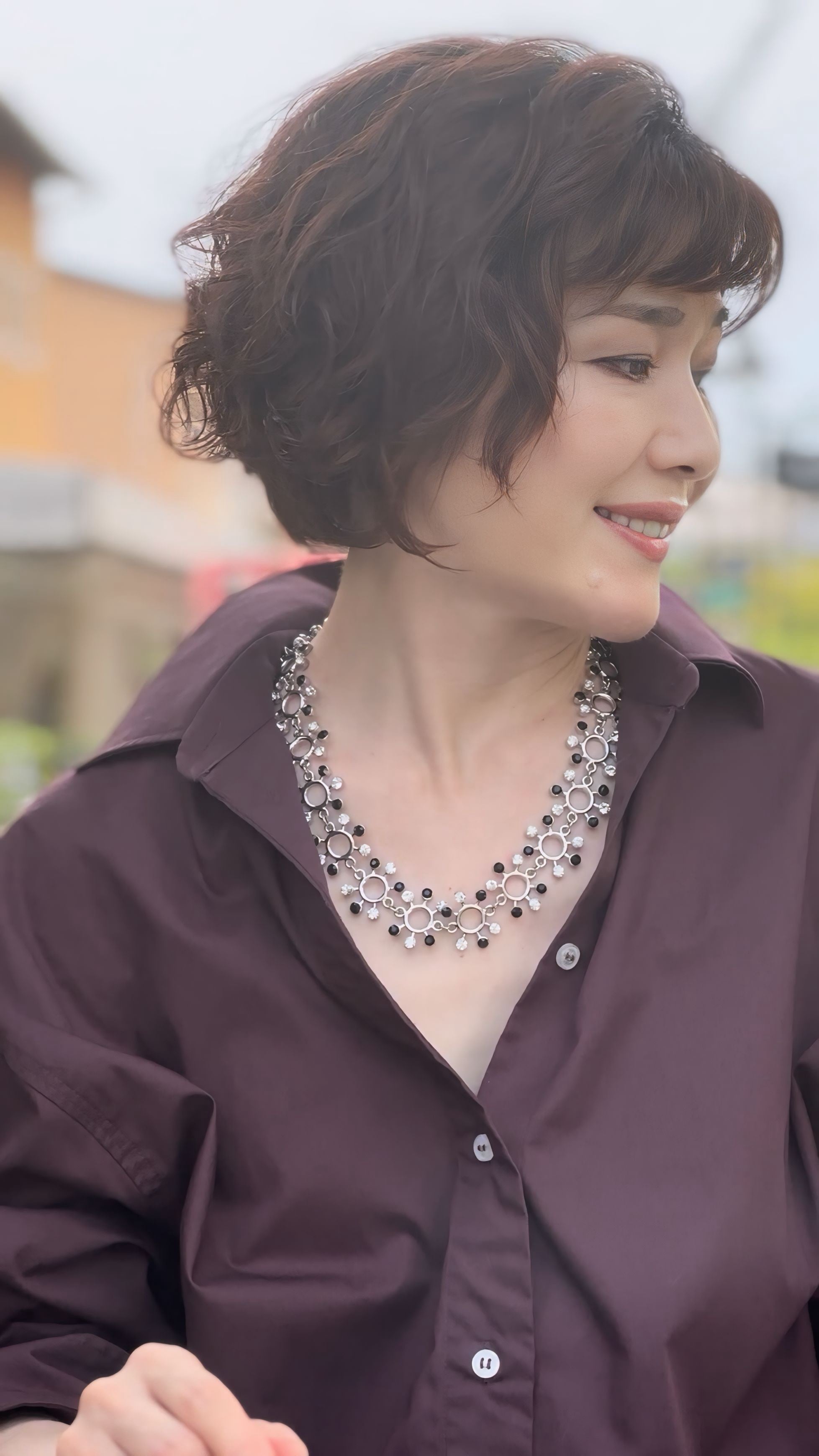 シャツやブラウスに合わせると、ネックレスの輝きが引き立ち、ぐっと華やかさを添えてくれます♡